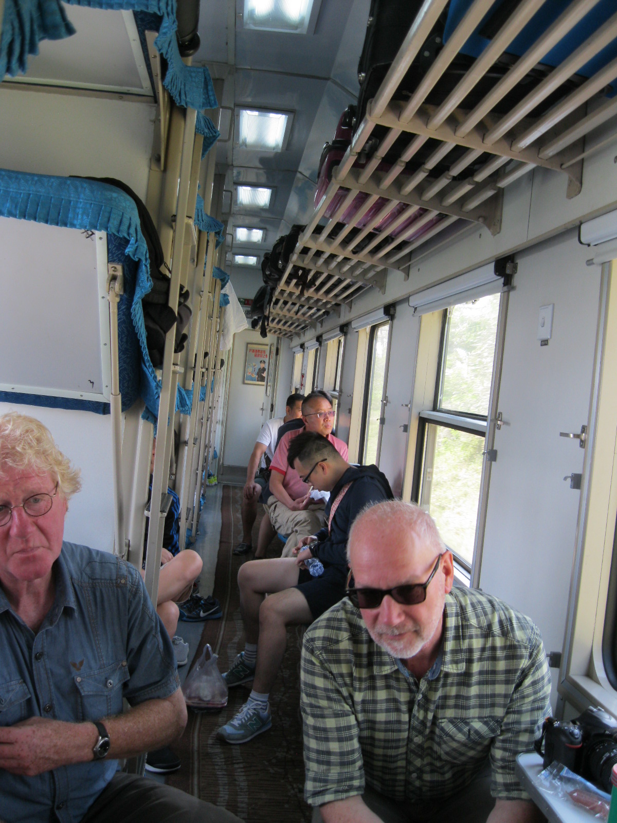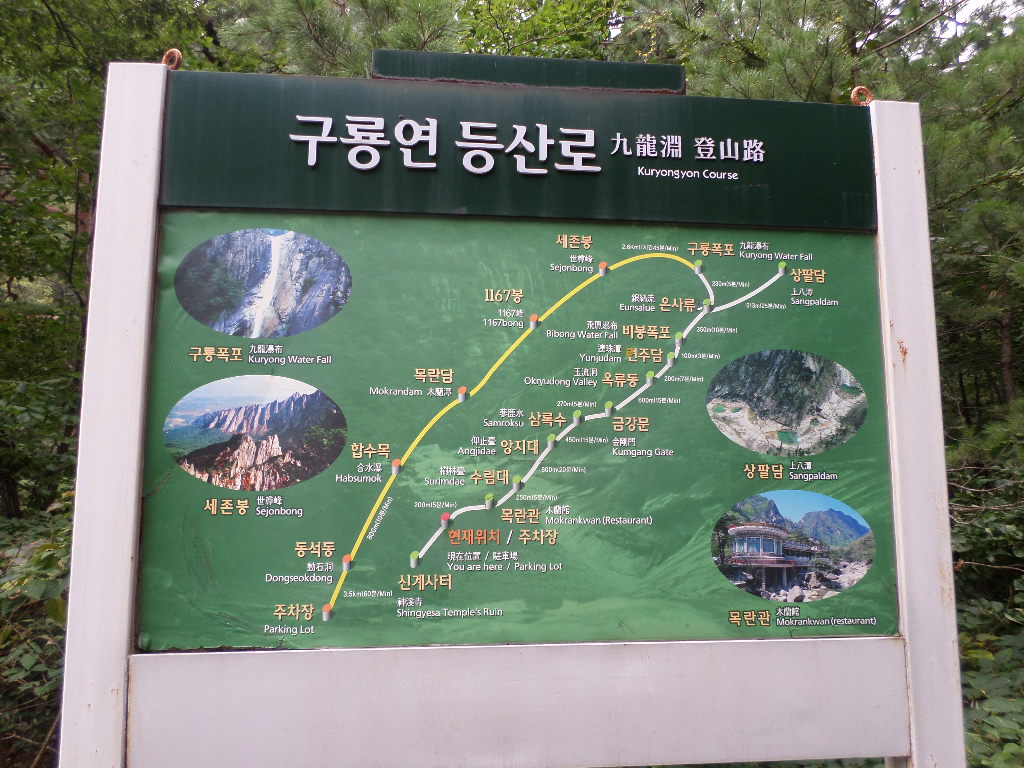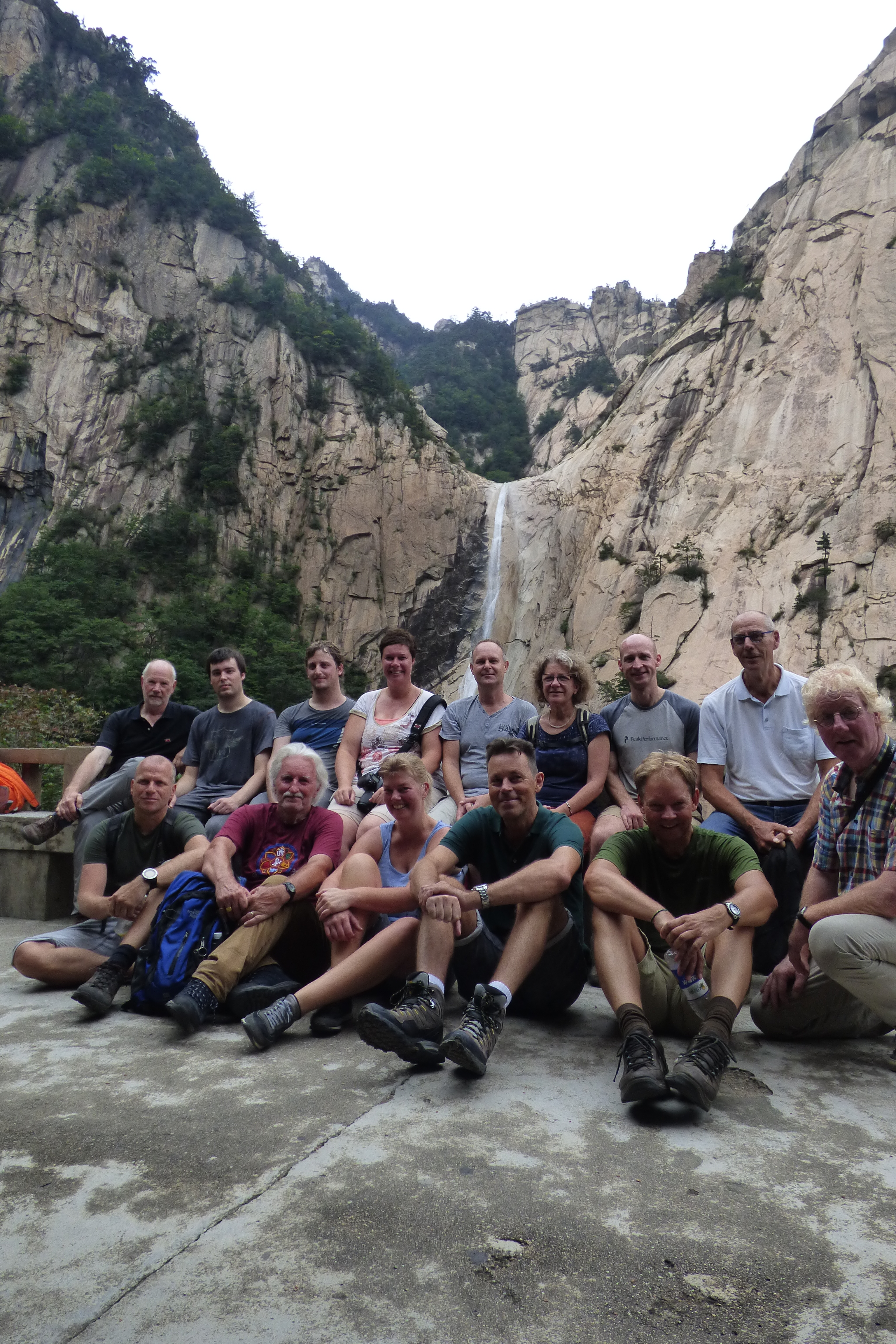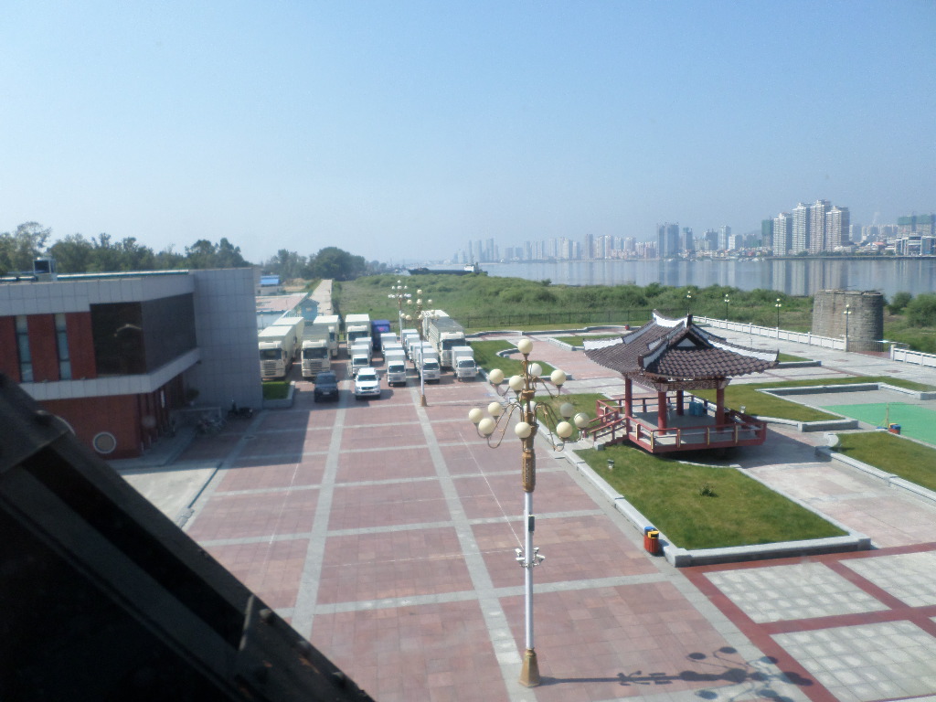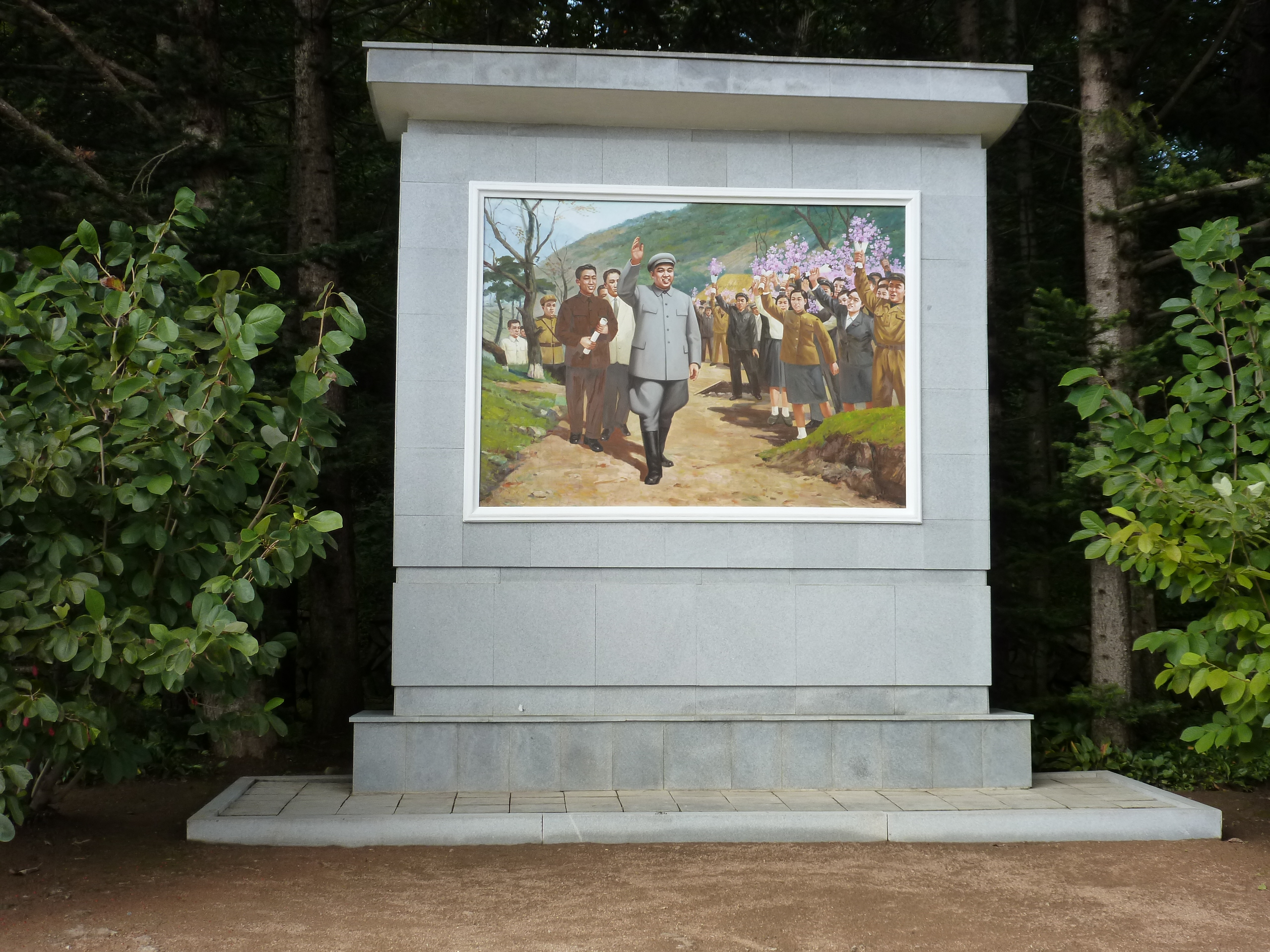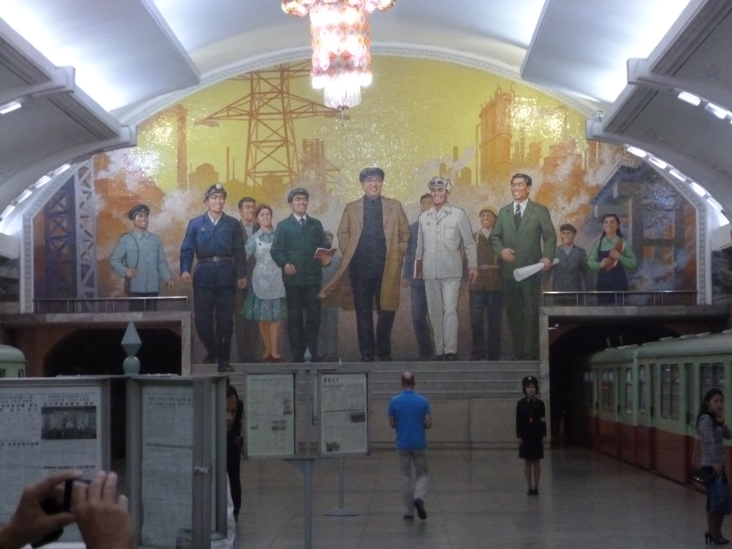 In Peking hebben we enkele uren tijd om ons voor te bereiden op de treinreis richting Noord-Korea. De trein vertrok rond 6u 's avonds. De volgende ochtend komen we aan in Dandong, een Chinese stad die grenst aan Noord-Korea.Het station van PekingDe slaapcabineHet restaurant op de trein. Een deel van het treinpersoneel was er al aan het eten. Ik besloot dan ook maar iets te eten. "Can I have a knife and fork?". "No sowwy". En de chinezen maar lachen.Op dag 3 arriveren we in Dandong, waar we een ontbijt krijgen. De rest van de treinreis wordt verdergezet op een andere trein richting de Noord-Koreaanse hoofdstad Pyongyang.Aankomst in DandongDandongIn de trein over de China-Noord-Korea Vriendschapsbrug. De Yalu rivier die we oversteken maakt een groot deel uit van de grens tussen China en Noord-Korea.Parallel loopt nog een brug, maar deze werd grotendeels vernield tijdens de Koreaanse oorlog.Links: Noord-Korea Rechts: ChinaAl snel verschijnen de portretten van de (overleden) grote leiders Kim Il Sung (links) en Kim Jong Il (rechts). Die zien we overal in Noord-Korea.Langs het platteland zien we vooral rijstvelden.Openbare werkenOnze Nederlandse reisbegeleider Jan is zeer fier op zijn Noord-Koreaanse badge. Deze badges worden door bijna alle Noord-Koreanen gedragen. Als buitenlander kan je deze badge enkel uitgereikt krijgen als je je loyaliteit bewezen hebt.In onze wagon zitten ook enkele Chinese toeristen. De meeste toeristen in Noord-Korea zijn Chinezen.Bij een tussenstop worden we gecontroleerd door Noord-Koreaanse militairen. Alle fototoestellen en telefoons worden geregistreerd, boeken en magazines worden nagekeken. Bagages worden slechts steekproefsgewijs doorgelicht. Onze paspoorten worden ook in beslag genomen. Die krijgen we pas terug op het einde van de reis.De rijstvelden zijn meestal in rechthoekige stukken ingedeeld, met bonenplanten om ze te scheiden.Tegen de avond rijden we Pyongyang binnen. Het volledige treintraject van Peking tot Pyongyang is 1371km lang en deden we ongeveer 24u over.Op dag 4 rijden we met de bus naar de industriestad Hamhung (함흥시). Hier bezoeken we oa. een fabriek van kunstmeststof.Het Yanggakdo International Hotel in Pyongyang waar we deze eerste nacht verbleven. Later keren we hier nog terug.Een tussenstop aan een meer langs het bergachtige landschap.Simon en ikDe bus waar we heel de reis mee rondtrokkenEen fotostop langs het bergachtige landschapDe gidsen vermelden dat zowat driekwart van het land bergen zijn. Omdat de Noord-Koreanen er naar streven om volledig zelfvoorzienend te zijn, wordt bijna alle vlakke grond gebruikt voor landbouw.Aan de linkerkant zie je onze Koreaanse gidsen. Meestal spreken Koreanen elkaar aan met hun volledige naam, maar gemakkelijkheidshalve mochten wij ze aanspreken als miss Kim (links) en miss Ha (rechts).Even dalen we af om een waterval te bezoeken. We picknicken hier in de buurt.De waterval zou in 2001 ontdekt zijn door Kim Jong Il, dankzij zijn fantastisch gehoor.BronwaterDit was een van de weinige maaltijden die ik volledig op kreeg. Op de bus krijgen we dan te horen dat de lunchschotels achtergelaten werden voor kinderen die de overschot zouden eten...De meeste wegen bestaan uit betonplaten.Een propagandabord langs de wegWe komen aan in Hamhung, de tweede grootste stad van Noord-Korea (~ 800.000 inwoners). We rijden hier voorbij een van de talrijke mozaïeken die we te zien zullen krijgen. Links: Kim Il Sung Midden: Kim Jong Il Rechts: Kim Jong Suk (de eerste vrouw van Kim Il Sung)Hamhung is nog maar enkele jaren "open" voor toeristen.Een fabriek van kunstmeststofBij elke bezienswaardigheid krijgen we te horen hoe vaak en wanneer juist de grote leiders die plaats bezocht hebben. Vaak zijn er mozaïeken die hun bezoek afbeelden.Binnen in de fabriekEr zijn maar weinig fabriekswerkers aanwezig, maar ze poseren wel graag voor een foto.'s avonds verblijven we in het Majon Tourist Resort aan de Oost-Koreaanse zee. Hier nemen we een frisse duik in het water.De huisjes waar we verblijven zijn vlak aan het strand.Onze zwembroeken buiten gehangen, maar echt droog werden ze niet door het vochtige klimaat.Het avondmaal. Zoals gewoonlijk werden er nog voortdurend bordjes bij gezet. Als je al vol zit krijg je dan nog een kom rijst en soep.'s middags en 's avonds was er als drank meestal plat water en bier, met de mogelijkheid om "juice" te drinken in plaats van bier. Dat was een soort appel/peren sap (niet op de foto).Onze kamerHier was geen stromend water, en diende het bad als waterreservoir. Wassen moest "op z'n Bangladesh" door een teiltje water over je gieten. In de rode emmer kon water elektrisch verwarmd worden.Op dag 5 bezoeken we nog enkele plaatsen in Hamhung, en vertrekken dan richting Mt. Kumgang. Onderweg bezoeken we oa. nog de kuststad Wonsan.Het huis van de voormalige koning Taejo van Joseon in Hamhung. Hij richtte de Koreaanse Joseondynastie op in 1392, die eindigde in 1897.Een zeer oude boomBuiten het huis stond een groep Koreaanse studenten te wachten.Een aangelegde (niet natuurlijke) heuvel met grote bronzen beelden van de leidersDe lokale gids die ons een woordje uitleg gaf. De plaatselijke gidsen spraken meestal Koreaans, dat dan naar Engels vertaald werd door onze gids miss Kim.Hamhung Grand TheatreWonsanDit verkeersbord leek met de hand geschilderd te zijn.Bezoek aan een de Chonsam coöperatieve boerderijEen persimmon boomOok de grote leiders zijn hier geweest.In het winkeltje van de boerderij kochten we enkele gedroogde persimmons.Naast de boerderij was er een kleuterschool. De kinderen zongen een liedje en wuifden ons dan uit.Iets verderop bezoeken we nog het huis van de boerin die ons begeleidde.Dit huis heeft een soort vloerverwarming die hier vaak toegepast zou worden. Op internet vond ik dit systeem terug als "Ondol".Wat voor een decoder is dat onder de TV? Telenet of Belgacom?Ten slotte bezochten we nog een boeddhistische tempel...Maar bij de tempel zelf mochten we niet komen, omdat er constructi