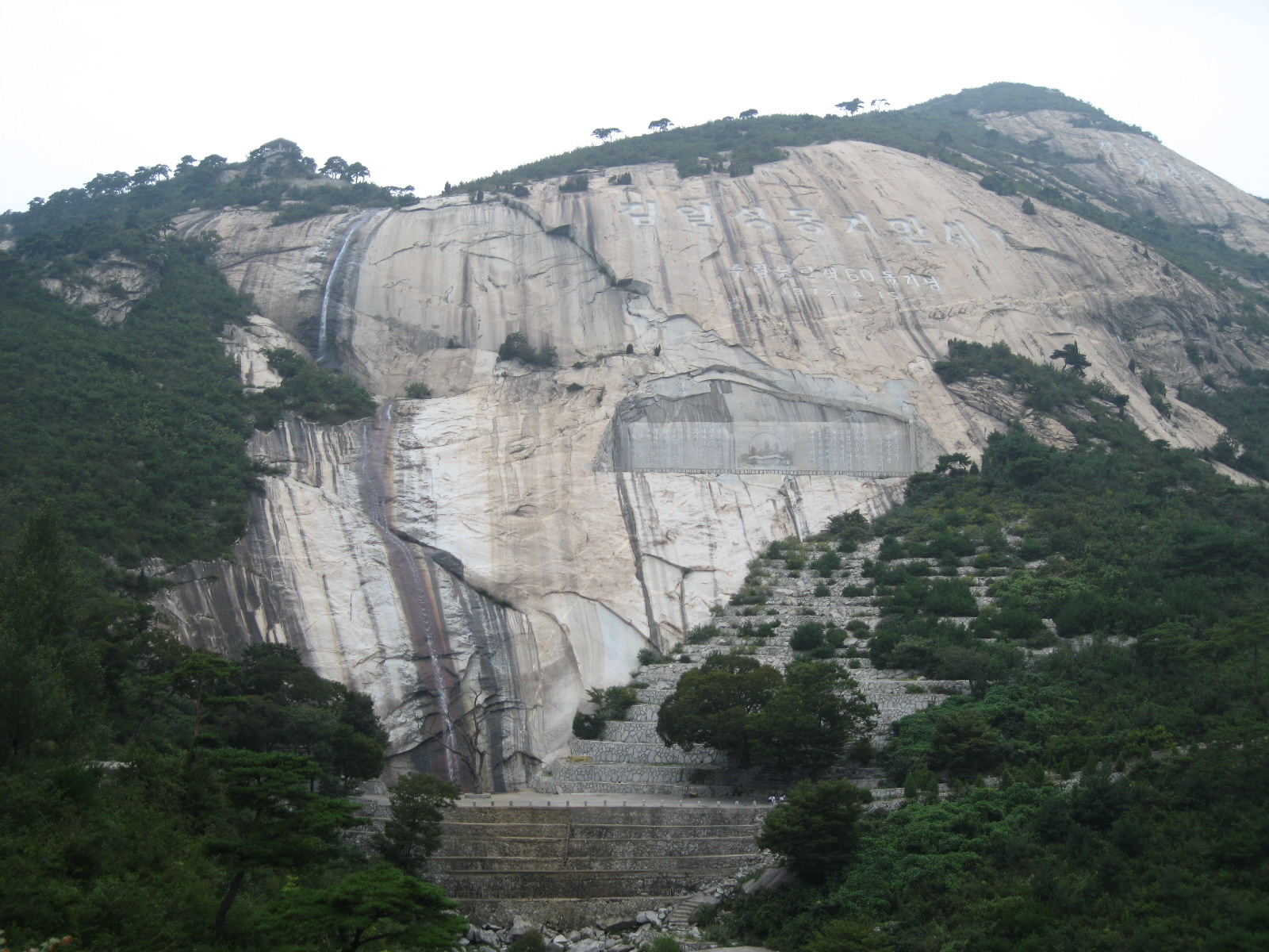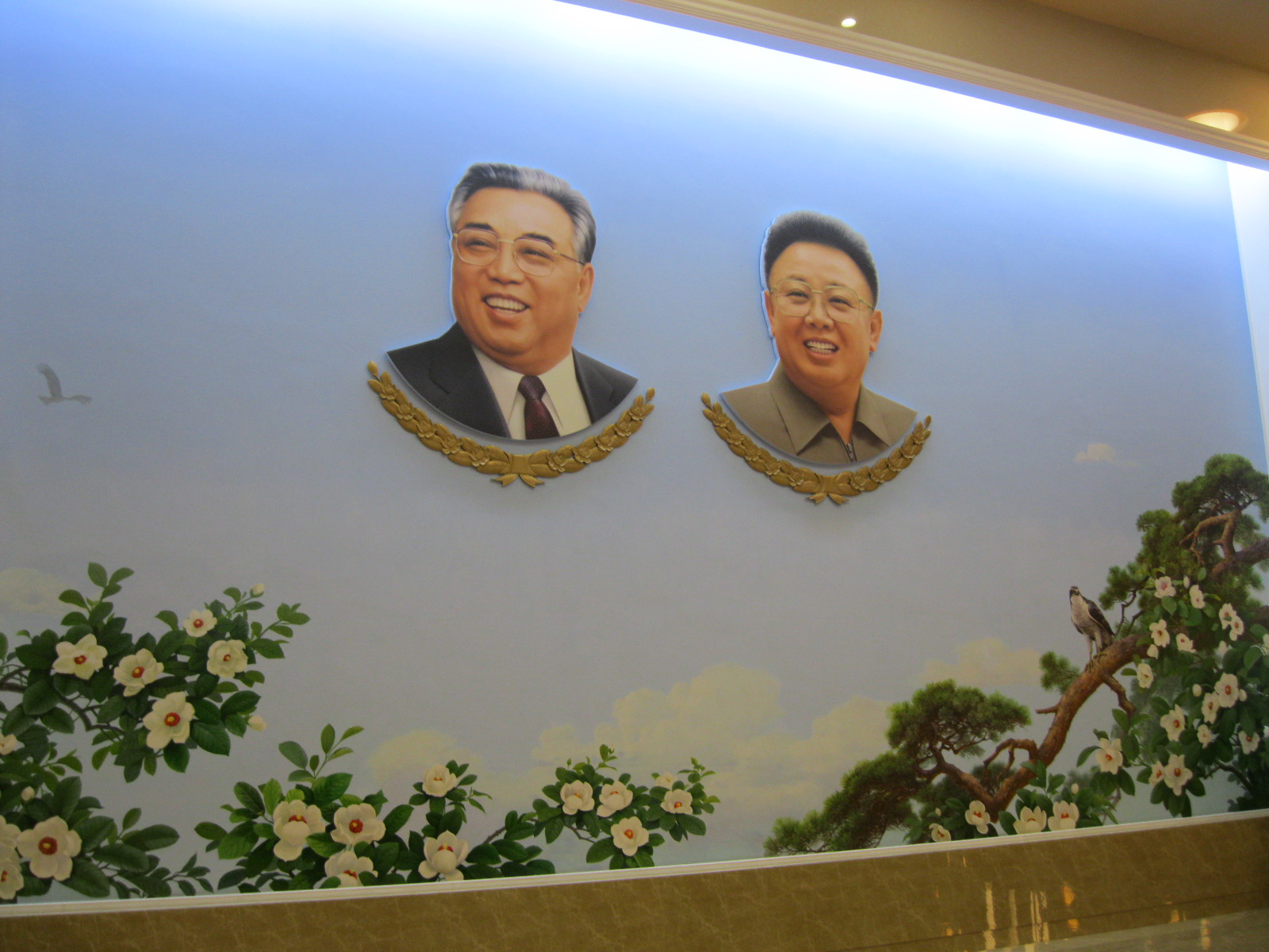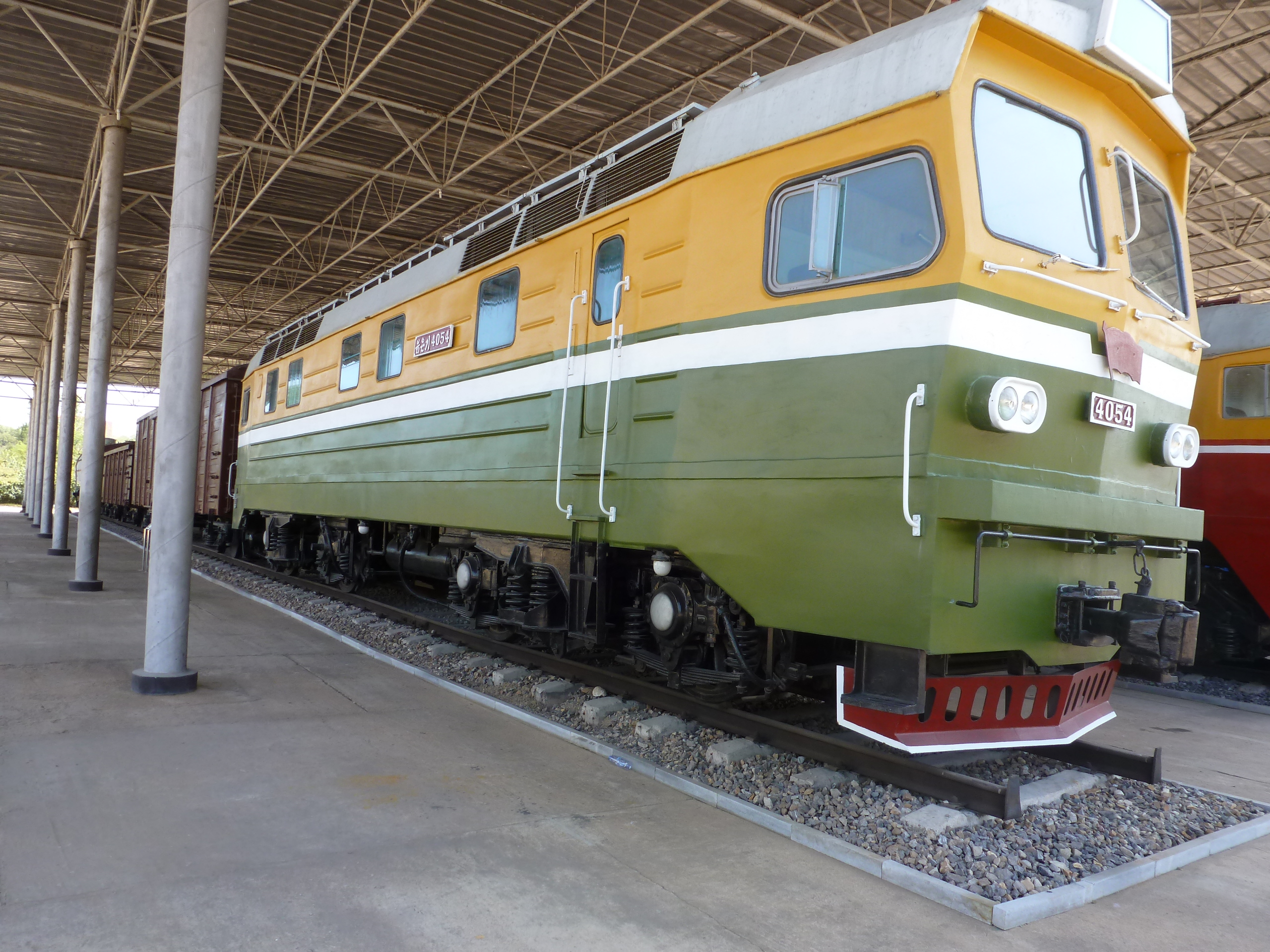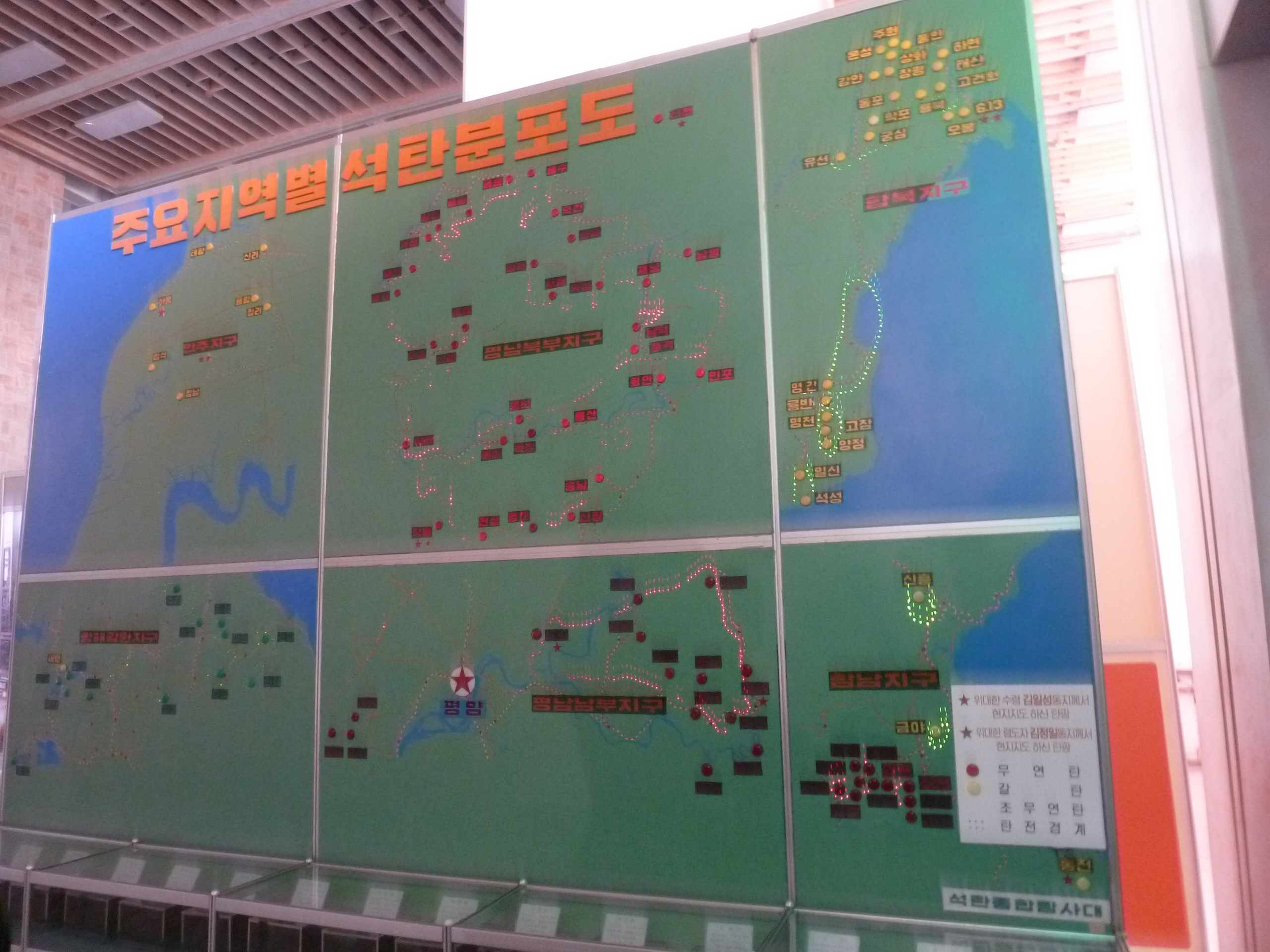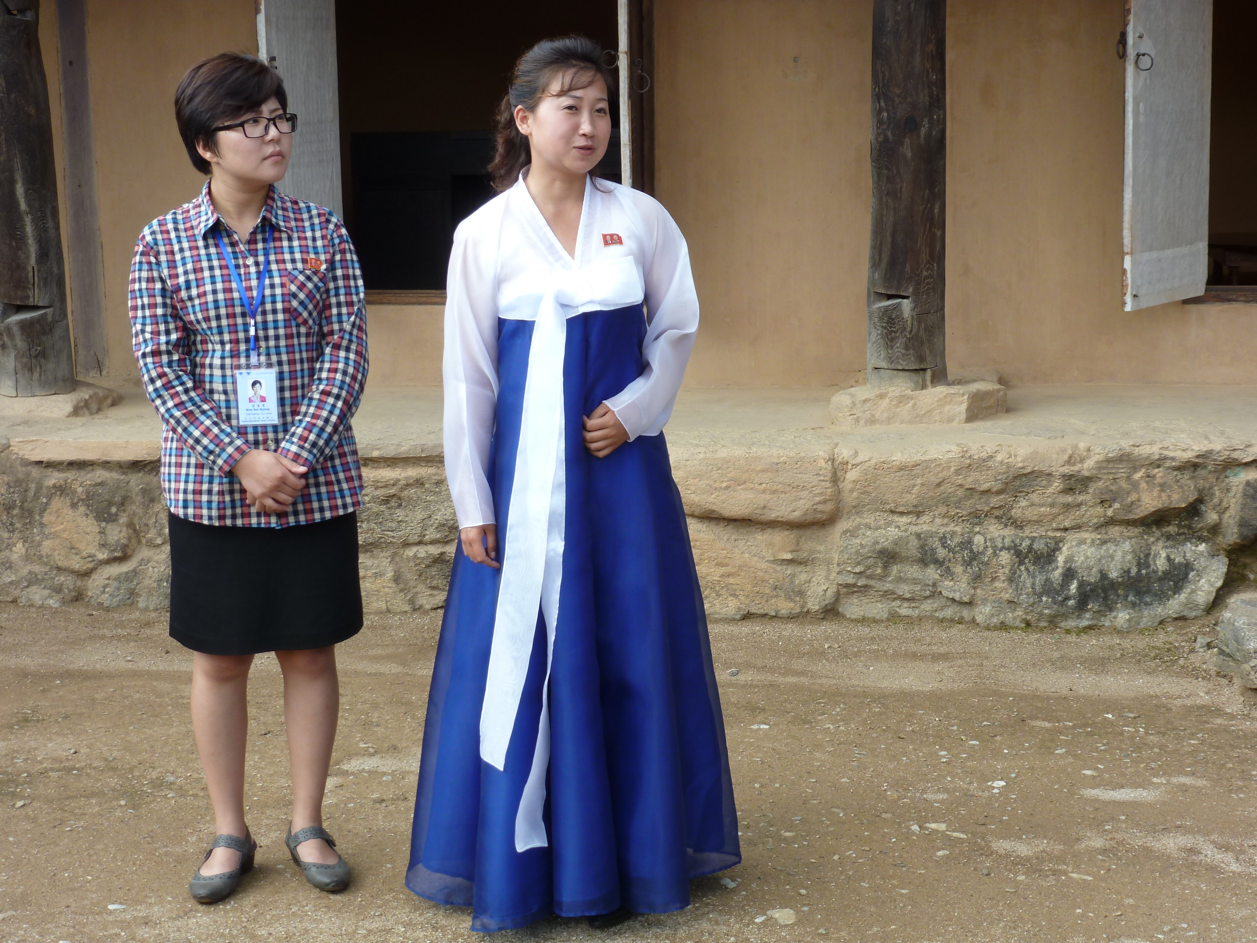 In Peking hebben we enkele uren tijd om ons voor te bereiden op de treinreis richting Noord-Korea. De trein vertrok rond 6u 's avonds. De volgende ochtend komen we aan in Dandong, een Chinese stad die grenst aan Noord-Korea.Het station van PekingDe slaapcabineHet restaurant op de trein. Een deel van het treinpersoneel was er al aan het eten. Ik besloot dan ook maar iets te eten. "Can I have a knife and fork?". "No sowwy". En de chinezen maar lachen.Op dag 3 arriveren we in Dandong, waar we een ontbijt krijgen. De rest van de treinreis wordt verdergezet op een andere trein richting de Noord-Koreaanse hoofdstad Pyongyang.Aankomst in DandongDandongIn de trein over de China-Noord-Korea Vriendschapsbrug. De Yalu rivier die we oversteken maakt een groot deel uit van de grens tussen China en Noord-Korea.Parallel loopt nog een brug, maar deze werd grotendeels vernield tijdens de Koreaanse oorlog.Links: Noord-Korea Rechts: ChinaAl snel verschijnen de portretten van de (overleden) grote leiders Kim Il Sung (links) en Kim Jong Il (rechts). Die zien we overal in Noord-Korea.Langs het platteland zien we vooral rijstvelden.Openbare werkenOnze Nederlandse reisbegeleider Jan is zeer fier op zijn Noord-Koreaanse badge. Deze badges worden door bijna alle Noord-Koreanen gedragen. Als buitenlander kan je deze badge enkel uitgereikt krijgen als je je loyaliteit bewezen hebt.In onze wagon zitten ook enkele Chinese toeristen. De meeste toeristen in Noord-Korea zijn Chinezen.Bij een tussenstop worden we gecontroleerd door Noord-Koreaanse militairen. Alle fototoestellen en telefoons worden geregistreerd, boeken en magazines worden nagekeken. Bagages worden slechts steekproefsgewijs doorgelicht. Onze paspoorten worden ook in beslag genomen. Die krijgen we pas terug op het einde van de reis.De rijstvelden zijn meestal in rechthoekige stukken ingedeeld, met bonenplanten om ze te scheiden.Tegen de avond rijden we Pyongyang binnen. Het volledige treintraject van Peking tot Pyongyang is 1371km lang en deden we ongeveer 24u over.Op dag 4 rijden we met de bus naar de industriestad Hamhung (함흥시). Hier bezoeken we oa. een fabriek van kunstmeststof.Het Yanggakdo International Hotel in Pyongyang waar we deze eerste nacht verbleven. Later keren we hier nog terug.Een tussenstop aan een meer langs het bergachtige landschap.Simon en ikDe bus waar we heel de reis mee rondtrokkenEen fotostop langs het bergachtige landschapDe gidsen vermelden dat zowat driekwart van het land bergen zijn. Omdat de Noord-Koreanen er naar streven om volledig zelfvoorzienend te zijn, wordt bijna alle vlakke grond gebruikt voor landbouw.Aan de linkerkant zie je onze Koreaanse gidsen. Meestal spreken Koreanen elkaar aan met hun volledige naam, maar gemakkelijkheidshalve mochten wij ze aanspreken als miss Kim (links) en miss Ha (rechts).Even dalen we af om een waterval te bezoeken. We picknicken hier in de buurt.De waterval zou in 2001 ontdekt zijn door Kim Jong Il, dankzij zijn fantastisch gehoor.BronwaterDit was een van de weinige maaltijden die ik volledig op kreeg. Op de bus krijgen we dan te horen dat de lunchschotels achtergelaten werden voor kinderen die de overschot zouden eten...De meeste wegen bestaan uit betonplaten.Een propagandabord langs de wegWe komen aan in Hamhung, de tweede grootste stad van Noord-Korea (~ 800.000 inwoners). We rijden hier voorbij een van de talrijke mozaïeken die we te zien zullen krijgen. Links: Kim Il Sung Midden: Kim Jong Il Rechts: Kim Jong Suk (de eerste vrouw van Kim Il Sung)Hamhung is nog maar enkele jaren "open" voor toeristen.Een fabriek van kunstmeststofBij elke bezienswaardigheid krijgen we te horen hoe vaak en wanneer juist de grote leiders die plaats bezocht hebben. Vaak zijn er mozaïeken die hun bezoek afbeelden.Binnen in de fabriekEr zijn maar weinig fabriekswerkers aanwezig, maar ze poseren wel graag voor een foto.'s avonds verblijven we in het Majon Tourist Resort aan de Oost-Koreaanse zee. Hier nemen we een frisse duik in het water.De huisjes waar we verblijven zijn vlak aan het strand.Onze zwembroeken buiten gehangen, maar echt droog werden ze niet door het vochtige klimaat.Het avondmaal. Zoals gewoonlijk werden er nog voortdurend bordjes bij gezet. Als je al vol zit krijg je dan nog een kom rijst en soep.'s middags en 's avonds was er als drank meestal plat water en bier, met de mogelijkheid om "juice" te drinken in plaats van bier. Dat was een soort appel/peren sap (niet op de foto).Onze kamerHier was geen stromend water, en diende het bad als waterreservoir. Wassen moest "op z'n Bangladesh" door een teiltje water over je gieten. In de rode emmer kon water elektrisch verwarmd worden.Op dag 5 bezoeken we nog enkele plaatsen in Hamhung, en vertrekken dan richting Mt. Kumgang. Onderweg bezoeken we oa. nog de kuststad Wonsan.Het huis van de voormalige koning Taejo van Joseon in Hamhung. Hij richtte de Koreaanse Joseondynastie op in 1392, die eindigde in 1897.Een zeer oude boomBuiten het huis stond een groep Koreaanse studenten te wachten.Een aangelegde (niet natuurlijke) heuvel met grote bronzen beelden van de leidersDe lokale gids die ons een woordje uitleg gaf. De plaatselijke gidsen spraken meestal Koreaans, dat dan naar Engels vertaald werd door onze gids miss Kim.Hamhung Grand TheatreWonsanDit verkeersbord leek met de hand geschilderd te zijn.Bezoek aan een de Chonsam coöperatieve boerderijEen persimmon boomOok de grote leiders zijn hier geweest.In het winkeltje van de boerderij kochten we enkele gedroogde persimmons.Naast de boerderij was er een kleuterschool. De kinderen zongen een liedje en wuifden ons dan uit.Iets verderop bezoeken we nog het huis van de boerin die ons begeleidde.Dit huis heeft een soort vloerverwarming die hier vaak toegepast zou worden. Op internet vond ik dit systeem terug als "Ondol".Wat voor een decoder is dat onder de TV? Telenet of Belgacom?Ten slotte bezochten we nog een boeddhistische tempel...Maar bij de tempel zelf mochten we niet komen, omdat er constructi