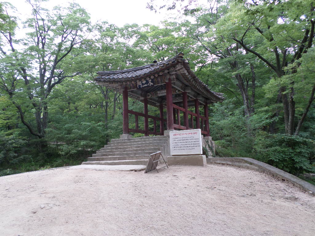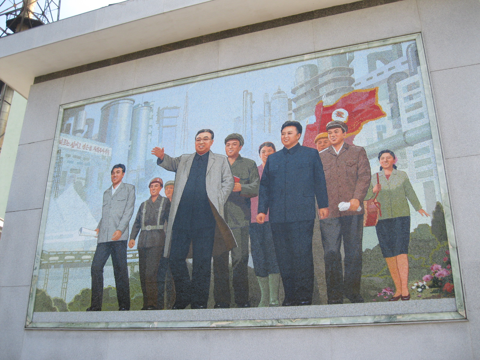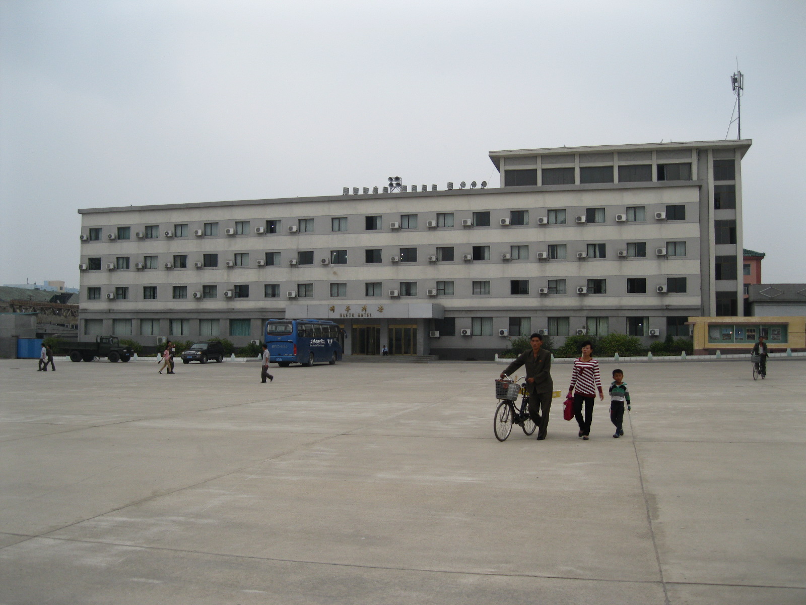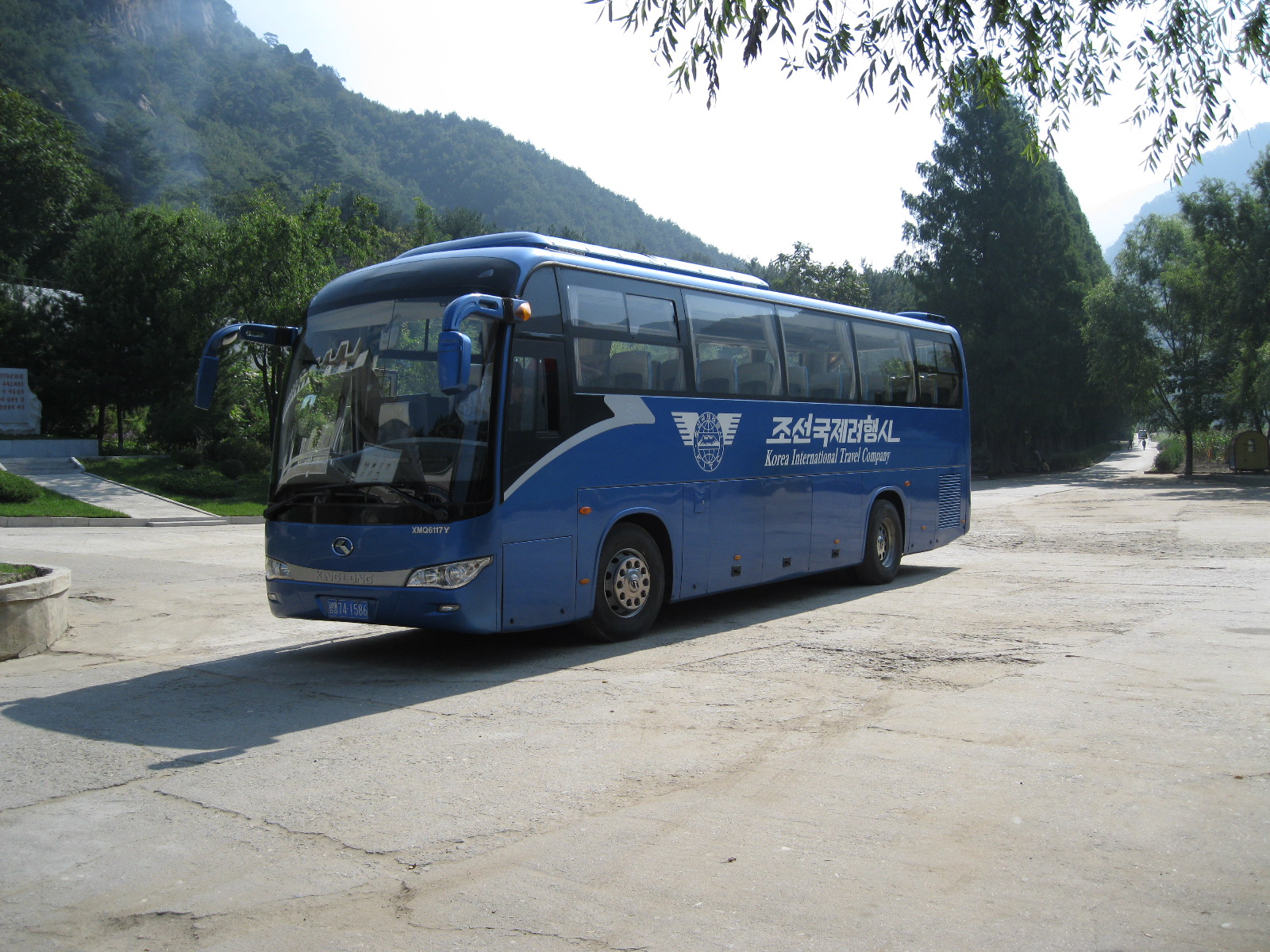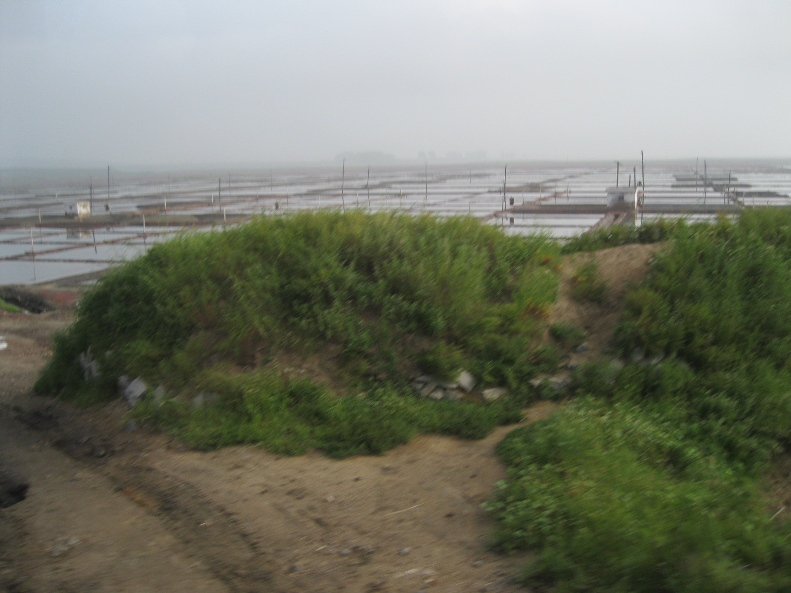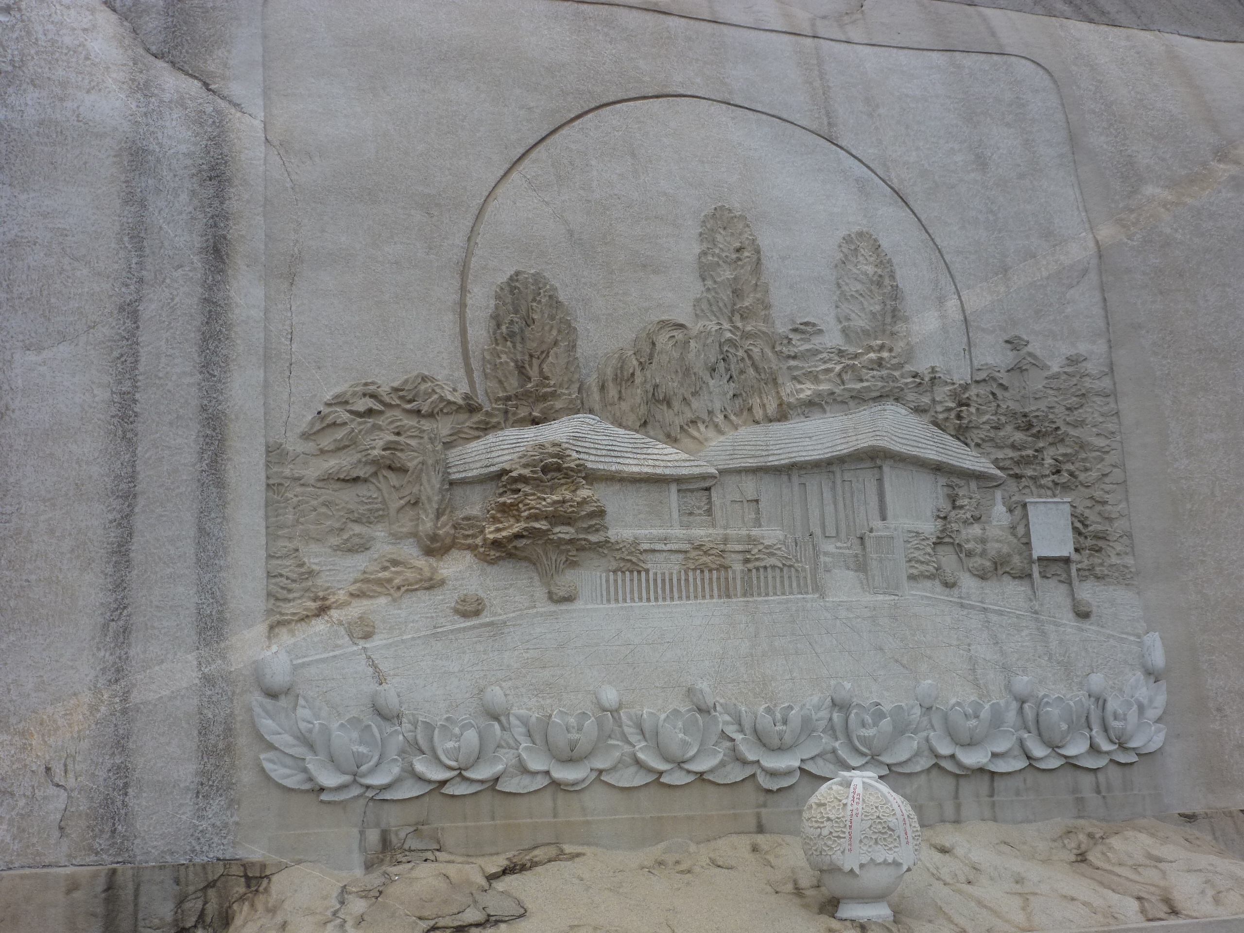 In Peking hebben we enkele uren tijd om ons voor te bereiden op de treinreis richting Noord-Korea. De trein vertrok rond 6u 's avonds. De volgende ochtend komen we aan in Dandong, een Chinese stad die grenst aan Noord-Korea.Het station van PekingDe slaapcabineHet restaurant op de trein. Een deel van het treinpersoneel was er al aan het eten. Ik besloot dan ook maar iets te eten. "Can I have a knife and fork?". "No sowwy". En de chinezen maar lachen.Op dag 3 arriveren we in Dandong, waar we een ontbijt krijgen. De rest van de treinreis wordt verdergezet op een andere trein richting de Noord-Koreaanse hoofdstad Pyongyang.Aankomst in DandongDandongIn de trein over de China-Noord-Korea Vriendschapsbrug. De Yalu rivier die we oversteken maakt een groot deel uit van de grens tussen China en Noord-Korea.Parallel loopt nog een brug, maar deze werd grotendeels vernield tijdens de Koreaanse oorlog.Links: Noord-Korea Rechts: ChinaAl snel verschijnen de portretten van de (overleden) grote leiders Kim Il Sung (links) en Kim Jong Il (rechts). Die zien we overal in Noord-Korea.Langs het platteland zien we vooral rijstvelden.Openbare werkenOnze Nederlandse reisbegeleider Jan is zeer fier op zijn Noord-Koreaanse badge. Deze badges worden door bijna alle Noord-Koreanen gedragen. Als buitenlander kan je deze badge enkel uitgereikt krijgen als je je loyaliteit bewezen hebt.In onze wagon zitten ook enkele Chinese toeristen. De meeste toeristen in Noord-Korea zijn Chinezen.Bij een tussenstop worden we gecontroleerd door Noord-Koreaanse militairen. Alle fototoestellen en telefoons worden geregistreerd, boeken en magazines worden nagekeken. Bagages worden slechts steekproefsgewijs doorgelicht. Onze paspoorten worden ook in beslag genomen. Die krijgen we pas terug op het einde van de reis.De rijstvelden zijn meestal in rechthoekige stukken ingedeeld, met bonenplanten om ze te scheiden.Tegen de avond rijden we Pyongyang binnen. Het volledige treintraject van Peking tot Pyongyang is 1371km lang en deden we ongeveer 24u over.Op dag 4 rijden we met de bus naar de industriestad Hamhung (함흥시). Hier bezoeken we oa. een fabriek van kunstmeststof.Het Yanggakdo International Hotel in Pyongyang waar we deze eerste nacht verbleven. Later keren we hier nog terug.Een tussenstop aan een meer langs het bergachtige landschap.Simon en ikDe bus waar we heel de reis mee rondtrokkenEen fotostop langs het bergachtige landschapDe gidsen vermelden dat zowat driekwart van het land bergen zijn. Omdat de Noord-Koreanen er naar streven om volledig zelfvoorzienend te zijn, wordt bijna alle vlakke grond gebruikt voor landbouw.Aan de linkerkant zie je onze Koreaanse gidsen. Meestal spreken Koreanen elkaar aan met hun volledige naam, maar gemakkelijkheidshalve mochten wij ze aanspreken als miss Kim (links) en miss Ha (rechts).Even dalen we af om een waterval te bezoeken. We picknicken hier in de buurt.De waterval zou in 2001 ontdekt zijn door Kim Jong Il, dankzij zijn fantastisch gehoor.BronwaterDit was een van de weinige maaltijden die ik volledig op kreeg. Op de bus krijgen we dan te horen dat de lunchschotels achtergelaten werden voor kinderen die de overschot zouden eten...De meeste wegen bestaan uit betonplaten.Een propagandabord langs de wegWe komen aan in Hamhung, de tweede grootste stad van Noord-Korea (~ 800.000 inwoners). We rijden hier voorbij een van de talrijke mozaïeken die we te zien zullen krijgen. Links: Kim Il Sung Midden: Kim Jong Il Rechts: Kim Jong Suk (de eerste vrouw van Kim Il Sung)Hamhung is nog maar enkele jaren "open" voor toeristen.Een fabriek van kunstmeststofBij elke bezienswaardigheid krijgen we te horen hoe vaak en wanneer juist de grote leiders die plaats bezocht hebben. Vaak zijn er mozaïeken die hun bezoek afbeelden.Binnen in de fabriekEr zijn maar weinig fabriekswerkers aanwezig, maar ze poseren wel graag voor een foto.'s avonds verblijven we in het Majon Tourist Resort aan de Oost-Koreaanse zee. Hier nemen we een frisse duik in het water.De huisjes waar we verblijven zijn vlak aan het strand.Onze zwembroeken buiten gehangen, maar echt droog werden ze niet door het vochtige klimaat.Het avondmaal. Zoals gewoonlijk werden er nog voortdurend bordjes bij gezet. Als je al vol zit krijg je dan nog een kom rijst en soep.'s middags en 's avonds was er als drank meestal plat water en bier, met de mogelijkheid om "juice" te drinken in plaats van bier. Dat was een soort appel/peren sap (niet op de foto).Onze kamerHier was geen stromend water, en diende het bad als waterreservoir. Wassen moest "op z'n Bangladesh" door een teiltje water over je gieten. In de rode emmer kon water elektrisch verwarmd worden.Op dag 5 bezoeken we nog enkele plaatsen in Hamhung, en vertrekken dan richting Mt. Kumgang. Onderweg bezoeken we oa. nog de kuststad Wonsan.Het huis van de voormalige koning Taejo van Joseon in Hamhung. Hij richtte de Koreaanse Joseondynastie op in 1392, die eindigde in 1897.Een zeer oude boomBuiten het huis stond een groep Koreaanse studenten te wachten.Een aangelegde (niet natuurlijke) heuvel met grote bronzen beelden van de leidersDe lokale gids die ons een woordje uitleg gaf. De plaatselijke gidsen spraken meestal Koreaans, dat dan naar Engels vertaald werd door onze gids miss Kim.Hamhung Grand TheatreWonsanDit verkeersbord leek met de hand geschilderd te zijn.Bezoek aan een de Chonsam coöperatieve boerderijEen persimmon boomOok de grote leiders zijn hier geweest.In het winkeltje van de boerderij kochten we enkele gedroogde persimmons.Naast de boerderij was er een kleuterschool. De kinderen zongen een liedje en wuifden ons dan uit.Iets verderop bezoeken we nog het huis van de boerin die ons begeleidde.Dit huis heeft een soort vloerverwarming die hier vaak toegepast zou worden. Op internet vond ik dit systeem terug als "Ondol".Wat voor een decoder is dat onder de TV? Telenet of Belgacom?Ten slotte bezochten we nog een boeddhistische tempel...Maar bij de tempel zelf mochten we niet komen, omdat er constructi