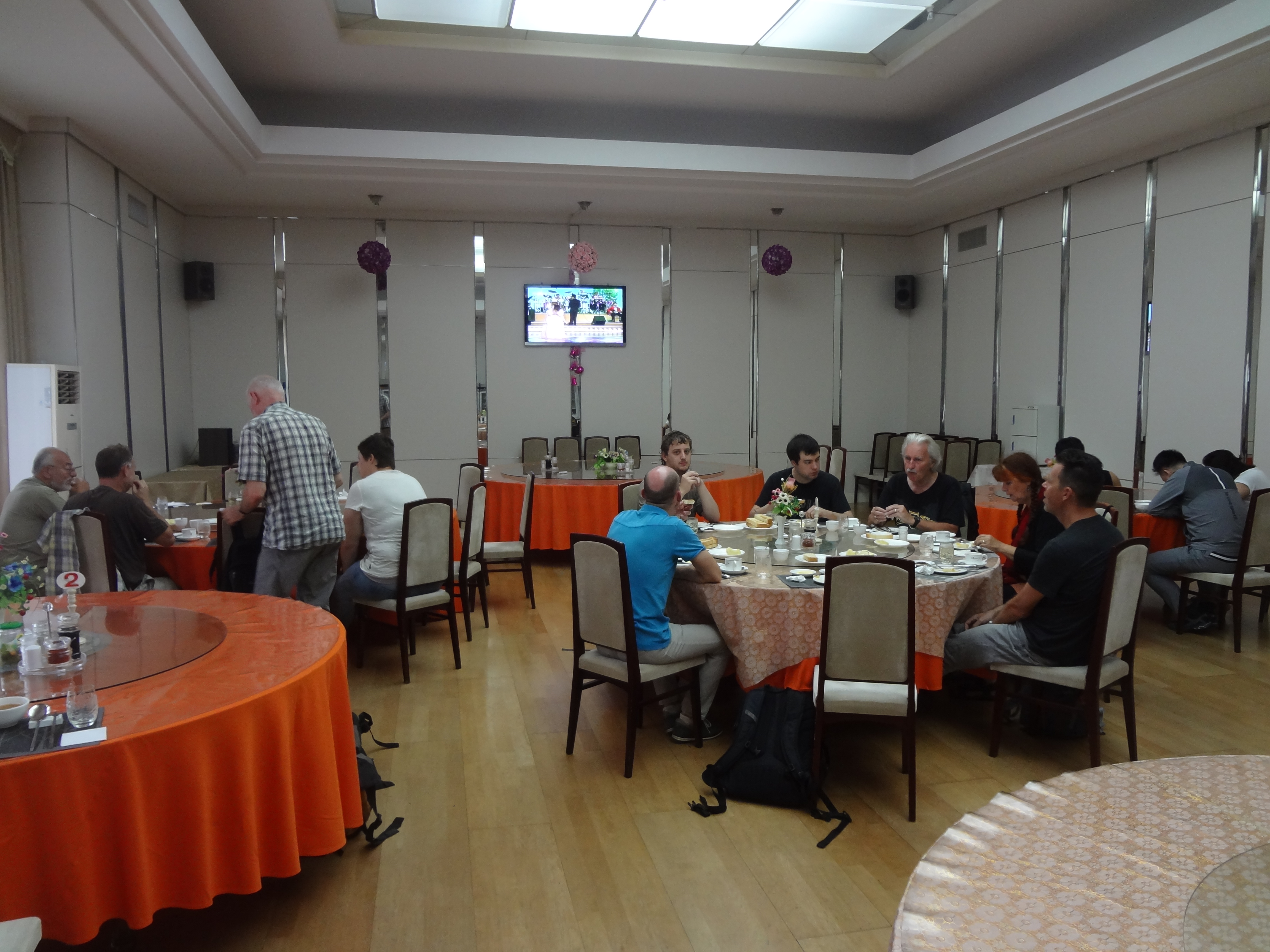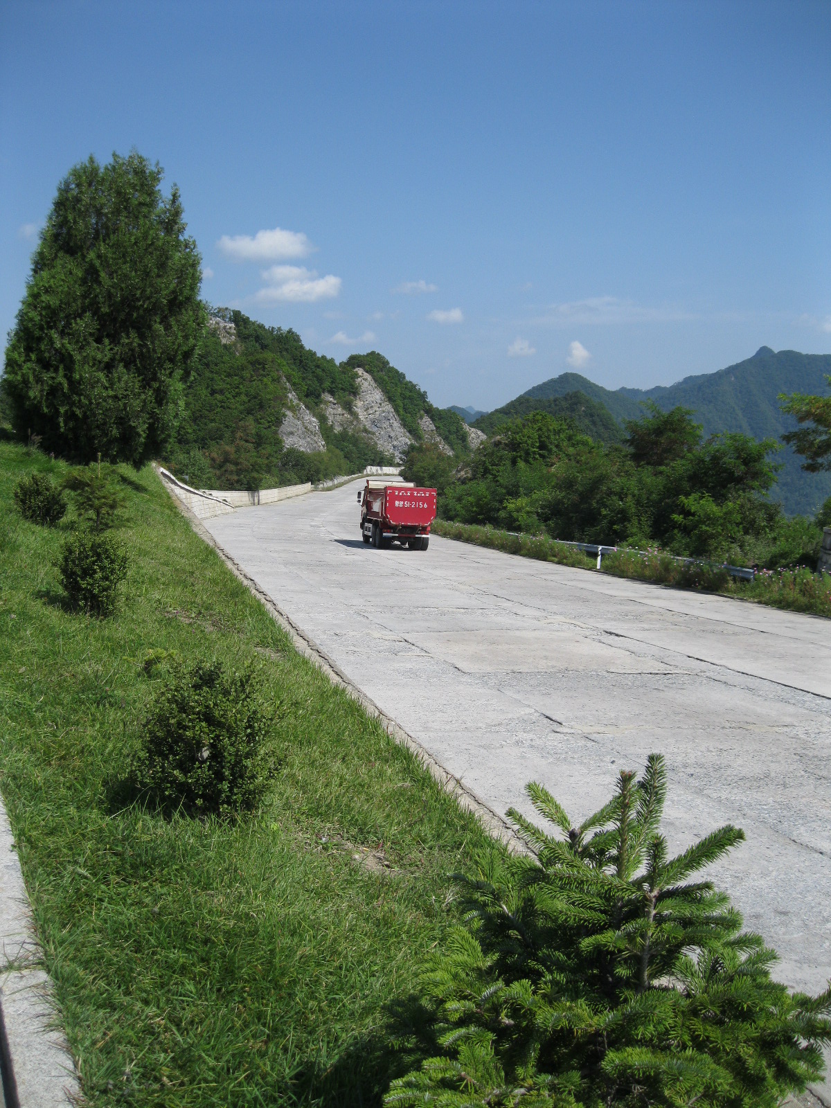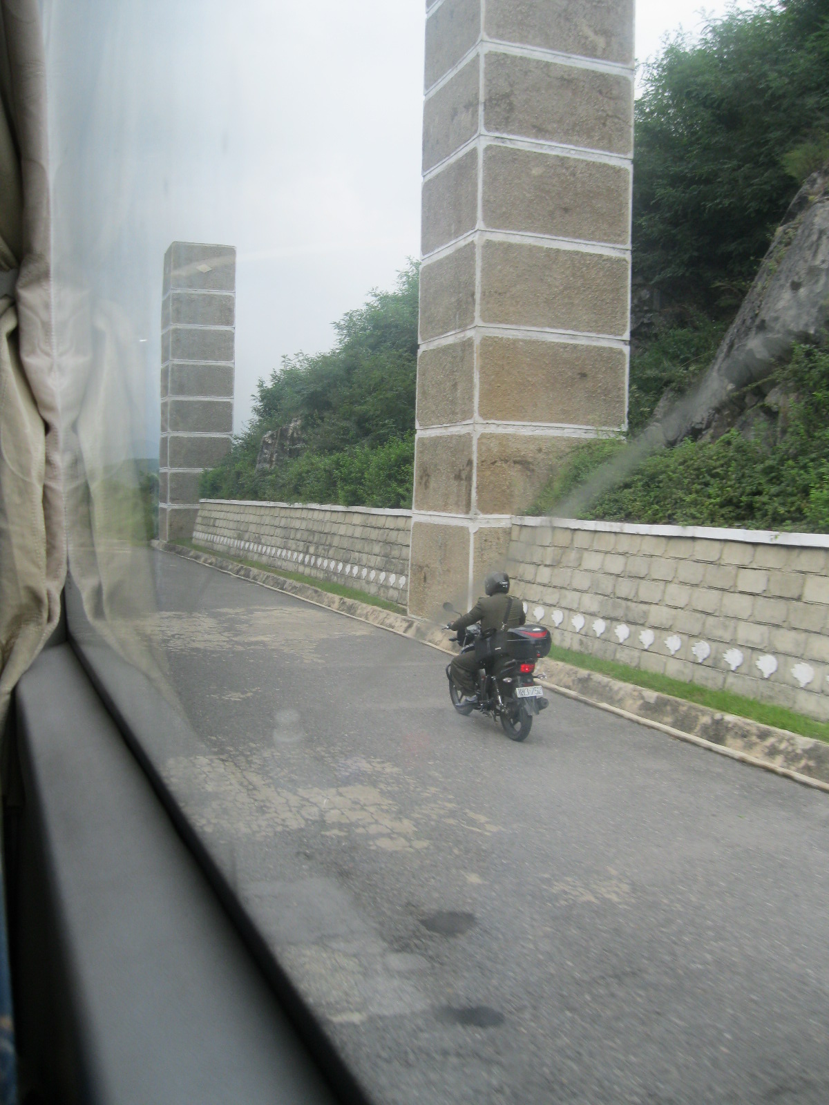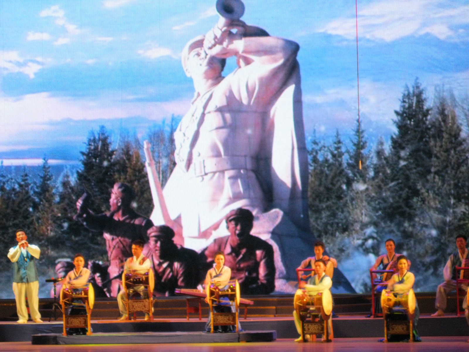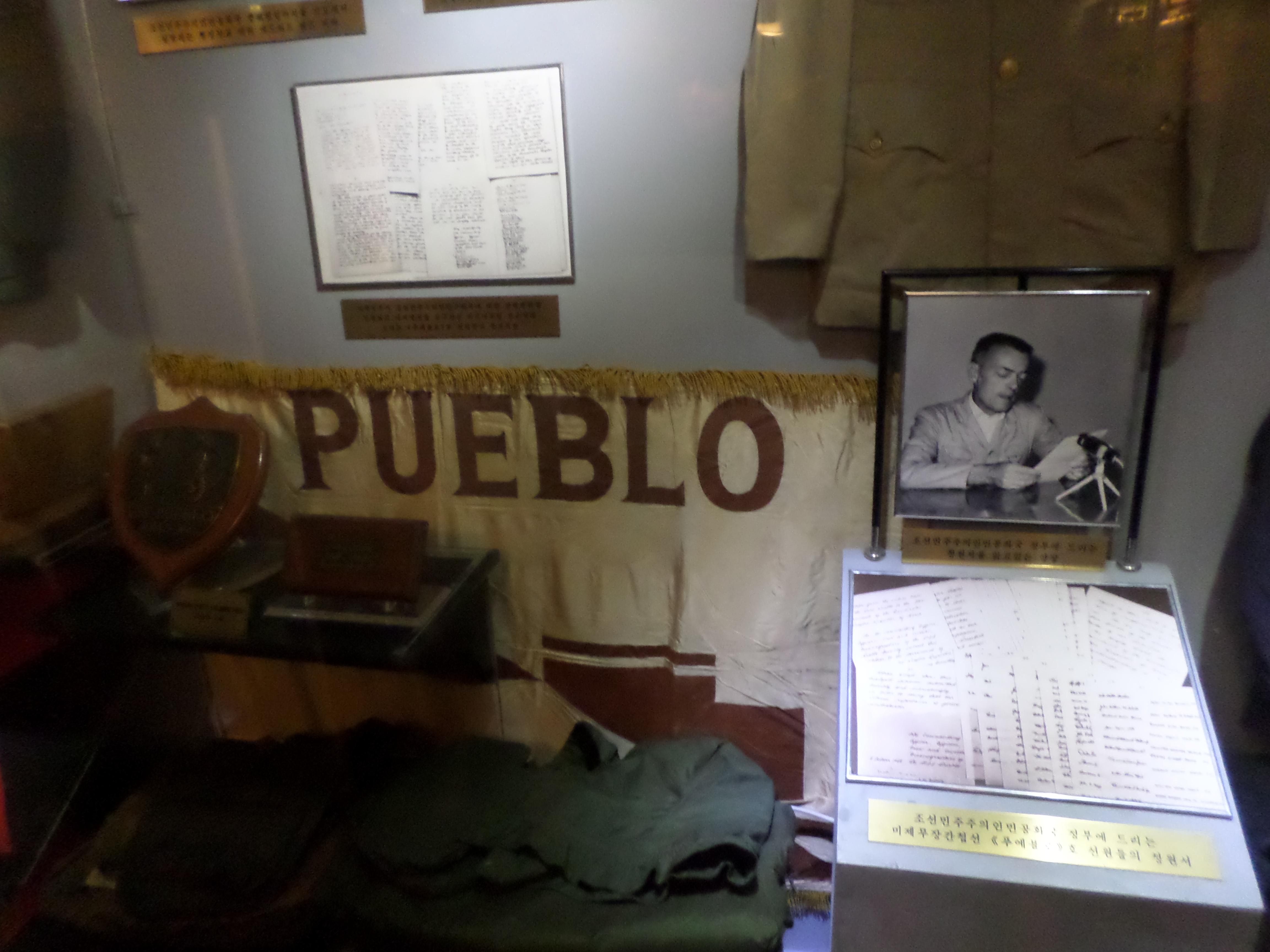 In Peking hebben we enkele uren tijd om ons voor te bereiden op de treinreis richting Noord-Korea. De trein vertrok rond 6u 's avonds. De volgende ochtend komen we aan in Dandong, een Chinese stad die grenst aan Noord-Korea.Het station van PekingDe slaapcabineHet restaurant op de trein. Een deel van het treinpersoneel was er al aan het eten. Ik besloot dan ook maar iets te eten. "Can I have a knife and fork?". "No sowwy". En de chinezen maar lachen.Op dag 3 arriveren we in Dandong, waar we een ontbijt krijgen. De rest van de treinreis wordt verdergezet op een andere trein richting de Noord-Koreaanse hoofdstad Pyongyang.Aankomst in DandongDandongIn de trein over de China-Noord-Korea Vriendschapsbrug. De Yalu rivier die we oversteken maakt een groot deel uit van de grens tussen China en Noord-Korea.Parallel loopt nog een brug, maar deze werd grotendeels vernield tijdens de Koreaanse oorlog.Links: Noord-Korea Rechts: ChinaAl snel verschijnen de portretten van de (overleden) grote leiders Kim Il Sung (links) en Kim Jong Il (rechts). Die zien we overal in Noord-Korea.Langs het platteland zien we vooral rijstvelden.Openbare werkenOnze Nederlandse reisbegeleider Jan is zeer fier op zijn Noord-Koreaanse badge. Deze badges worden door bijna alle Noord-Koreanen gedragen. Als buitenlander kan je deze badge enkel uitgereikt krijgen als je je loyaliteit bewezen hebt.In onze wagon zitten ook enkele Chinese toeristen. De meeste toeristen in Noord-Korea zijn Chinezen.Bij een tussenstop worden we gecontroleerd door Noord-Koreaanse militairen. Alle fototoestellen en telefoons worden geregistreerd, boeken en magazines worden nagekeken. Bagages worden slechts steekproefsgewijs doorgelicht. Onze paspoorten worden ook in beslag genomen. Die krijgen we pas terug op het einde van de reis.De rijstvelden zijn meestal in rechthoekige stukken ingedeeld, met bonenplanten om ze te scheiden.Tegen de avond rijden we Pyongyang binnen. Het volledige treintraject van Peking tot Pyongyang is 1371km lang en deden we ongeveer 24u over.Op dag 4 rijden we met de bus naar de industriestad Hamhung (함흥시). Hier bezoeken we oa. een fabriek van kunstmeststof.Het Yanggakdo International Hotel in Pyongyang waar we deze eerste nacht verbleven. Later keren we hier nog terug.Een tussenstop aan een meer langs het bergachtige landschap.Simon en ikDe bus waar we heel de reis mee rondtrokkenEen fotostop langs het bergachtige landschapDe gidsen vermelden dat zowat driekwart van het land bergen zijn. Omdat de Noord-Koreanen er naar streven om volledig zelfvoorzienend te zijn, wordt bijna alle vlakke grond gebruikt voor landbouw.Aan de linkerkant zie je onze Koreaanse gidsen. Meestal spreken Koreanen elkaar aan met hun volledige naam, maar gemakkelijkheidshalve mochten wij ze aanspreken als miss Kim (links) en miss Ha (rechts).Even dalen we af om een waterval te bezoeken. We picknicken hier in de buurt.De waterval zou in 2001 ontdekt zijn door Kim Jong Il, dankzij zijn fantastisch gehoor.BronwaterDit was een van de weinige maaltijden die ik volledig op kreeg. Op de bus krijgen we dan te horen dat de lunchschotels achtergelaten werden voor kinderen die de overschot zouden eten...De meeste wegen bestaan uit betonplaten.Een propagandabord langs de wegWe komen aan in Hamhung, de tweede grootste stad van Noord-Korea (~ 800.000 inwoners). We rijden hier voorbij een van de talrijke mozaïeken die we te zien zullen krijgen. Links: Kim Il Sung Midden: Kim Jong Il Rechts: Kim Jong Suk (de eerste vrouw van Kim Il Sung)Hamhung is nog maar enkele jaren "open" voor toeristen.Een fabriek van kunstmeststofBij elke bezienswaardigheid krijgen we te horen hoe vaak en wanneer juist de grote leiders die plaats bezocht hebben. Vaak zijn er mozaïeken die hun bezoek afbeelden.Binnen in de fabriekEr zijn maar weinig fabriekswerkers aanwezig, maar ze poseren wel graag voor een foto.'s avonds verblijven we in het Majon Tourist Resort aan de Oost-Koreaanse zee. Hier nemen we een frisse duik in het water.De huisjes waar we verblijven zijn vlak aan het strand.Onze zwembroeken buiten gehangen, maar echt droog werden ze niet door het vochtige klimaat.Het avondmaal. Zoals gewoonlijk werden er nog voortdurend bordjes bij gezet. Als je al vol zit krijg je dan nog een kom rijst en soep.'s middags en 's avonds was er als drank meestal plat water en bier, met de mogelijkheid om "juice" te drinken in plaats van bier. Dat was een soort appel/peren sap (niet op de foto).Onze kamerHier was geen stromend water, en diende het bad als waterreservoir. Wassen moest "op z'n Bangladesh" door een teiltje water over je gieten. In de rode emmer kon water elektrisch verwarmd worden.Op dag 5 bezoeken we nog enkele plaatsen in Hamhung, en vertrekken dan richting Mt. Kumgang. Onderweg bezoeken we oa. nog de kuststad Wonsan.Het huis van de voormalige koning Taejo van Joseon in Hamhung. Hij richtte de Koreaanse Joseondynastie op in 1392, die eindigde in 1897.Een zeer oude boomBuiten het huis stond een groep Koreaanse studenten te wachten.Een aangelegde (niet natuurlijke) heuvel met grote bronzen beelden van de leidersDe lokale gids die ons een woordje uitleg gaf. De plaatselijke gidsen spraken meestal Koreaans, dat dan naar Engels vertaald werd door onze gids miss Kim.Hamhung Grand TheatreWonsanDit verkeersbord leek met de hand geschilderd te zijn.Bezoek aan een de Chonsam coöperatieve boerderijEen persimmon boomOok de grote leiders zijn hier geweest.In het winkeltje van de boerderij kochten we enkele gedroogde persimmons.Naast de boerderij was er een kleuterschool. De kinderen zongen een liedje en wuifden ons dan uit.Iets verderop bezoeken we nog het huis van de boerin die ons begeleidde.Dit huis heeft een soort vloerverwarming die hier vaak toegepast zou worden. Op internet vond ik dit systeem terug als "Ondol".Wat voor een decoder is dat onder de TV? Telenet of Belgacom?Ten slotte bezochten we nog een boeddhistische tempel...Maar bij de tempel zelf mochten we niet komen, omdat er constructi