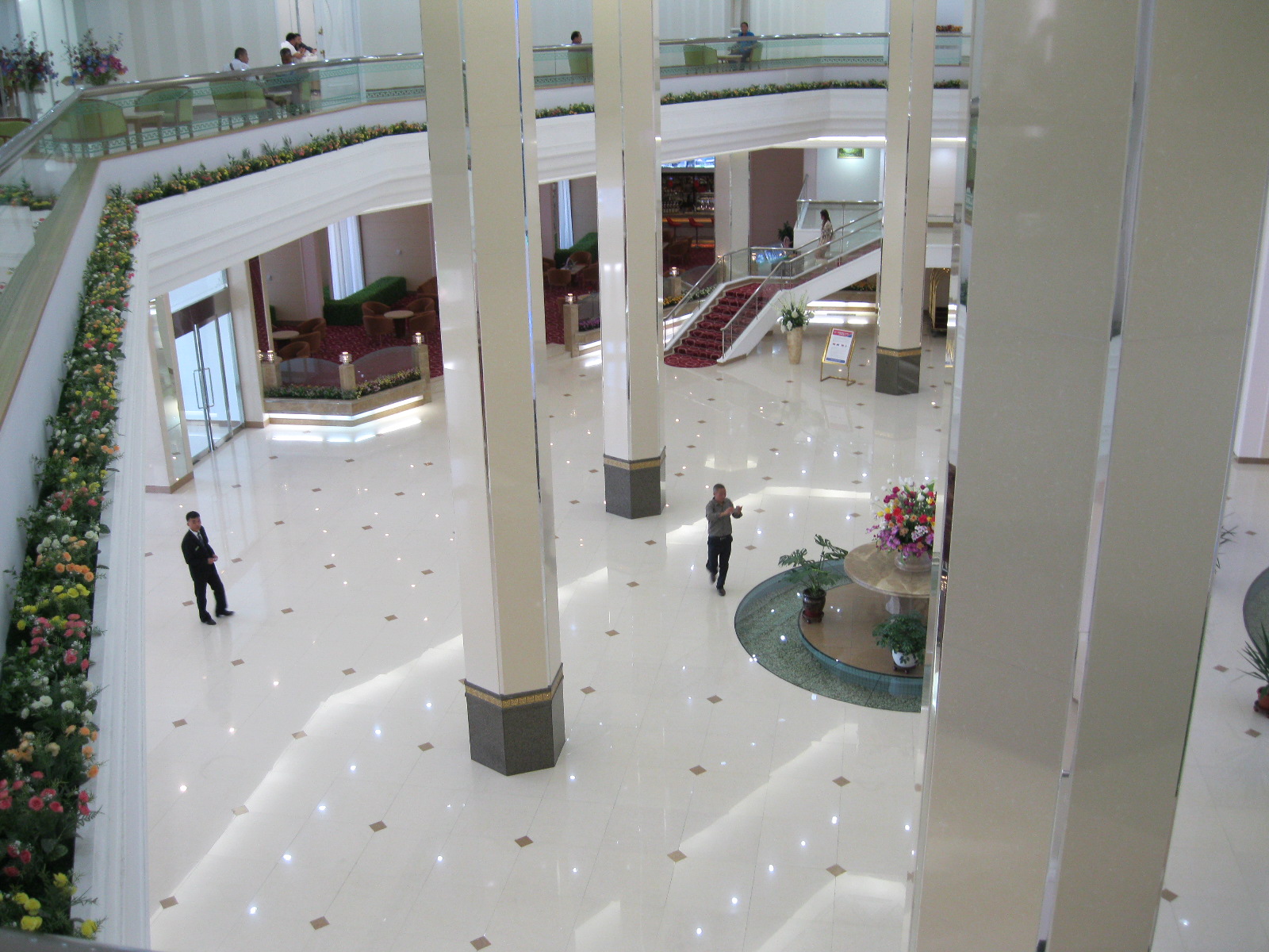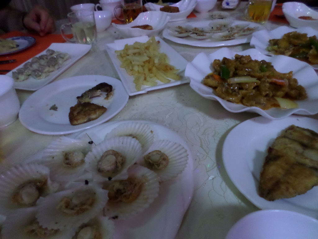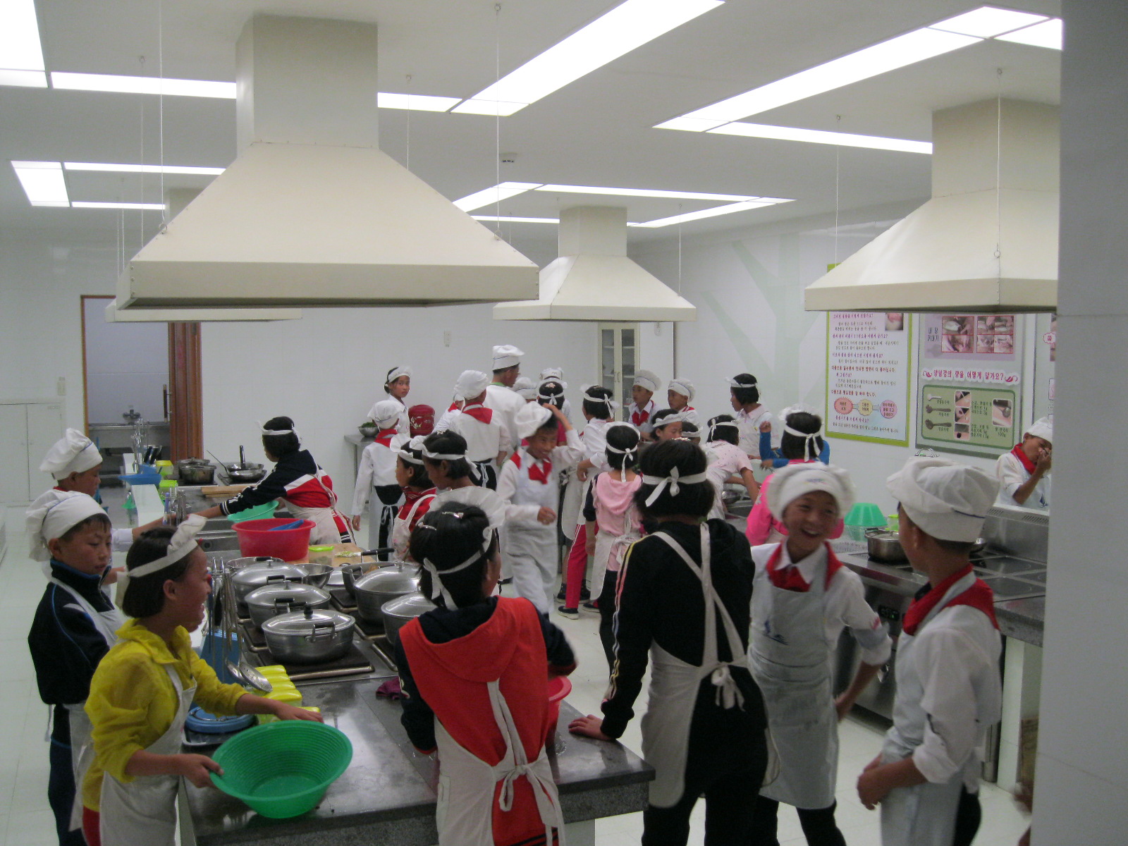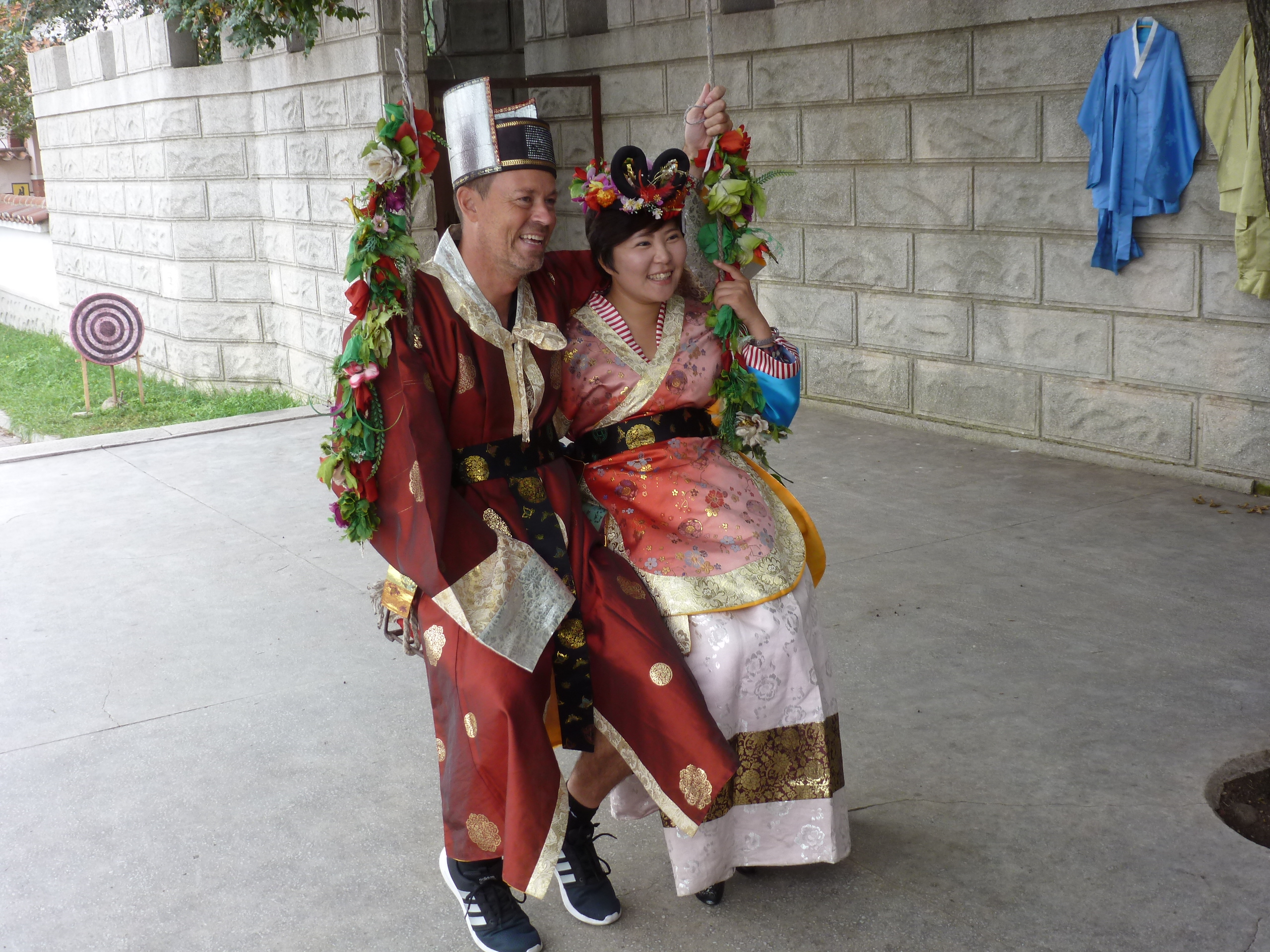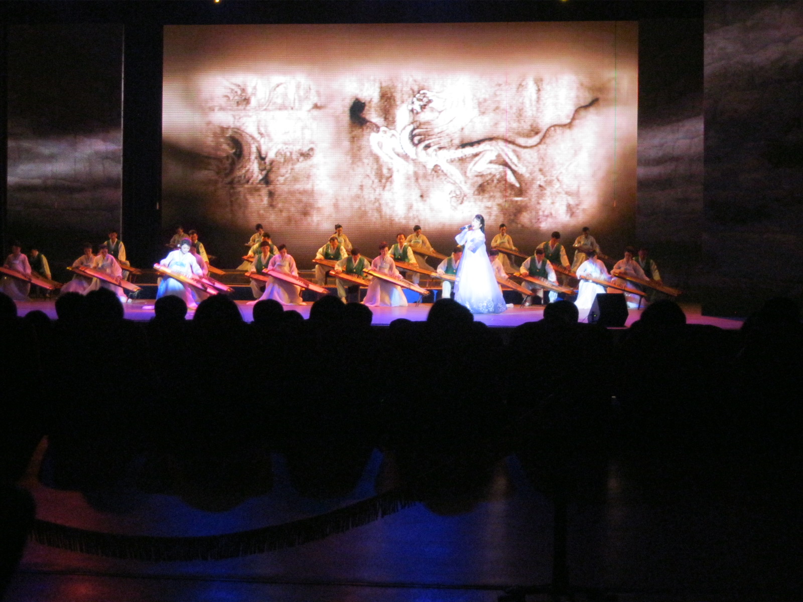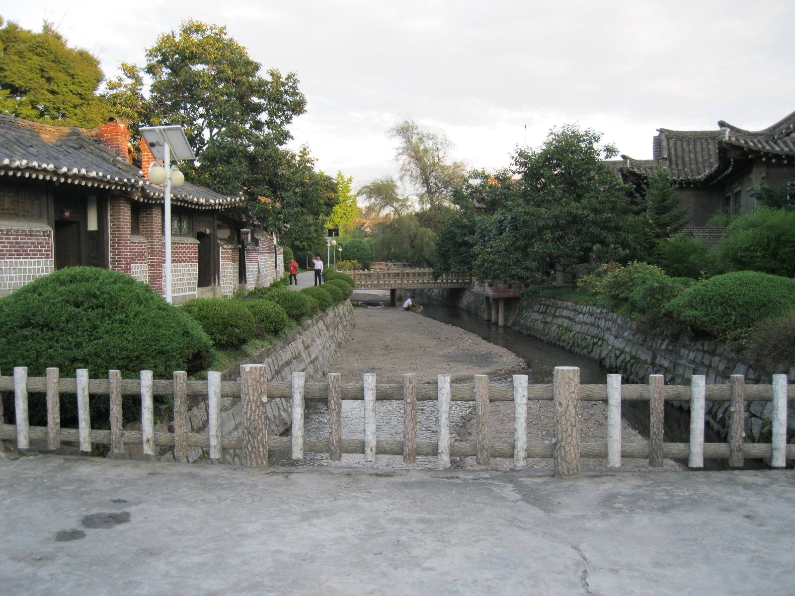 In Peking hebben we enkele uren tijd om ons voor te bereiden op de treinreis richting Noord-Korea. De trein vertrok rond 6u 's avonds. De volgende ochtend komen we aan in Dandong, een Chinese stad die grenst aan Noord-Korea.Het station van PekingDe slaapcabineHet restaurant op de trein. Een deel van het treinpersoneel was er al aan het eten. Ik besloot dan ook maar iets te eten. "Can I have a knife and fork?". "No sowwy". En de chinezen maar lachen.Op dag 3 arriveren we in Dandong, waar we een ontbijt krijgen. De rest van de treinreis wordt verdergezet op een andere trein richting de Noord-Koreaanse hoofdstad Pyongyang.Aankomst in DandongDandongIn de trein over de China-Noord-Korea Vriendschapsbrug. De Yalu rivier die we oversteken maakt een groot deel uit van de grens tussen China en Noord-Korea.Parallel loopt nog een brug, maar deze werd grotendeels vernield tijdens de Koreaanse oorlog.Links: Noord-Korea Rechts: ChinaAl snel verschijnen de portretten van de (overleden) grote leiders Kim Il Sung (links) en Kim Jong Il (rechts). Die zien we overal in Noord-Korea.Langs het platteland zien we vooral rijstvelden.Openbare werkenOnze Nederlandse reisbegeleider Jan is zeer fier op zijn Noord-Koreaanse badge. Deze badges worden door bijna alle Noord-Koreanen gedragen. Als buitenlander kan je deze badge enkel uitgereikt krijgen als je je loyaliteit bewezen hebt.In onze wagon zitten ook enkele Chinese toeristen. De meeste toeristen in Noord-Korea zijn Chinezen.Bij een tussenstop worden we gecontroleerd door Noord-Koreaanse militairen. Alle fototoestellen en telefoons worden geregistreerd, boeken en magazines worden nagekeken. Bagages worden slechts steekproefsgewijs doorgelicht. Onze paspoorten worden ook in beslag genomen. Die krijgen we pas terug op het einde van de reis.De rijstvelden zijn meestal in rechthoekige stukken ingedeeld, met bonenplanten om ze te scheiden.Tegen de avond rijden we Pyongyang binnen. Het volledige treintraject van Peking tot Pyongyang is 1371km lang en deden we ongeveer 24u over.Op dag 4 rijden we met de bus naar de industriestad Hamhung (함흥시). Hier bezoeken we oa. een fabriek van kunstmeststof.Het Yanggakdo International Hotel in Pyongyang waar we deze eerste nacht verbleven. Later keren we hier nog terug.Een tussenstop aan een meer langs het bergachtige landschap.Simon en ikDe bus waar we heel de reis mee rondtrokkenEen fotostop langs het bergachtige landschapDe gidsen vermelden dat zowat driekwart van het land bergen zijn. Omdat de Noord-Koreanen er naar streven om volledig zelfvoorzienend te zijn, wordt bijna alle vlakke grond gebruikt voor landbouw.Aan de linkerkant zie je onze Koreaanse gidsen. Meestal spreken Koreanen elkaar aan met hun volledige naam, maar gemakkelijkheidshalve mochten wij ze aanspreken als miss Kim (links) en miss Ha (rechts).Even dalen we af om een waterval te bezoeken. We picknicken hier in de buurt.De waterval zou in 2001 ontdekt zijn door Kim Jong Il, dankzij zijn fantastisch gehoor.BronwaterDit was een van de weinige maaltijden die ik volledig op kreeg. Op de bus krijgen we dan te horen dat de lunchschotels achtergelaten werden voor kinderen die de overschot zouden eten...De meeste wegen bestaan uit betonplaten.Een propagandabord langs de wegWe komen aan in Hamhung, de tweede grootste stad van Noord-Korea (~ 800.000 inwoners). We rijden hier voorbij een van de talrijke mozaïeken die we te zien zullen krijgen. Links: Kim Il Sung Midden: Kim Jong Il Rechts: Kim Jong Suk (de eerste vrouw van Kim Il Sung)Hamhung is nog maar enkele jaren "open" voor toeristen.Een fabriek van kunstmeststofBij elke bezienswaardigheid krijgen we te horen hoe vaak en wanneer juist de grote leiders die plaats bezocht hebben. Vaak zijn er mozaïeken die hun bezoek afbeelden.Binnen in de fabriekEr zijn maar weinig fabriekswerkers aanwezig, maar ze poseren wel graag voor een foto.'s avonds verblijven we in het Majon Tourist Resort aan de Oost-Koreaanse zee. Hier nemen we een frisse duik in het water.De huisjes waar we verblijven zijn vlak aan het strand.Onze zwembroeken buiten gehangen, maar echt droog werden ze niet door het vochtige klimaat.Het avondmaal. Zoals gewoonlijk werden er nog voortdurend bordjes bij gezet. Als je al vol zit krijg je dan nog een kom rijst en soep.'s middags en 's avonds was er als drank meestal plat water en bier, met de mogelijkheid om "juice" te drinken in plaats van bier. Dat was een soort appel/peren sap (niet op de foto).Onze kamerHier was geen stromend water, en diende het bad als waterreservoir. Wassen moest "op z'n Bangladesh" door een teiltje water over je gieten. In de rode emmer kon water elektrisch verwarmd worden.Op dag 5 bezoeken we nog enkele plaatsen in Hamhung, en vertrekken dan richting Mt. Kumgang. Onderweg bezoeken we oa. nog de kuststad Wonsan.Het huis van de voormalige koning Taejo van Joseon in Hamhung. Hij richtte de Koreaanse Joseondynastie op in 1392, die eindigde in 1897.Een zeer oude boomBuiten het huis stond een groep Koreaanse studenten te wachten.Een aangelegde (niet natuurlijke) heuvel met grote bronzen beelden van de leidersDe lokale gids die ons een woordje uitleg gaf. De plaatselijke gidsen spraken meestal Koreaans, dat dan naar Engels vertaald werd door onze gids miss Kim.Hamhung Grand TheatreWonsanDit verkeersbord leek met de hand geschilderd te zijn.Bezoek aan een de Chonsam coöperatieve boerderijEen persimmon boomOok de grote leiders zijn hier geweest.In het winkeltje van de boerderij kochten we enkele gedroogde persimmons.Naast de boerderij was er een kleuterschool. De kinderen zongen een liedje en wuifden ons dan uit.Iets verderop bezoeken we nog het huis van de boerin die ons begeleidde.Dit huis heeft een soort vloerverwarming die hier vaak toegepast zou worden. Op internet vond ik dit systeem terug als "Ondol".Wat voor een decoder is dat onder de TV? Telenet of Belgacom?Ten slotte bezochten we nog een boeddhistische tempel...Maar bij de tempel zelf mochten we niet komen, omdat er constructi
