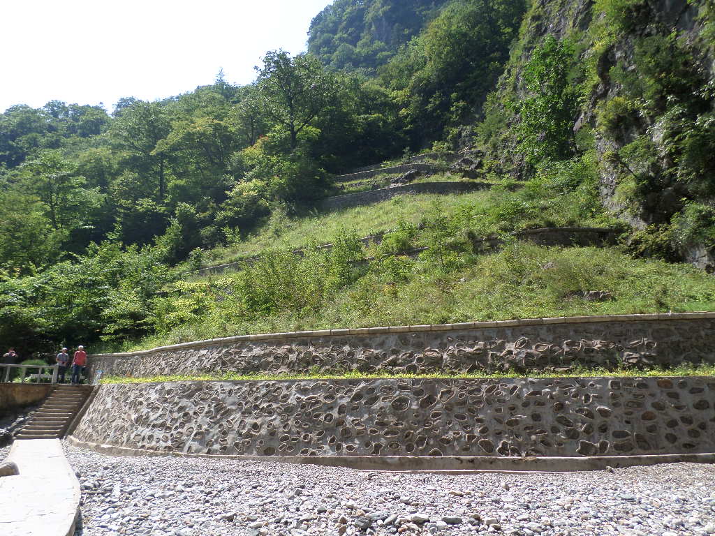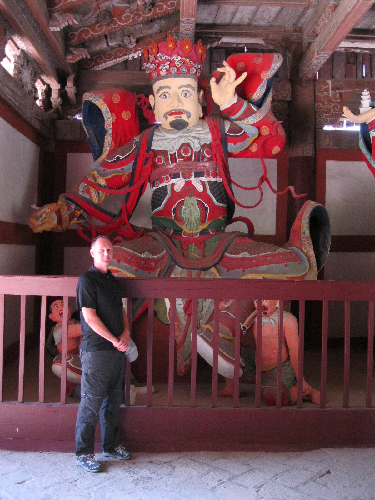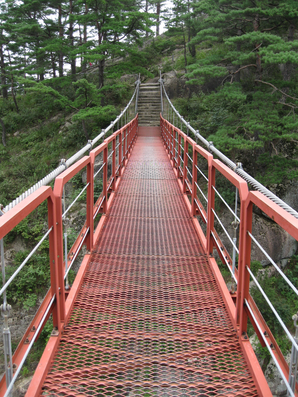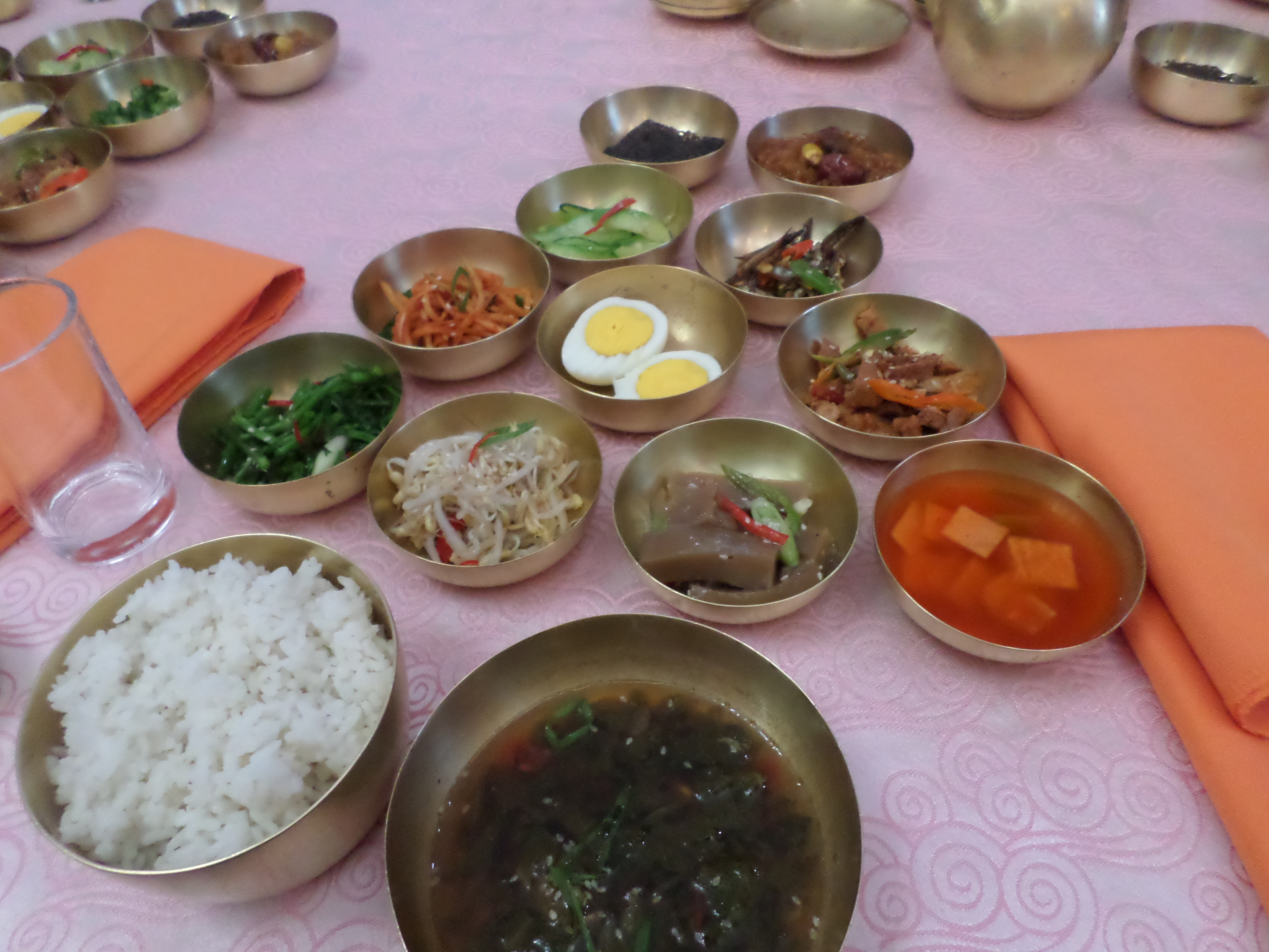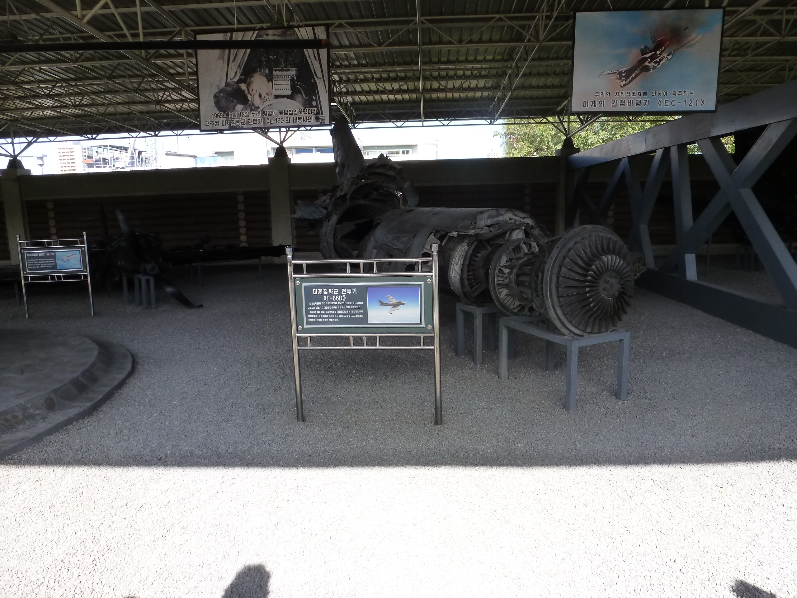 In Peking hebben we enkele uren tijd om ons voor te bereiden op de treinreis richting Noord-Korea. De trein vertrok rond 6u 's avonds. De volgende ochtend komen we aan in Dandong, een Chinese stad die grenst aan Noord-Korea.Het station van PekingDe slaapcabineHet restaurant op de trein. Een deel van het treinpersoneel was er al aan het eten. Ik besloot dan ook maar iets te eten. "Can I have a knife and fork?". "No sowwy". En de chinezen maar lachen.Op dag 3 arriveren we in Dandong, waar we een ontbijt krijgen. De rest van de treinreis wordt verdergezet op een andere trein richting de Noord-Koreaanse hoofdstad Pyongyang.Aankomst in DandongDandongIn de trein over de China-Noord-Korea Vriendschapsbrug. De Yalu rivier die we oversteken maakt een groot deel uit van de grens tussen China en Noord-Korea.Parallel loopt nog een brug, maar deze werd grotendeels vernield tijdens de Koreaanse oorlog.Links: Noord-Korea Rechts: ChinaAl snel verschijnen de portretten van de (overleden) grote leiders Kim Il Sung (links) en Kim Jong Il (rechts). Die zien we overal in Noord-Korea.Langs het platteland zien we vooral rijstvelden.Openbare werkenOnze Nederlandse reisbegeleider Jan is zeer fier op zijn Noord-Koreaanse badge. Deze badges worden door bijna alle Noord-Koreanen gedragen. Als buitenlander kan je deze badge enkel uitgereikt krijgen als je je loyaliteit bewezen hebt.In onze wagon zitten ook enkele Chinese toeristen. De meeste toeristen in Noord-Korea zijn Chinezen.Bij een tussenstop worden we gecontroleerd door Noord-Koreaanse militairen. Alle fototoestellen en telefoons worden geregistreerd, boeken en magazines worden nagekeken. Bagages worden slechts steekproefsgewijs doorgelicht. Onze paspoorten worden ook in beslag genomen. Die krijgen we pas terug op het einde van de reis.De rijstvelden zijn meestal in rechthoekige stukken ingedeeld, met bonenplanten om ze te scheiden.Tegen de avond rijden we Pyongyang binnen. Het volledige treintraject van Peking tot Pyongyang is 1371km lang en deden we ongeveer 24u over.Op dag 4 rijden we met de bus naar de industriestad Hamhung (함흥시). Hier bezoeken we oa. een fabriek van kunstmeststof.Het Yanggakdo International Hotel in Pyongyang waar we deze eerste nacht verbleven. Later keren we hier nog terug.Een tussenstop aan een meer langs het bergachtige landschap.Simon en ikDe bus waar we heel de reis mee rondtrokkenEen fotostop langs het bergachtige landschapDe gidsen vermelden dat zowat driekwart van het land bergen zijn. Omdat de Noord-Koreanen er naar streven om volledig zelfvoorzienend te zijn, wordt bijna alle vlakke grond gebruikt voor landbouw.Aan de linkerkant zie je onze Koreaanse gidsen. Meestal spreken Koreanen elkaar aan met hun volledige naam, maar gemakkelijkheidshalve mochten wij ze aanspreken als miss Kim (links) en miss Ha (rechts).Even dalen we af om een waterval te bezoeken. We picknicken hier in de buurt.De waterval zou in 2001 ontdekt zijn door Kim Jong Il, dankzij zijn fantastisch gehoor.BronwaterDit was een van de weinige maaltijden die ik volledig op kreeg. Op de bus krijgen we dan te horen dat de lunchschotels achtergelaten werden voor kinderen die de overschot zouden eten...De meeste wegen bestaan uit betonplaten.Een propagandabord langs de wegWe komen aan in Hamhung, de tweede grootste stad van Noord-Korea (~ 800.000 inwoners). We rijden hier voorbij een van de talrijke mozaïeken die we te zien zullen krijgen. Links: Kim Il Sung Midden: Kim Jong Il Rechts: Kim Jong Suk (de eerste vrouw van Kim Il Sung)Hamhung is nog maar enkele jaren "open" voor toeristen.Een fabriek van kunstmeststofBij elke bezienswaardigheid krijgen we te horen hoe vaak en wanneer juist de grote leiders die plaats bezocht hebben. Vaak zijn er mozaïeken die hun bezoek afbeelden.Binnen in de fabriekEr zijn maar weinig fabriekswerkers aanwezig, maar ze poseren wel graag voor een foto.'s avonds verblijven we in het Majon Tourist Resort aan de Oost-Koreaanse zee. Hier nemen we een frisse duik in het water.De huisjes waar we verblijven zijn vlak aan het strand.Onze zwembroeken buiten gehangen, maar echt droog werden ze niet door het vochtige klimaat.Het avondmaal. Zoals gewoonlijk werden er nog voortdurend bordjes bij gezet. Als je al vol zit krijg je dan nog een kom rijst en soep.'s middags en 's avonds was er als drank meestal plat water en bier, met de mogelijkheid om "juice" te drinken in plaats van bier. Dat was een soort appel/peren sap (niet op de foto).Onze kamerHier was geen stromend water, en diende het bad als waterreservoir. Wassen moest "op z'n Bangladesh" door een teiltje water over je gieten. In de rode emmer kon water elektrisch verwarmd worden.Op dag 5 bezoeken we nog enkele plaatsen in Hamhung, en vertrekken dan richting Mt. Kumgang. Onderweg bezoeken we oa. nog de kuststad Wonsan.Het huis van de voormalige koning Taejo van Joseon in Hamhung. Hij richtte de Koreaanse Joseondynastie op in 1392, die eindigde in 1897.Een zeer oude boomBuiten het huis stond een groep Koreaanse studenten te wachten.Een aangelegde (niet natuurlijke) heuvel met grote bronzen beelden van de leidersDe lokale gids die ons een woordje uitleg gaf. De plaatselijke gidsen spraken meestal Koreaans, dat dan naar Engels vertaald werd door onze gids miss Kim.Hamhung Grand TheatreWonsanDit verkeersbord leek met de hand geschilderd te zijn.Bezoek aan een de Chonsam coöperatieve boerderijEen persimmon boomOok de grote leiders zijn hier geweest.In het winkeltje van de boerderij kochten we enkele gedroogde persimmons.Naast de boerderij was er een kleuterschool. De kinderen zongen een liedje en wuifden ons dan uit.Iets verderop bezoeken we nog het huis van de boerin die ons begeleidde.Dit huis heeft een soort vloerverwarming die hier vaak toegepast zou worden. Op internet vond ik dit systeem terug als "Ondol".Wat voor een decoder is dat onder de TV? Telenet of Belgacom?Ten slotte bezochten we nog een boeddhistische tempel...Maar bij de tempel zelf mochten we niet komen, omdat er constructi