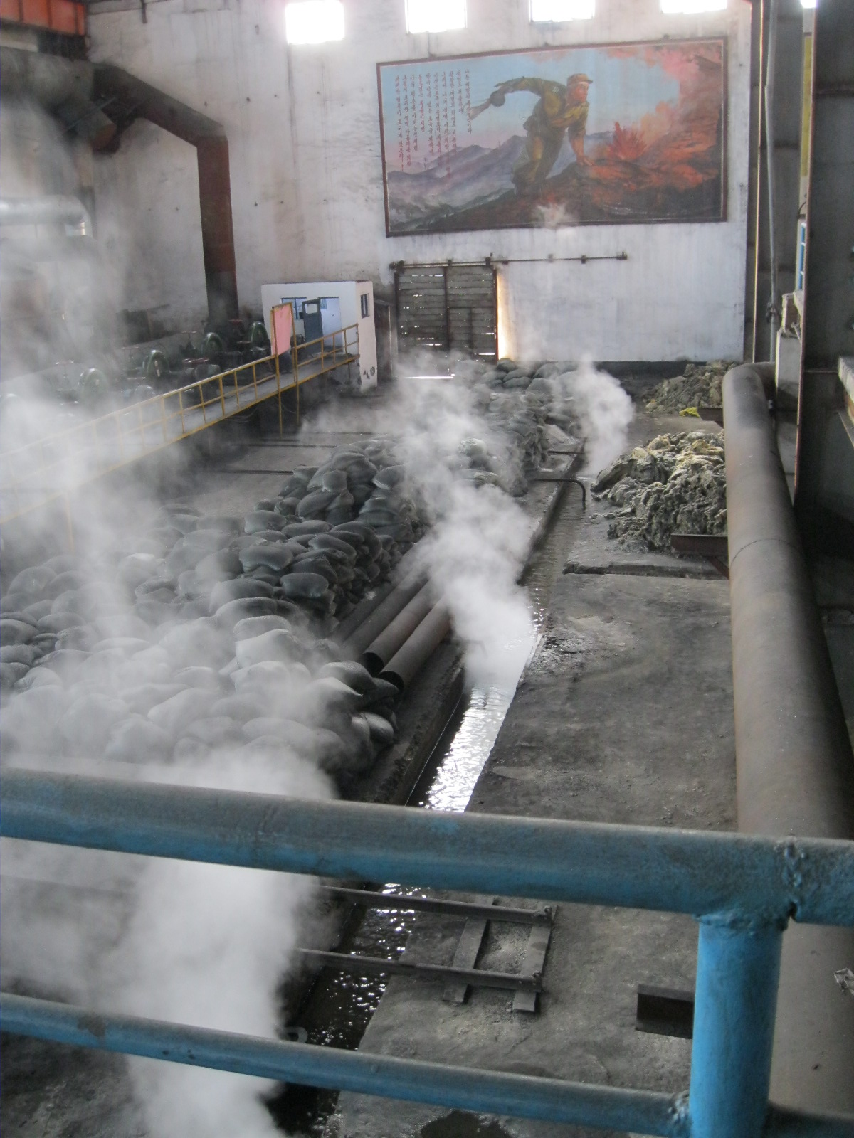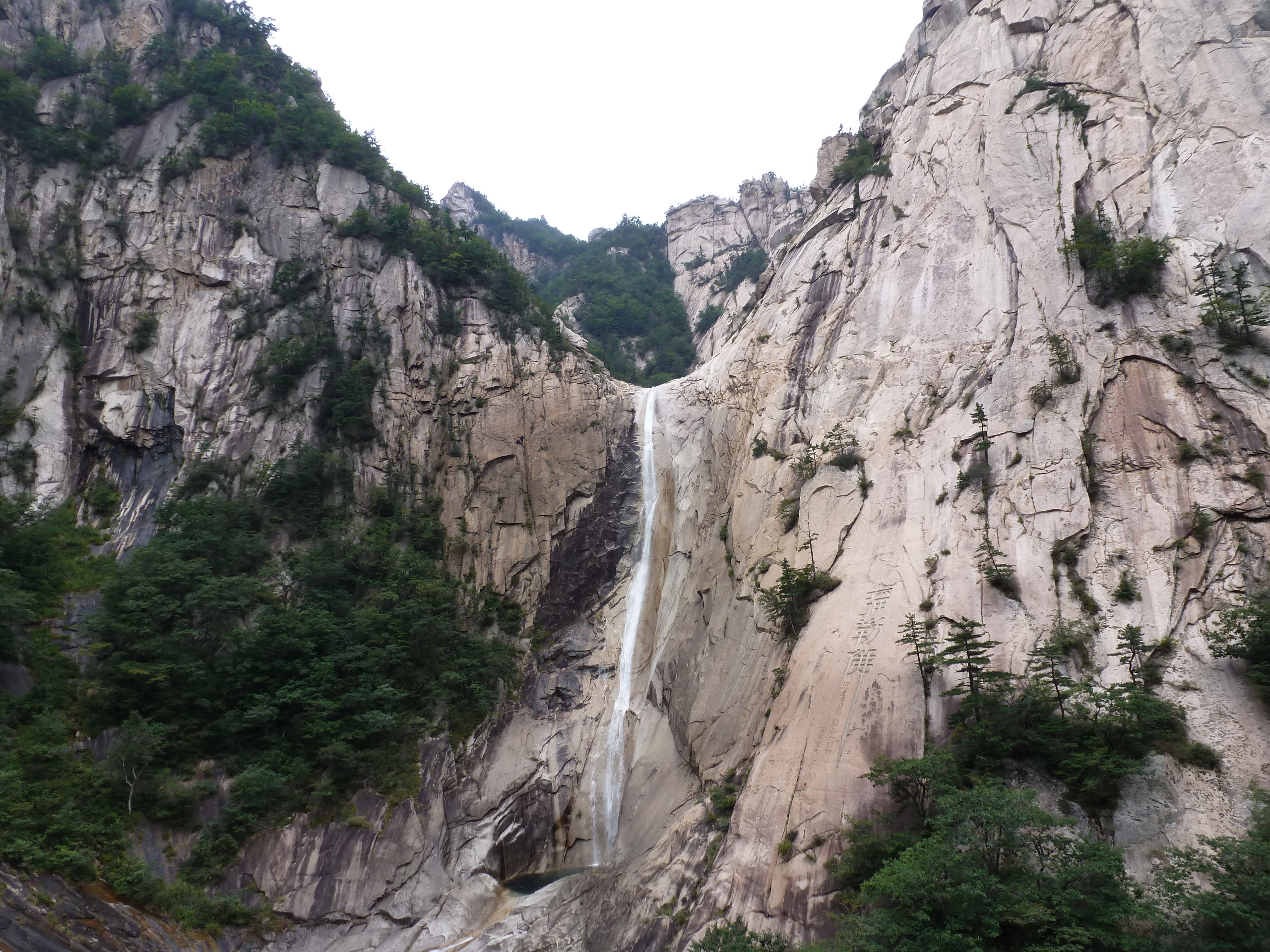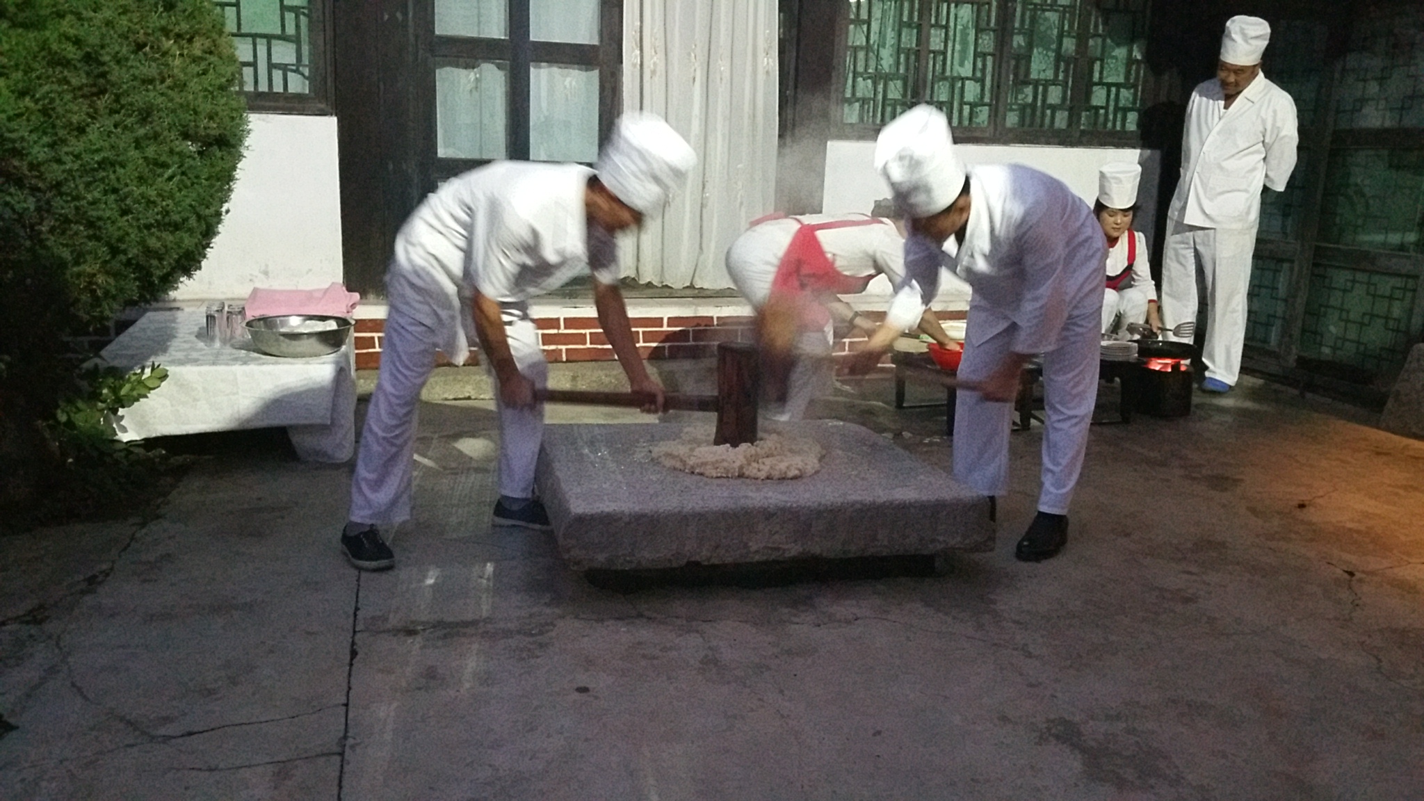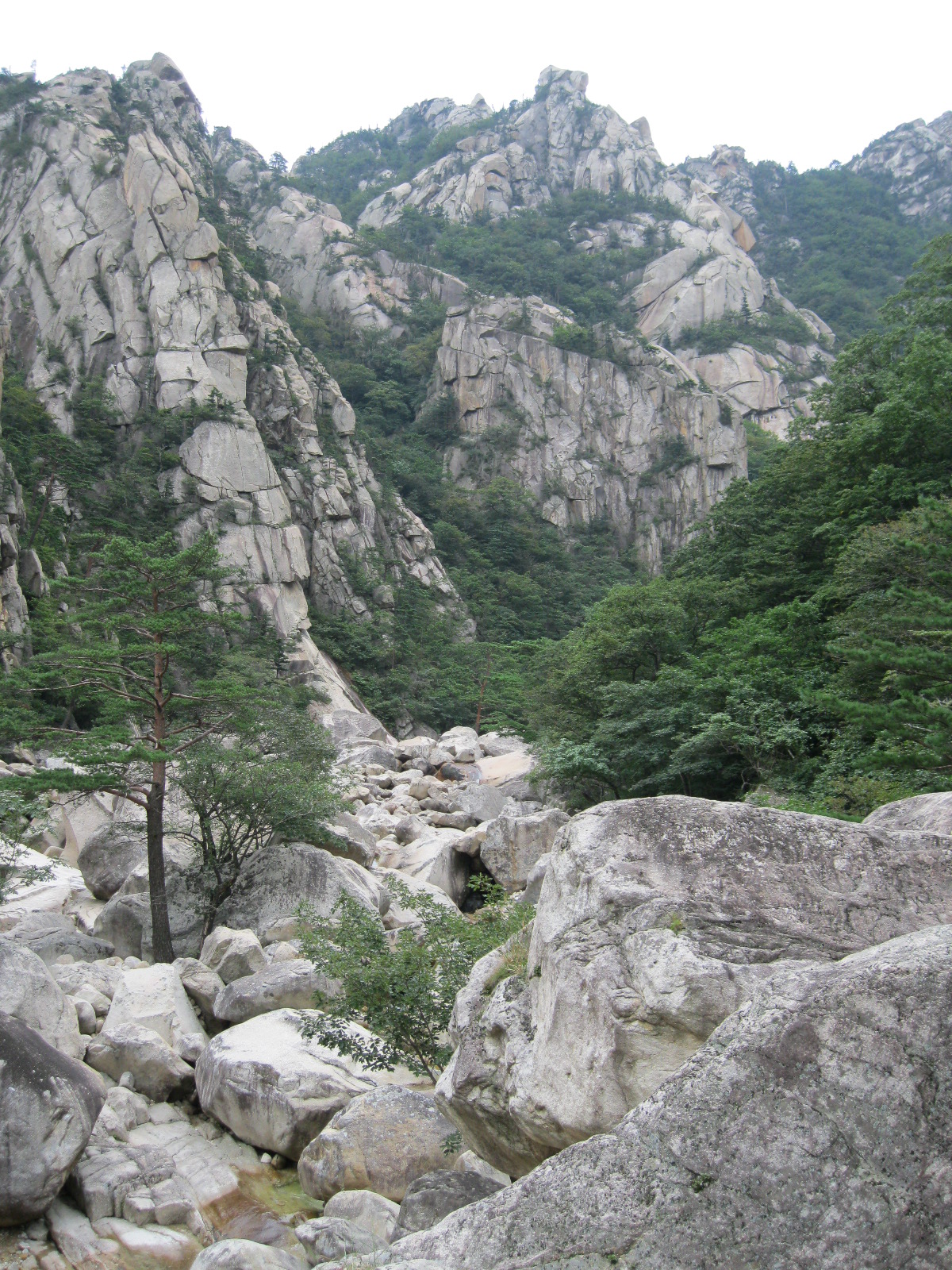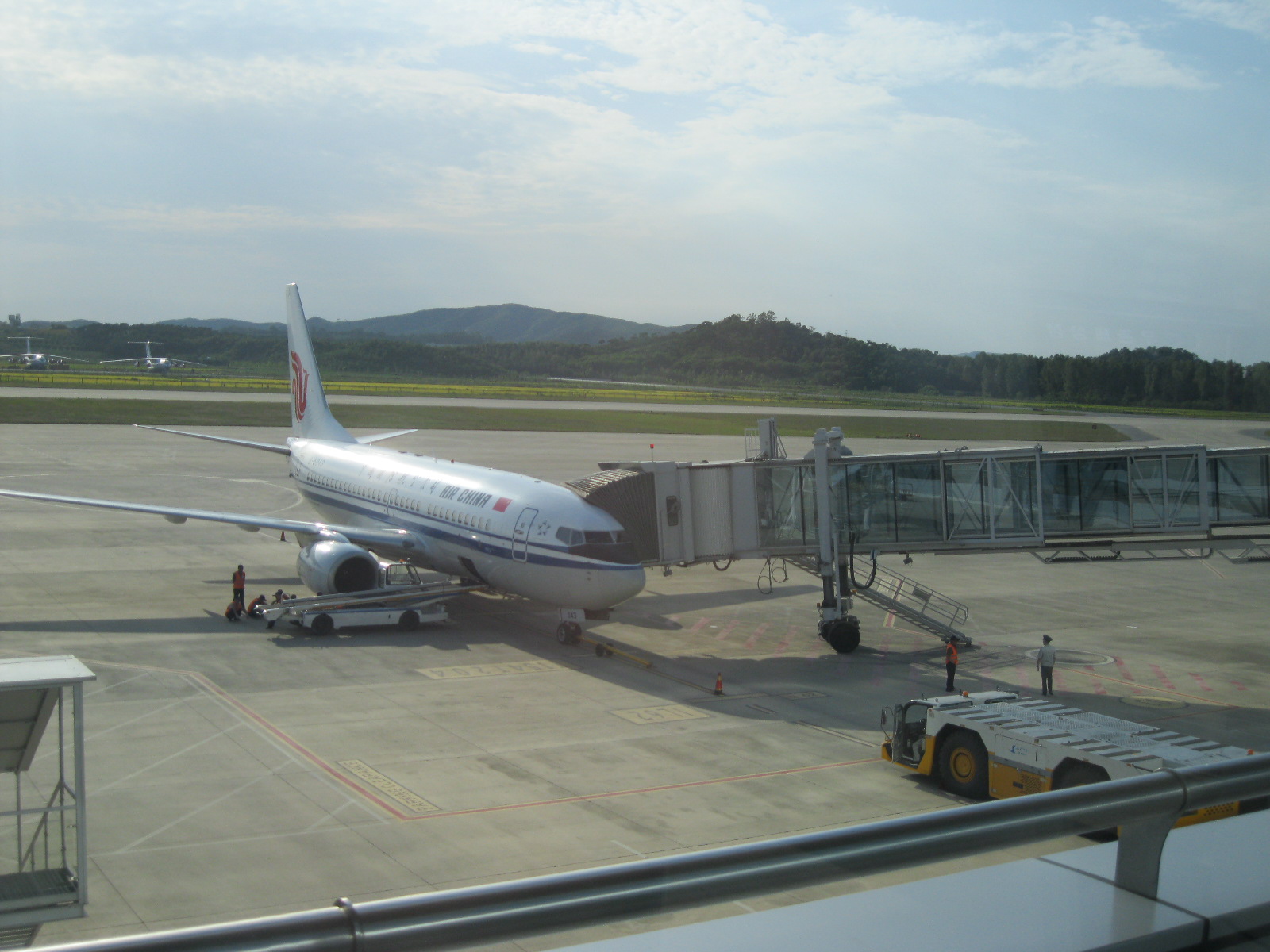 In Peking hebben we enkele uren tijd om ons voor te bereiden op de treinreis richting Noord-Korea. De trein vertrok rond 6u 's avonds. De volgende ochtend komen we aan in Dandong, een Chinese stad die grenst aan Noord-Korea.Het station van PekingDe slaapcabineHet restaurant op de trein. Een deel van het treinpersoneel was er al aan het eten. Ik besloot dan ook maar iets te eten. "Can I have a knife and fork?". "No sowwy". En de chinezen maar lachen.Op dag 3 arriveren we in Dandong, waar we een ontbijt krijgen. De rest van de treinreis wordt verdergezet op een andere trein richting de Noord-Koreaanse hoofdstad Pyongyang.Aankomst in DandongDandongIn de trein over de China-Noord-Korea Vriendschapsbrug. De Yalu rivier die we oversteken maakt een groot deel uit van de grens tussen China en Noord-Korea.Parallel loopt nog een brug, maar deze werd grotendeels vernield tijdens de Koreaanse oorlog.Links: Noord-Korea Rechts: ChinaAl snel verschijnen de portretten van de (overleden) grote leiders Kim Il Sung (links) en Kim Jong Il (rechts). Die zien we overal in Noord-Korea.Langs het platteland zien we vooral rijstvelden.Openbare werkenOnze Nederlandse reisbegeleider Jan is zeer fier op zijn Noord-Koreaanse badge. Deze badges worden door bijna alle Noord-Koreanen gedragen. Als buitenlander kan je deze badge enkel uitgereikt krijgen als je je loyaliteit bewezen hebt.In onze wagon zitten ook enkele Chinese toeristen. De meeste toeristen in Noord-Korea zijn Chinezen.Bij een tussenstop worden we gecontroleerd door Noord-Koreaanse militairen. Alle fototoestellen en telefoons worden geregistreerd, boeken en magazines worden nagekeken. Bagages worden slechts steekproefsgewijs doorgelicht. Onze paspoorten worden ook in beslag genomen. Die krijgen we pas terug op het einde van de reis.De rijstvelden zijn meestal in rechthoekige stukken ingedeeld, met bonenplanten om ze te scheiden.Tegen de avond rijden we Pyongyang binnen. Het volledige treintraject van Peking tot Pyongyang is 1371km lang en deden we ongeveer 24u over.Op dag 4 rijden we met de bus naar de industriestad Hamhung (함흥시). Hier bezoeken we oa. een fabriek van kunstmeststof.Het Yanggakdo International Hotel in Pyongyang waar we deze eerste nacht verbleven. Later keren we hier nog terug.Een tussenstop aan een meer langs het bergachtige landschap.Simon en ikDe bus waar we heel de reis mee rondtrokkenEen fotostop langs het bergachtige landschapDe gidsen vermelden dat zowat driekwart van het land bergen zijn. Omdat de Noord-Koreanen er naar streven om volledig zelfvoorzienend te zijn, wordt bijna alle vlakke grond gebruikt voor landbouw.Aan de linkerkant zie je onze Koreaanse gidsen. Meestal spreken Koreanen elkaar aan met hun volledige naam, maar gemakkelijkheidshalve mochten wij ze aanspreken als miss Kim (links) en miss Ha (rechts).Even dalen we af om een waterval te bezoeken. We picknicken hier in de buurt.De waterval zou in 2001 ontdekt zijn door Kim Jong Il, dankzij zijn fantastisch gehoor.BronwaterDit was een van de weinige maaltijden die ik volledig op kreeg. Op de bus krijgen we dan te horen dat de lunchschotels achtergelaten werden voor kinderen die de overschot zouden eten...De meeste wegen bestaan uit betonplaten.Een propagandabord langs de wegWe komen aan in Hamhung, de tweede grootste stad van Noord-Korea (~ 800.000 inwoners). We rijden hier voorbij een van de talrijke mozaïeken die we te zien zullen krijgen. Links: Kim Il Sung Midden: Kim Jong Il Rechts: Kim Jong Suk (de eerste vrouw van Kim Il Sung)Hamhung is nog maar enkele jaren "open" voor toeristen.Een fabriek van kunstmeststofBij elke bezienswaardigheid krijgen we te horen hoe vaak en wanneer juist de grote leiders die plaats bezocht hebben. Vaak zijn er mozaïeken die hun bezoek afbeelden.Binnen in de fabriekEr zijn maar weinig fabriekswerkers aanwezig, maar ze poseren wel graag voor een foto.'s avonds verblijven we in het Majon Tourist Resort aan de Oost-Koreaanse zee. Hier nemen we een frisse duik in het water.De huisjes waar we verblijven zijn vlak aan het strand.Onze zwembroeken buiten gehangen, maar echt droog werden ze niet door het vochtige klimaat.Het avondmaal. Zoals gewoonlijk werden er nog voortdurend bordjes bij gezet. Als je al vol zit krijg je dan nog een kom rijst en soep.'s middags en 's avonds was er als drank meestal plat water en bier, met de mogelijkheid om "juice" te drinken in plaats van bier. Dat was een soort appel/peren sap (niet op de foto).Onze kamerHier was geen stromend water, en diende het bad als waterreservoir. Wassen moest "op z'n Bangladesh" door een teiltje water over je gieten. In de rode emmer kon water elektrisch verwarmd worden.Op dag 5 bezoeken we nog enkele plaatsen in Hamhung, en vertrekken dan richting Mt. Kumgang. Onderweg bezoeken we oa. nog de kuststad Wonsan.Het huis van de voormalige koning Taejo van Joseon in Hamhung. Hij richtte de Koreaanse Joseondynastie op in 1392, die eindigde in 1897.Een zeer oude boomBuiten het huis stond een groep Koreaanse studenten te wachten.Een aangelegde (niet natuurlijke) heuvel met grote bronzen beelden van de leidersDe lokale gids die ons een woordje uitleg gaf. De plaatselijke gidsen spraken meestal Koreaans, dat dan naar Engels vertaald werd door onze gids miss Kim.Hamhung Grand TheatreWonsanDit verkeersbord leek met de hand geschilderd te zijn.Bezoek aan een de Chonsam coöperatieve boerderijEen persimmon boomOok de grote leiders zijn hier geweest.In het winkeltje van de boerderij kochten we enkele gedroogde persimmons.Naast de boerderij was er een kleuterschool. De kinderen zongen een liedje en wuifden ons dan uit.Iets verderop bezoeken we nog het huis van de boerin die ons begeleidde.Dit huis heeft een soort vloerverwarming die hier vaak toegepast zou worden. Op internet vond ik dit systeem terug als "Ondol".Wat voor een decoder is dat onder de TV? Telenet of Belgacom?Ten slotte bezochten we nog een boeddhistische tempel...Maar bij de tempel zelf mochten we niet komen, omdat er constructi