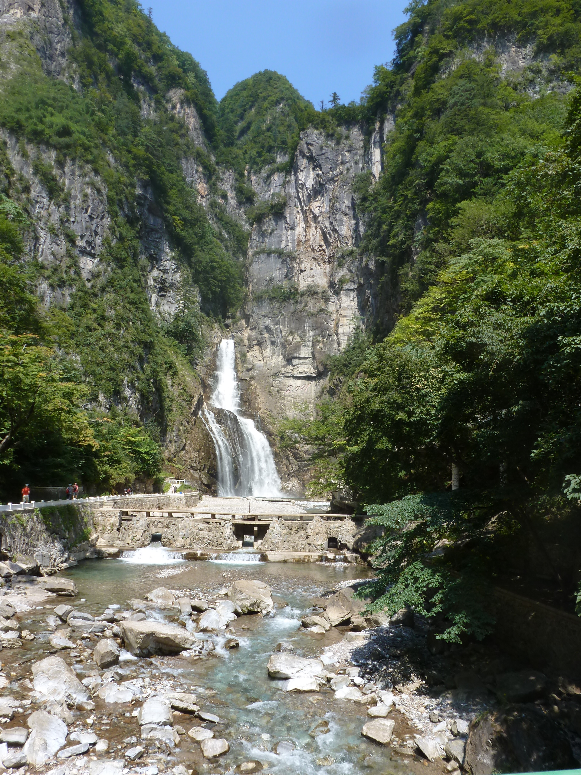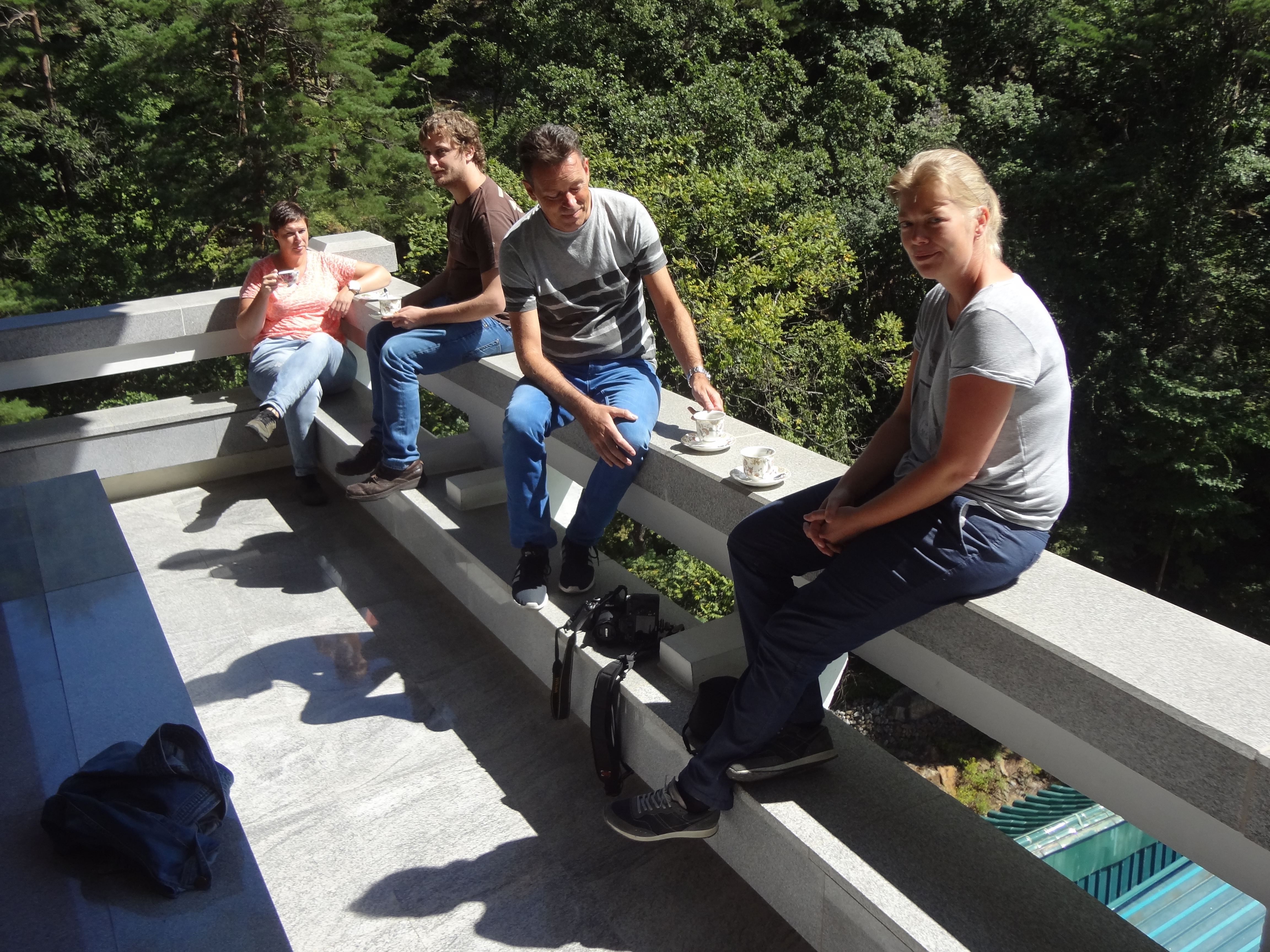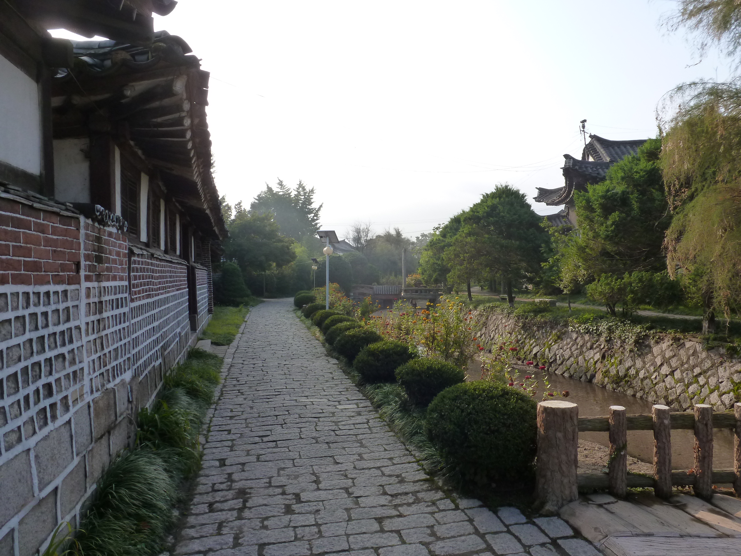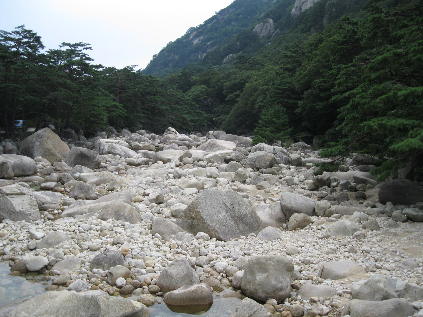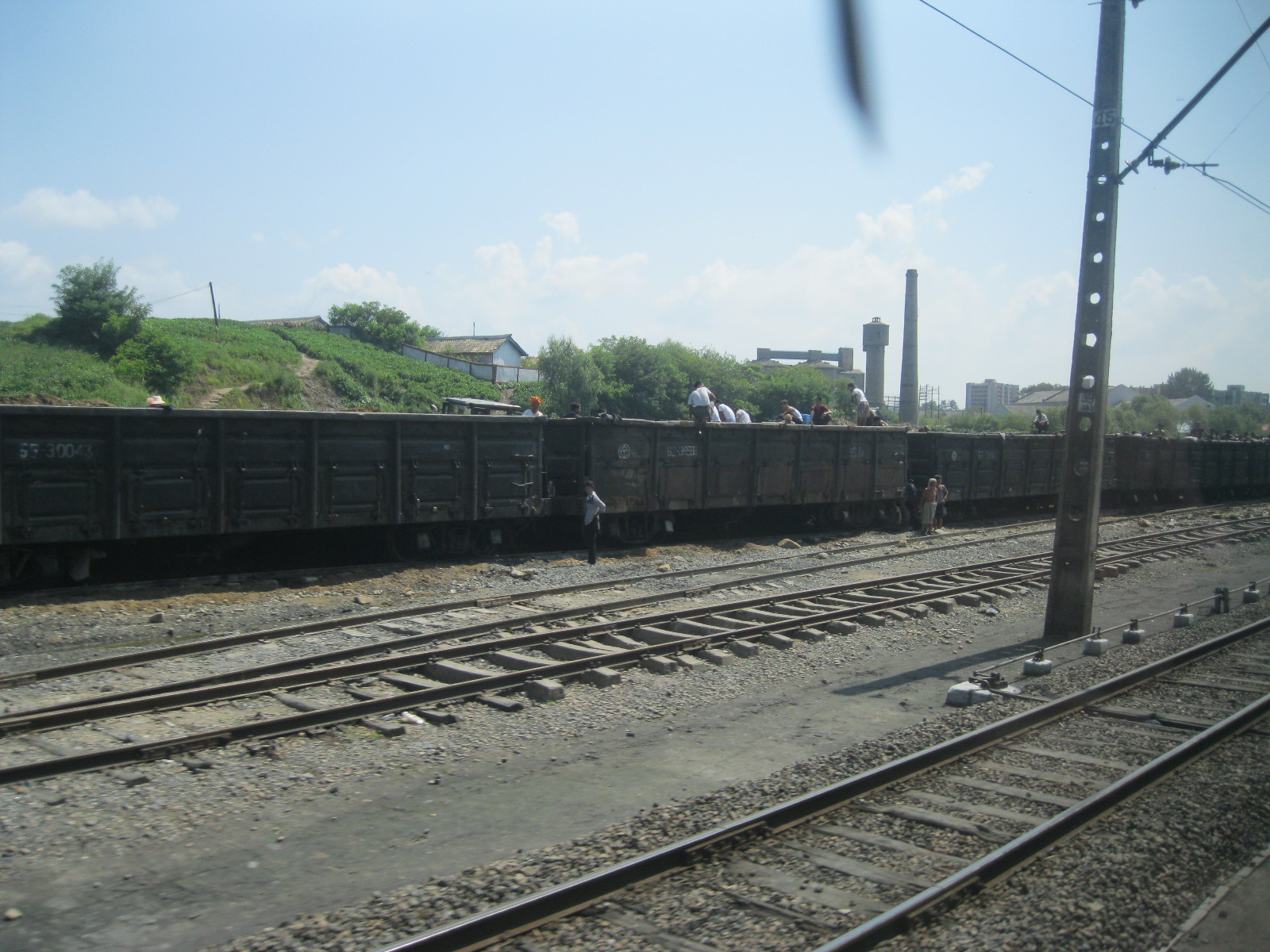In Peking hebben we enkele uren tijd om ons voor te bereiden op de treinreis richting Noord-Korea. De trein vertrok rond 6u 's avonds. De volgende ochtend komen we aan in Dandong, een Chinese stad die grenst aan Noord-Korea.Het station van PekingDe slaapcabineHet restaurant op de trein. Een deel van het treinpersoneel was er al aan het eten. Ik besloot dan ook maar iets te eten. "Can I have a knife and fork?". "No sowwy". En de chinezen maar lachen.Op dag 3 arriveren we in Dandong, waar we een ontbijt krijgen. De rest van de treinreis wordt verdergezet op een andere trein richting de Noord-Koreaanse hoofdstad Pyongyang.Aankomst in DandongDandongIn de trein over de China-Noord-Korea Vriendschapsbrug. De Yalu rivier die we oversteken maakt een groot deel uit van de grens tussen China en Noord-Korea.Parallel loopt nog een brug, maar deze werd grotendeels vernield tijdens de Koreaanse oorlog.Links: Noord-Korea Rechts: ChinaAl snel verschijnen de portretten van de (overleden) grote leiders Kim Il Sung (links) en Kim Jong Il (rechts). Die zien we overal in Noord-Korea.Langs het platteland zien we vooral rijstvelden.Openbare werkenOnze Nederlandse reisbegeleider Jan is zeer fier op zijn Noord-Koreaanse badge. Deze badges worden door bijna alle Noord-Koreanen gedragen. Als buitenlander kan je deze badge enkel uitgereikt krijgen als je je loyaliteit bewezen hebt.In onze wagon zitten ook enkele Chinese toeristen. De meeste toeristen in Noord-Korea zijn Chinezen.Bij een tussenstop worden we gecontroleerd door Noord-Koreaanse militairen. Alle fototoestellen en telefoons worden geregistreerd, boeken en magazines worden nagekeken. Bagages worden slechts steekproefsgewijs doorgelicht. Onze paspoorten worden ook in beslag genomen. Die krijgen we pas terug op het einde van de reis.De rijstvelden zijn meestal in rechthoekige stukken ingedeeld, met bonenplanten om ze te scheiden.Tegen de avond rijden we Pyongyang binnen. Het volledige treintraject van Peking tot Pyongyang is 1371km lang en deden we ongeveer 24u over.Op dag 4 rijden we met de bus naar de industriestad Hamhung (함흥시). Hier bezoeken we oa. een fabriek van kunstmeststof.Het Yanggakdo International Hotel in Pyongyang waar we deze eerste nacht verbleven. Later keren we hier nog terug.Een tussenstop aan een meer langs het bergachtige landschap.Simon en ikDe bus waar we heel de reis mee rondtrokkenEen fotostop langs het bergachtige landschapDe gidsen vermelden dat zowat driekwart van het land bergen zijn. Omdat de Noord-Koreanen er naar streven om volledig zelfvoorzienend te zijn, wordt bijna alle vlakke grond gebruikt voor landbouw.Aan de linkerkant zie je onze Koreaanse gidsen. Meestal spreken Koreanen elkaar aan met hun volledige naam, maar gemakkelijkheidshalve mochten wij ze aanspreken als miss Kim (links) en miss Ha (rechts).Even dalen we af om een waterval te bezoeken. We picknicken hier in de buurt.De waterval zou in 2001 ontdekt zijn door Kim Jong Il, dankzij zijn fantastisch gehoor.BronwaterDit was een van de weinige maaltijden die ik volledig op kreeg. Op de bus krijgen we dan te horen dat de lunchschotels achtergelaten werden voor kinderen die de overschot zouden eten...De meeste wegen bestaan uit betonplaten.Een propagandabord langs de wegWe komen aan in Hamhung, de tweede grootste stad van Noord-Korea (~ 800.000 inwoners). We rijden hier voorbij een van de talrijke mozaïeken die we te zien zullen krijgen. Links: Kim Il Sung Midden: Kim Jong Il Rechts: Kim Jong Suk (de eerste vrouw van Kim Il Sung)Hamhung is nog maar enkele jaren "open" voor toeristen.Een fabriek van kunstmeststofBij elke bezienswaardigheid krijgen we te horen hoe vaak en wanneer juist de grote leiders die plaats bezocht hebben. Vaak zijn er mozaïeken die hun bezoek afbeelden.Binnen in de fabriekEr zijn maar weinig fabriekswerkers aanwezig, maar ze poseren wel graag voor een foto.'s avonds verblijven we in het Majon Tourist Resort aan de Oost-Koreaanse zee. Hier nemen we een frisse duik in het water.De huisjes waar we verblijven zijn vlak aan het strand.Onze zwembroeken buiten gehangen, maar echt droog werden ze niet door het vochtige klimaat.Het avondmaal. Zoals gewoonlijk werden er nog voortdurend bordjes bij gezet. Als je al vol zit krijg je dan nog een kom rijst en soep.'s middags en 's avonds was er als drank meestal plat water en bier, met de mogelijkheid om "juice" te drinken in plaats van bier. Dat was een soort appel/peren sap (niet op de foto).Onze kamerHier was geen stromend water, en diende het bad als waterreservoir. Wassen moest "op z'n Bangladesh" door een teiltje water over je gieten. In de rode emmer kon water elektrisch verwarmd worden.Op dag 5 bezoeken we nog enkele plaatsen in Hamhung, en vertrekken dan richting Mt. Kumgang. Onderweg bezoeken we oa. nog de kuststad Wonsan.Het huis van de voormalige koning Taejo van Joseon in Hamhung. Hij richtte de Koreaanse Joseondynastie op in 1392, die eindigde in 1897.Een zeer oude boomBuiten het huis stond een groep Koreaanse studenten te wachten.Een aangelegde (niet natuurlijke) heuvel met grote bronzen beelden van de leidersDe lokale gids die ons een woordje uitleg gaf. De plaatselijke gidsen spraken meestal Koreaans, dat dan naar Engels vertaald werd door onze gids miss Kim.Hamhung Grand TheatreWonsanDit verkeersbord leek met de hand geschilderd te zijn.Bezoek aan een de Chonsam coöperatieve boerderijEen persimmon boomOok de grote leiders zijn hier geweest.In het winkeltje van de boerderij kochten we enkele gedroogde persimmons.Naast de boerderij was er een kleuterschool. De kinderen zongen een liedje en wuifden ons dan uit.Iets verderop bezoeken we nog het huis van de boerin die ons begeleidde.Dit huis heeft een soort vloerverwarming die hier vaak toegepast zou worden. Op internet vond ik dit systeem terug als "Ondol".Wat voor een decoder is dat onder de TV? Telenet of Belgacom?Ten slotte bezochten we nog een boeddhistische tempel...Maar bij de tempel zelf mochten we niet komen, omdat er constructi