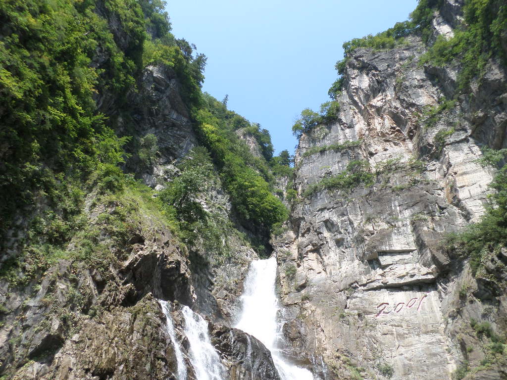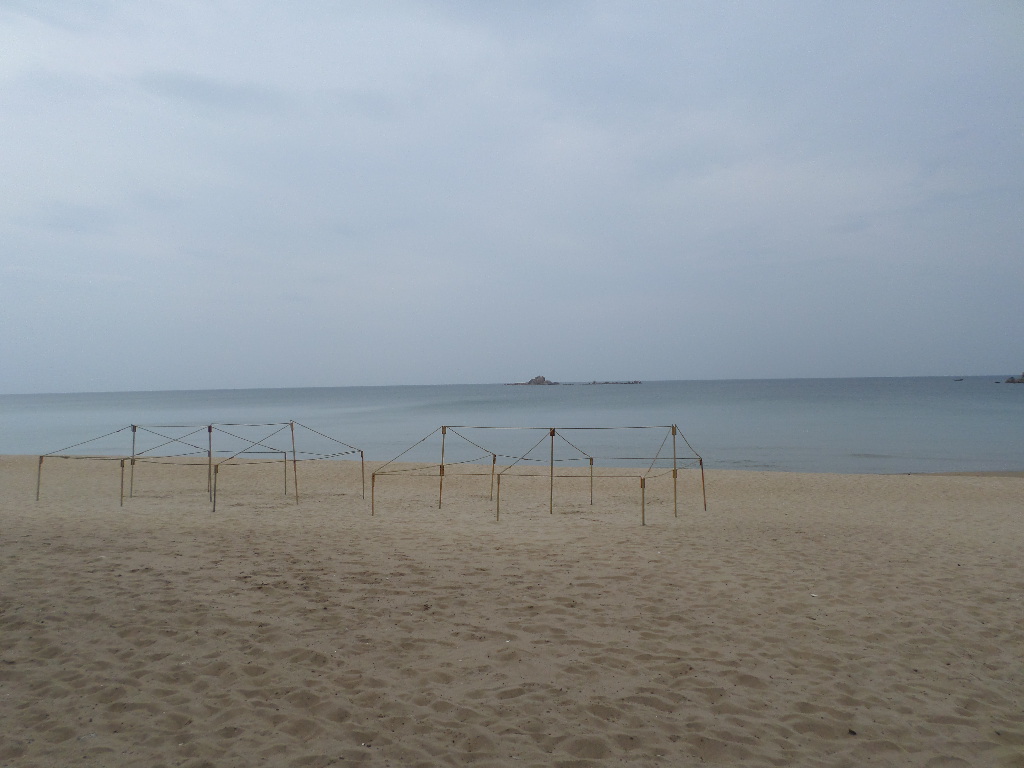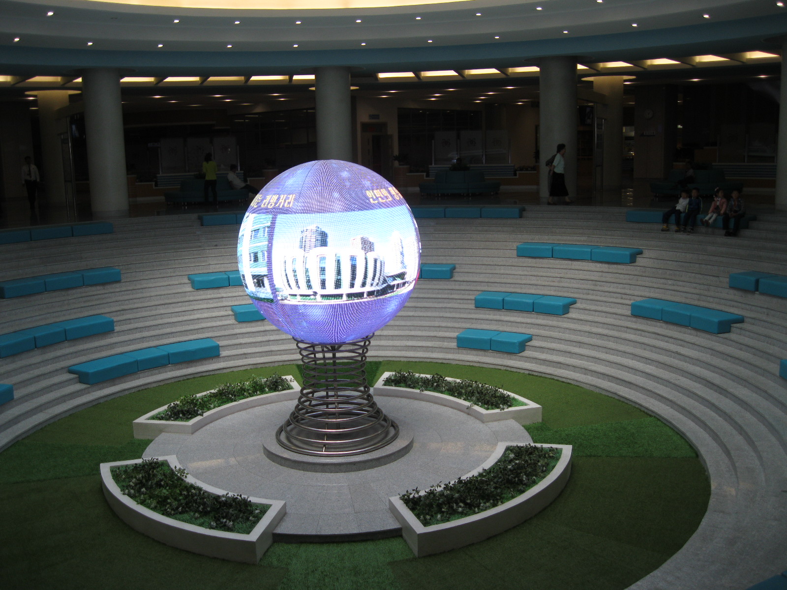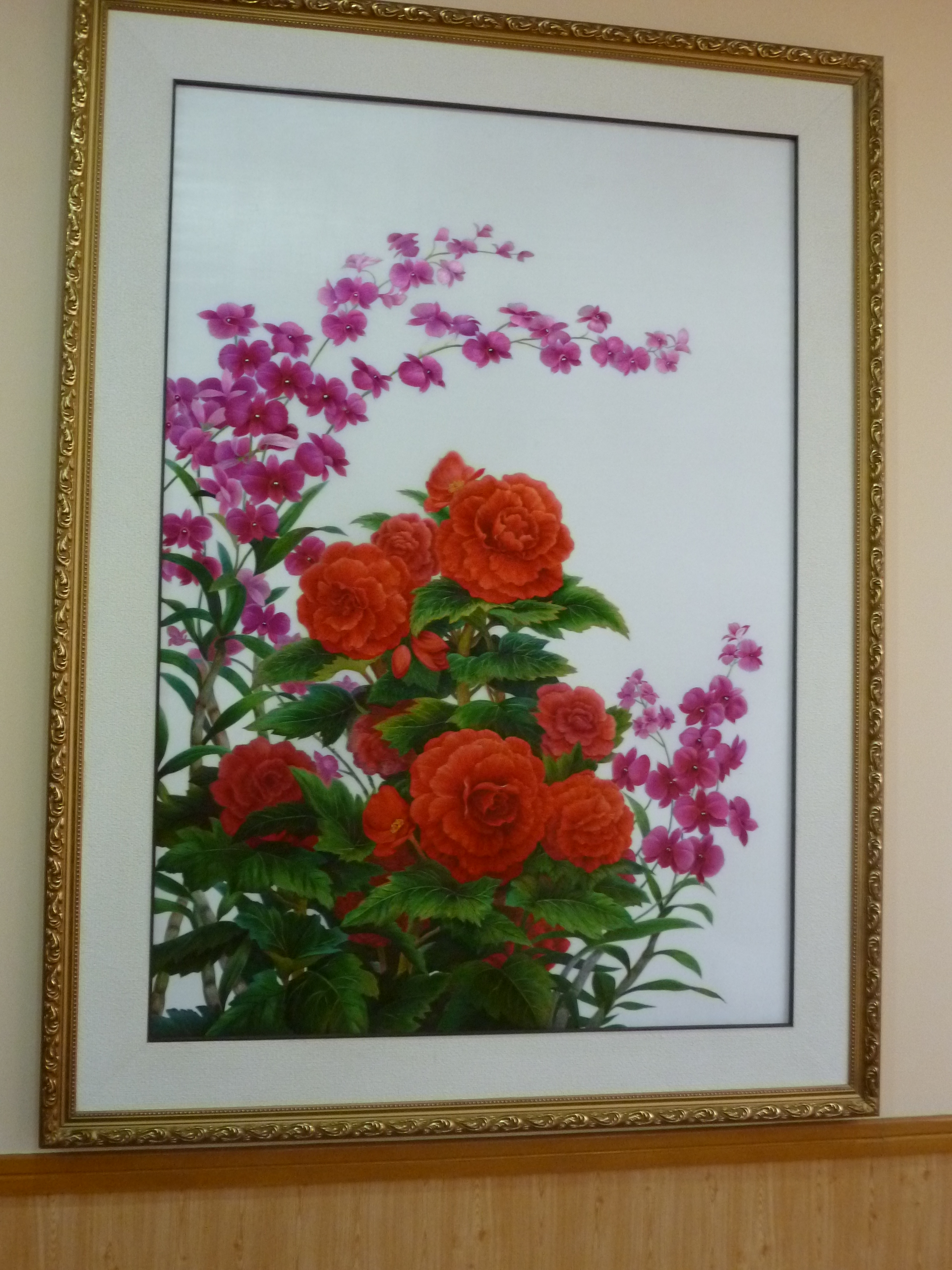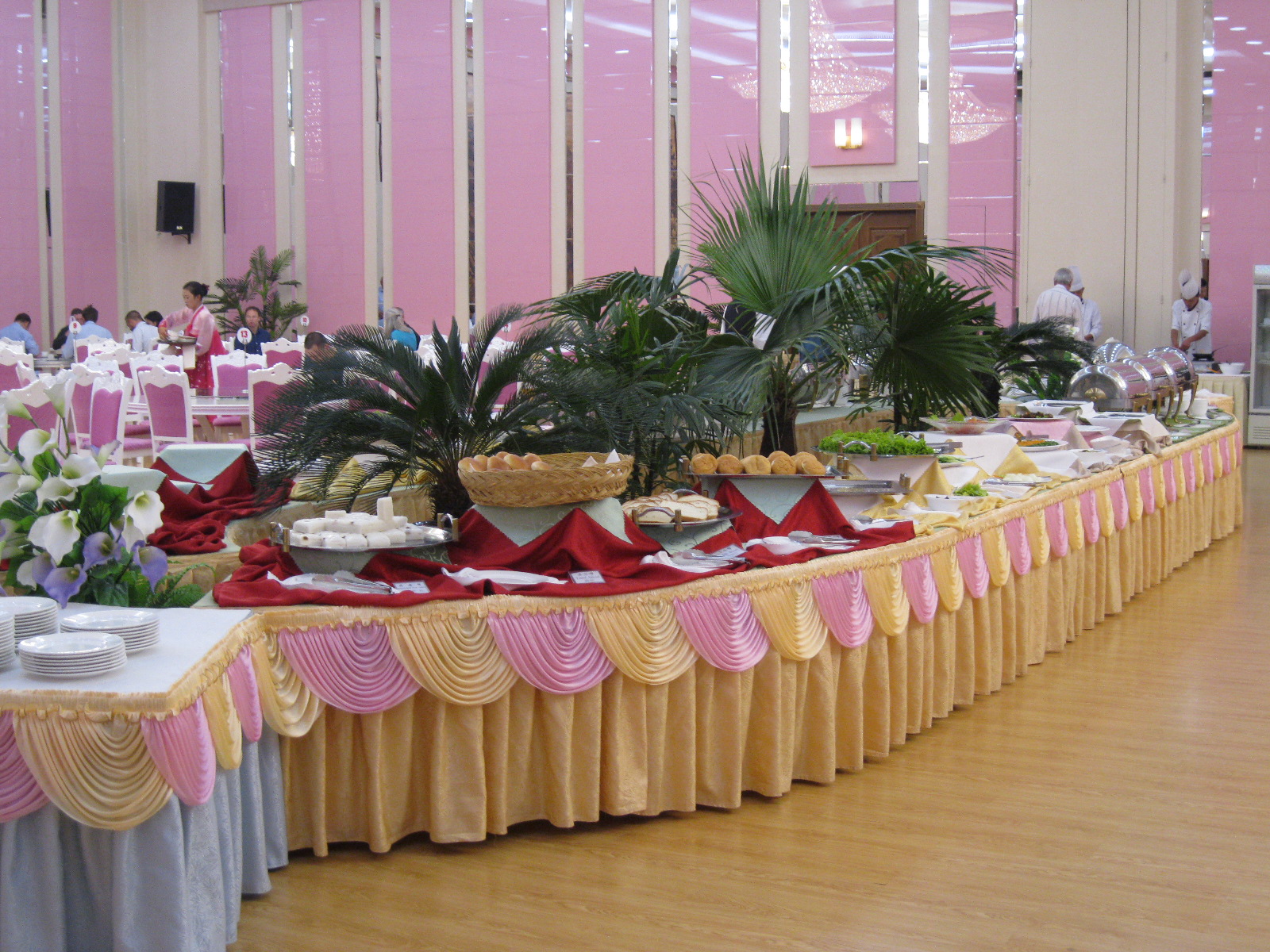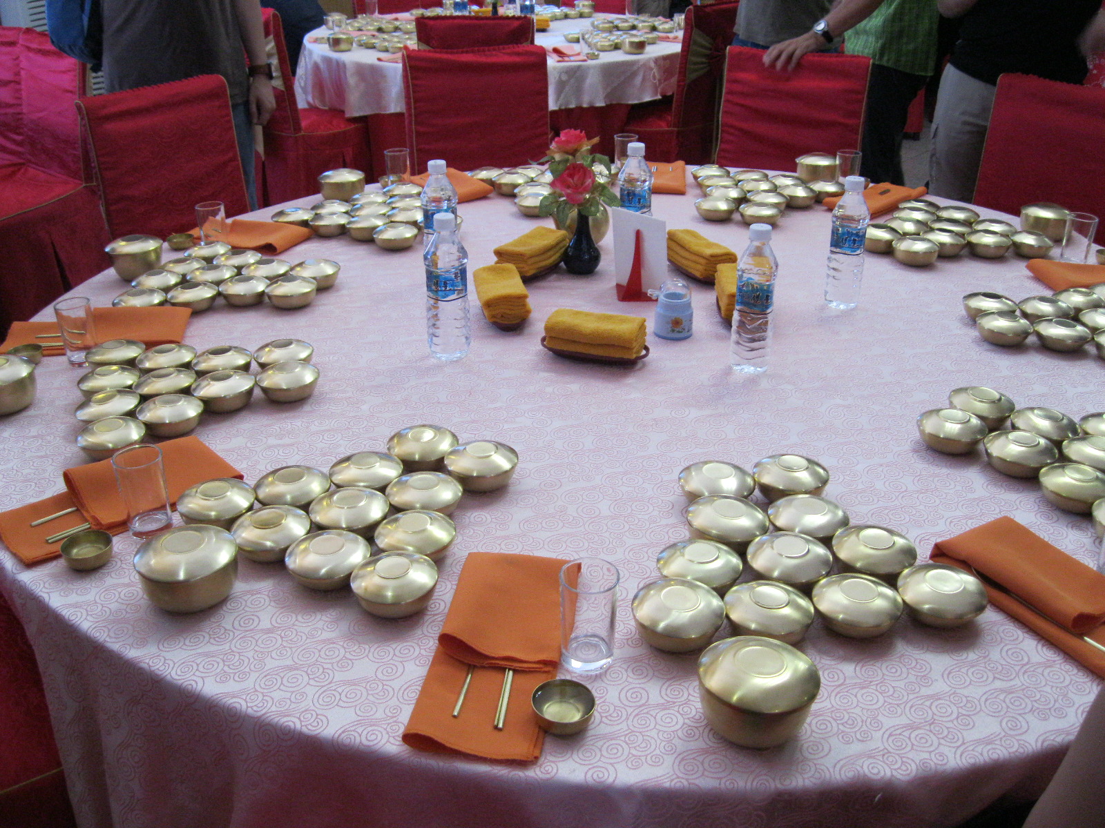 In Peking hebben we enkele uren tijd om ons voor te bereiden op de treinreis richting Noord-Korea. De trein vertrok rond 6u 's avonds. De volgende ochtend komen we aan in Dandong, een Chinese stad die grenst aan Noord-Korea.Het station van PekingDe slaapcabineHet restaurant op de trein. Een deel van het treinpersoneel was er al aan het eten. Ik besloot dan ook maar iets te eten. "Can I have a knife and fork?". "No sowwy". En de chinezen maar lachen.Op dag 3 arriveren we in Dandong, waar we een ontbijt krijgen. De rest van de treinreis wordt verdergezet op een andere trein richting de Noord-Koreaanse hoofdstad Pyongyang.Aankomst in DandongDandongIn de trein over de China-Noord-Korea Vriendschapsbrug. De Yalu rivier die we oversteken maakt een groot deel uit van de grens tussen China en Noord-Korea.Parallel loopt nog een brug, maar deze werd grotendeels vernield tijdens de Koreaanse oorlog.Links: Noord-Korea Rechts: ChinaAl snel verschijnen de portretten van de (overleden) grote leiders Kim Il Sung (links) en Kim Jong Il (rechts). Die zien we overal in Noord-Korea.Langs het platteland zien we vooral rijstvelden.Openbare werkenOnze Nederlandse reisbegeleider Jan is zeer fier op zijn Noord-Koreaanse badge. Deze badges worden door bijna alle Noord-Koreanen gedragen. Als buitenlander kan je deze badge enkel uitgereikt krijgen als je je loyaliteit bewezen hebt.In onze wagon zitten ook enkele Chinese toeristen. De meeste toeristen in Noord-Korea zijn Chinezen.Bij een tussenstop worden we gecontroleerd door Noord-Koreaanse militairen. Alle fototoestellen en telefoons worden geregistreerd, boeken en magazines worden nagekeken. Bagages worden slechts steekproefsgewijs doorgelicht. Onze paspoorten worden ook in beslag genomen. Die krijgen we pas terug op het einde van de reis.De rijstvelden zijn meestal in rechthoekige stukken ingedeeld, met bonenplanten om ze te scheiden.Tegen de avond rijden we Pyongyang binnen. Het volledige treintraject van Peking tot Pyongyang is 1371km lang en deden we ongeveer 24u over.Op dag 4 rijden we met de bus naar de industriestad Hamhung (함흥시). Hier bezoeken we oa. een fabriek van kunstmeststof.Het Yanggakdo International Hotel in Pyongyang waar we deze eerste nacht verbleven. Later keren we hier nog terug.Een tussenstop aan een meer langs het bergachtige landschap.Simon en ikDe bus waar we heel de reis mee rondtrokkenEen fotostop langs het bergachtige landschapDe gidsen vermelden dat zowat driekwart van het land bergen zijn. Omdat de Noord-Koreanen er naar streven om volledig zelfvoorzienend te zijn, wordt bijna alle vlakke grond gebruikt voor landbouw.Aan de linkerkant zie je onze Koreaanse gidsen. Meestal spreken Koreanen elkaar aan met hun volledige naam, maar gemakkelijkheidshalve mochten wij ze aanspreken als miss Kim (links) en miss Ha (rechts).Even dalen we af om een waterval te bezoeken. We picknicken hier in de buurt.De waterval zou in 2001 ontdekt zijn door Kim Jong Il, dankzij zijn fantastisch gehoor.BronwaterDit was een van de weinige maaltijden die ik volledig op kreeg. Op de bus krijgen we dan te horen dat de lunchschotels achtergelaten werden voor kinderen die de overschot zouden eten...De meeste wegen bestaan uit betonplaten.Een propagandabord langs de wegWe komen aan in Hamhung, de tweede grootste stad van Noord-Korea (~ 800.000 inwoners). We rijden hier voorbij een van de talrijke mozaïeken die we te zien zullen krijgen. Links: Kim Il Sung Midden: Kim Jong Il Rechts: Kim Jong Suk (de eerste vrouw van Kim Il Sung)Hamhung is nog maar enkele jaren "open" voor toeristen.Een fabriek van kunstmeststofBij elke bezienswaardigheid krijgen we te horen hoe vaak en wanneer juist de grote leiders die plaats bezocht hebben. Vaak zijn er mozaïeken die hun bezoek afbeelden.Binnen in de fabriekEr zijn maar weinig fabriekswerkers aanwezig, maar ze poseren wel graag voor een foto.'s avonds verblijven we in het Majon Tourist Resort aan de Oost-Koreaanse zee. Hier nemen we een frisse duik in het water.De huisjes waar we verblijven zijn vlak aan het strand.Onze zwembroeken buiten gehangen, maar echt droog werden ze niet door het vochtige klimaat.Het avondmaal. Zoals gewoonlijk werden er nog voortdurend bordjes bij gezet. Als je al vol zit krijg je dan nog een kom rijst en soep.'s middags en 's avonds was er als drank meestal plat water en bier, met de mogelijkheid om "juice" te drinken in plaats van bier. Dat was een soort appel/peren sap (niet op de foto).Onze kamerHier was geen stromend water, en diende het bad als waterreservoir. Wassen moest "op z'n Bangladesh" door een teiltje water over je gieten. In de rode emmer kon water elektrisch verwarmd worden.Op dag 5 bezoeken we nog enkele plaatsen in Hamhung, en vertrekken dan richting Mt. Kumgang. Onderweg bezoeken we oa. nog de kuststad Wonsan.Het huis van de voormalige koning Taejo van Joseon in Hamhung. Hij richtte de Koreaanse Joseondynastie op in 1392, die eindigde in 1897.Een zeer oude boomBuiten het huis stond een groep Koreaanse studenten te wachten.Een aangelegde (niet natuurlijke) heuvel met grote bronzen beelden van de leidersDe lokale gids die ons een woordje uitleg gaf. De plaatselijke gidsen spraken meestal Koreaans, dat dan naar Engels vertaald werd door onze gids miss Kim.Hamhung Grand TheatreWonsanDit verkeersbord leek met de hand geschilderd te zijn.Bezoek aan een de Chonsam coöperatieve boerderijEen persimmon boomOok de grote leiders zijn hier geweest.In het winkeltje van de boerderij kochten we enkele gedroogde persimmons.Naast de boerderij was er een kleuterschool. De kinderen zongen een liedje en wuifden ons dan uit.Iets verderop bezoeken we nog het huis van de boerin die ons begeleidde.Dit huis heeft een soort vloerverwarming die hier vaak toegepast zou worden. Op internet vond ik dit systeem terug als "Ondol".Wat voor een decoder is dat onder de TV? Telenet of Belgacom?Ten slotte bezochten we nog een boeddhistische tempel...Maar bij de tempel zelf mochten we niet komen, omdat er constructi