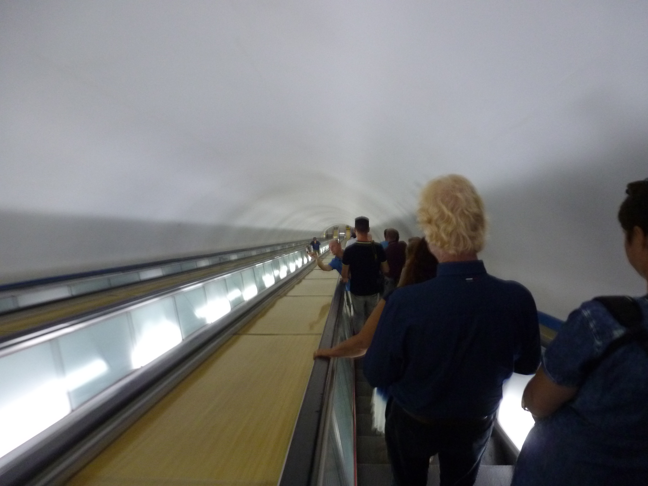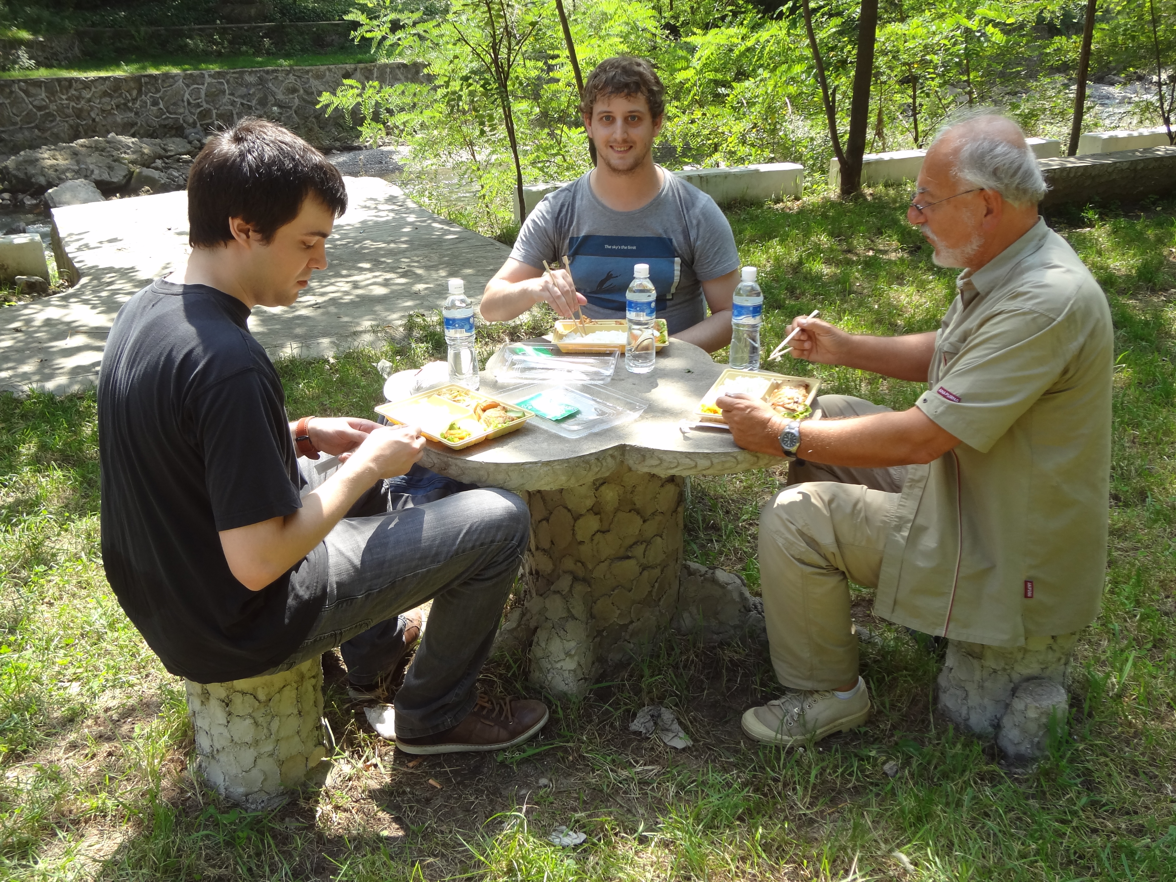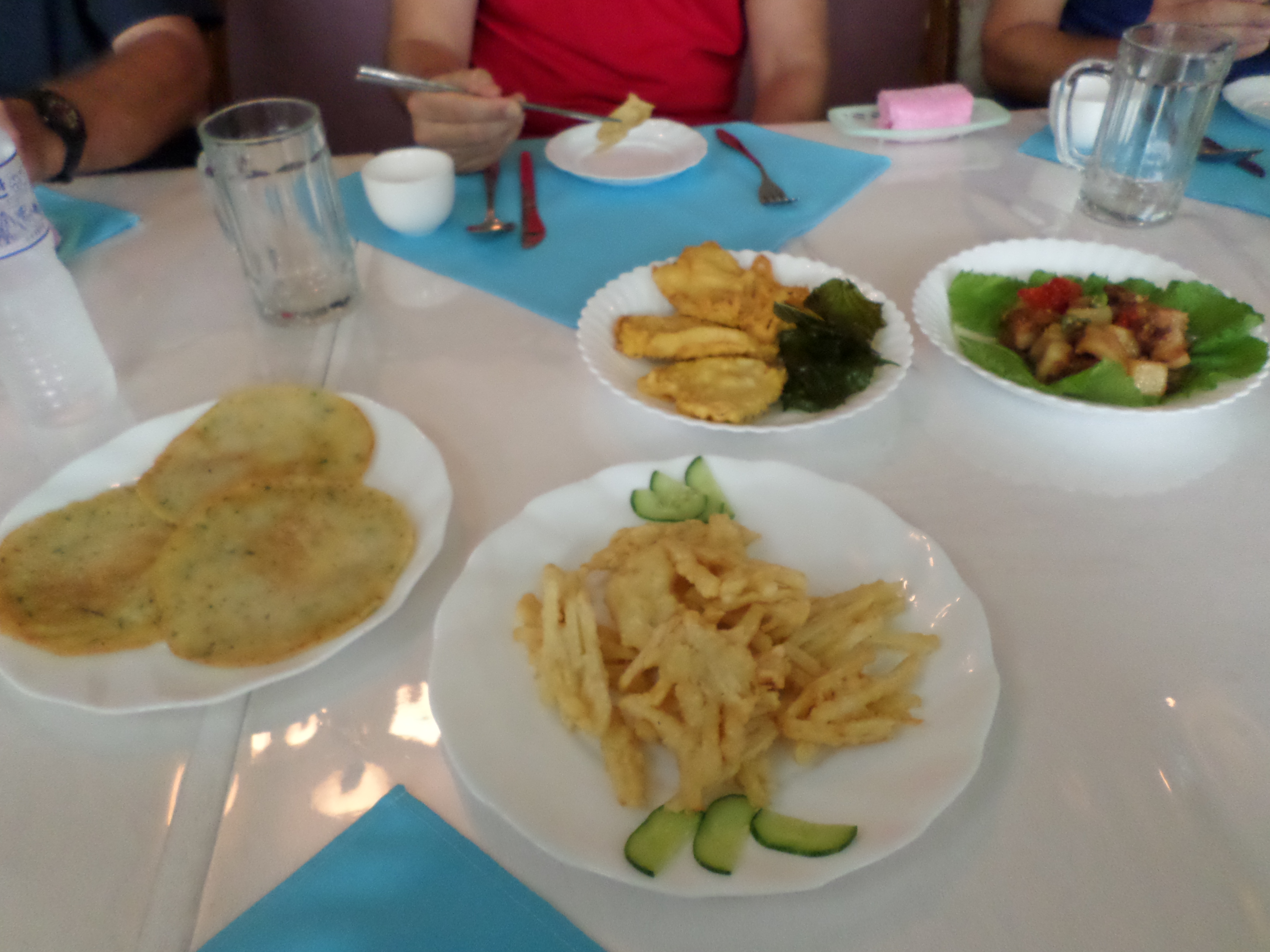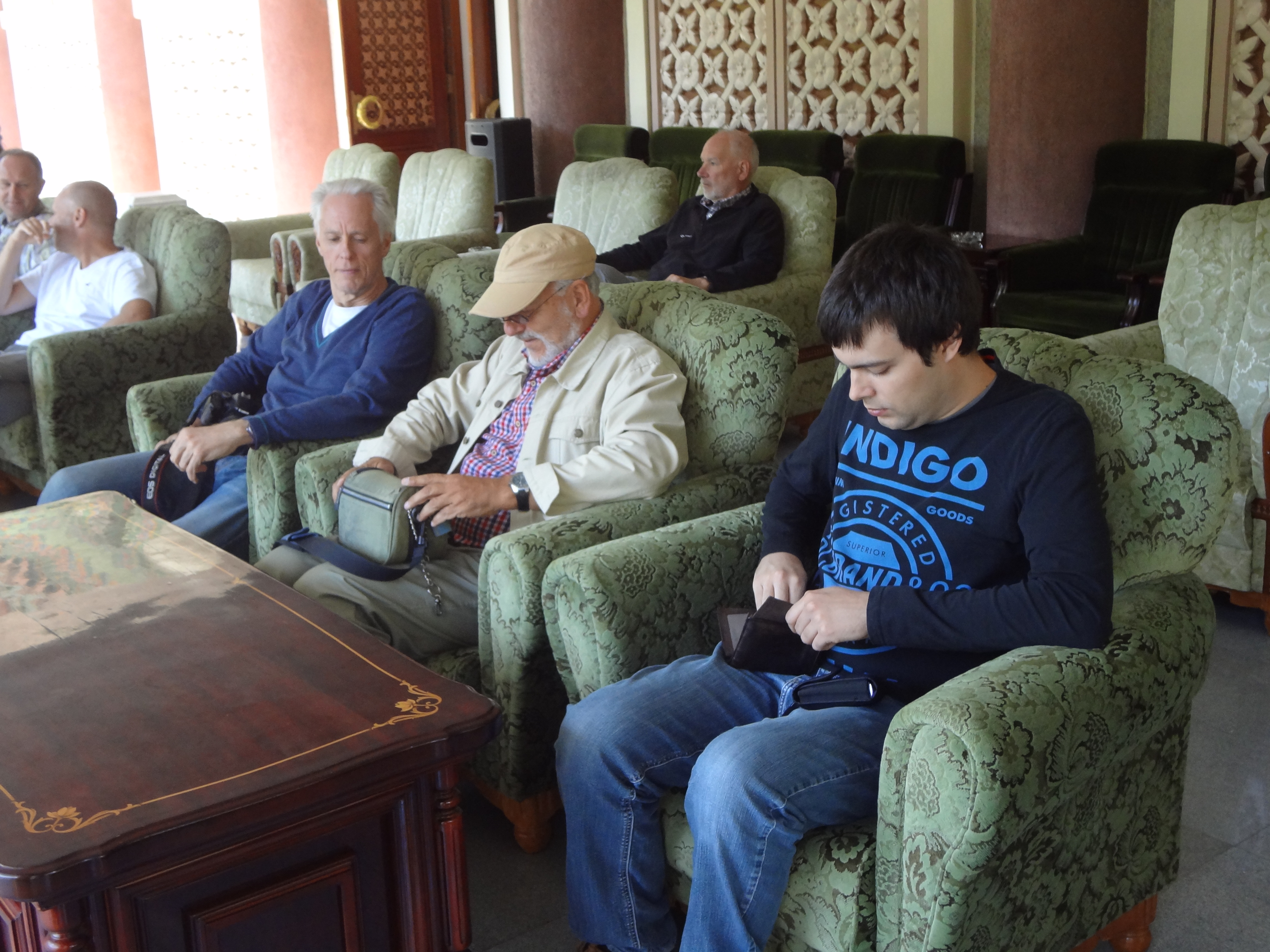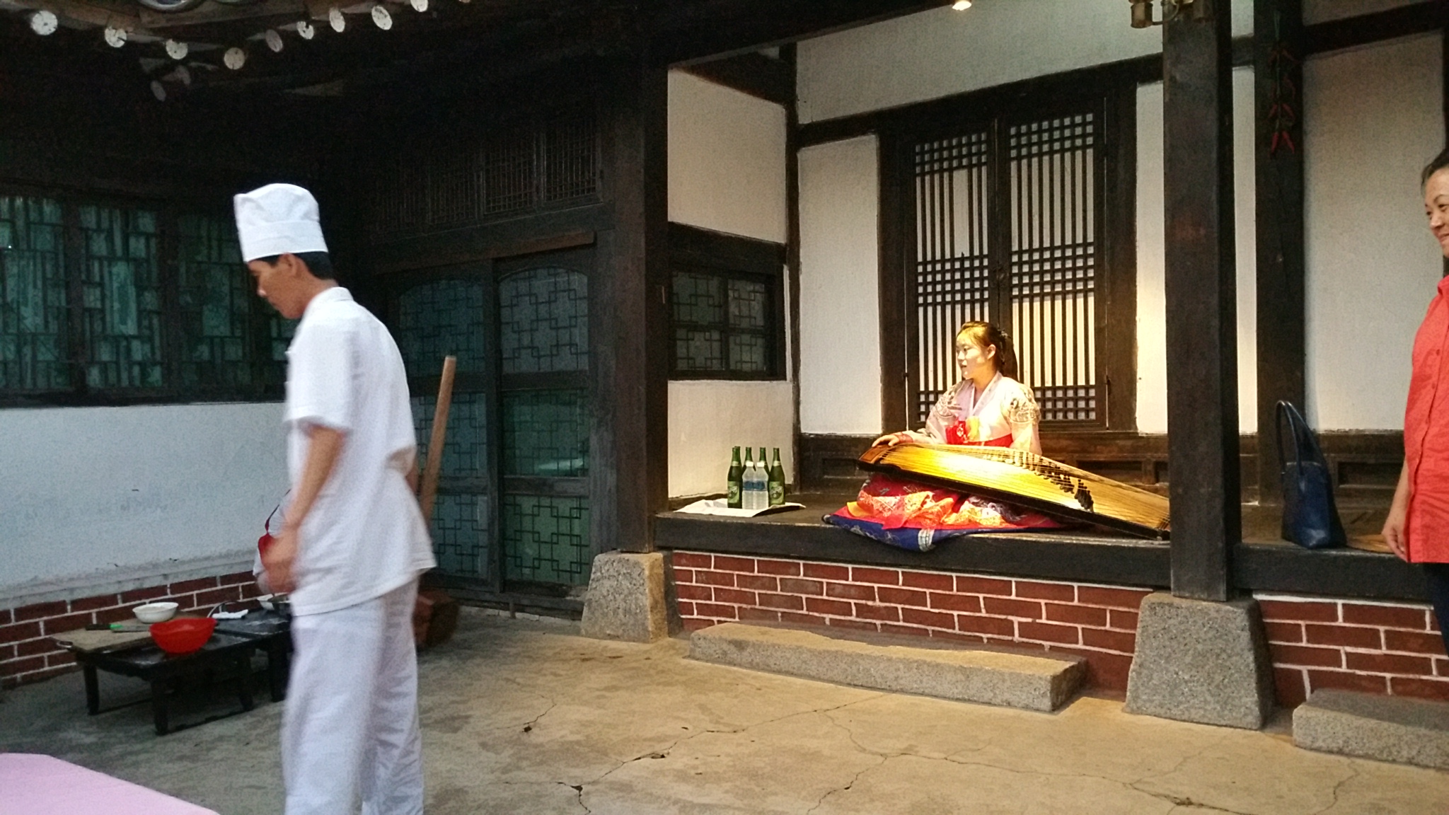 In Peking hebben we enkele uren tijd om ons voor te bereiden op de treinreis richting Noord-Korea. De trein vertrok rond 6u 's avonds. De volgende ochtend komen we aan in Dandong, een Chinese stad die grenst aan Noord-Korea.Het station van PekingDe slaapcabineHet restaurant op de trein. Een deel van het treinpersoneel was er al aan het eten. Ik besloot dan ook maar iets te eten. "Can I have a knife and fork?". "No sowwy". En de chinezen maar lachen.Op dag 3 arriveren we in Dandong, waar we een ontbijt krijgen. De rest van de treinreis wordt verdergezet op een andere trein richting de Noord-Koreaanse hoofdstad Pyongyang.Aankomst in DandongDandongIn de trein over de China-Noord-Korea Vriendschapsbrug. De Yalu rivier die we oversteken maakt een groot deel uit van de grens tussen China en Noord-Korea.Parallel loopt nog een brug, maar deze werd grotendeels vernield tijdens de Koreaanse oorlog.Links: Noord-Korea Rechts: ChinaAl snel verschijnen de portretten van de (overleden) grote leiders Kim Il Sung (links) en Kim Jong Il (rechts). Die zien we overal in Noord-Korea.Langs het platteland zien we vooral rijstvelden.Openbare werkenOnze Nederlandse reisbegeleider Jan is zeer fier op zijn Noord-Koreaanse badge. Deze badges worden door bijna alle Noord-Koreanen gedragen. Als buitenlander kan je deze badge enkel uitgereikt krijgen als je je loyaliteit bewezen hebt.In onze wagon zitten ook enkele Chinese toeristen. De meeste toeristen in Noord-Korea zijn Chinezen.Bij een tussenstop worden we gecontroleerd door Noord-Koreaanse militairen. Alle fototoestellen en telefoons worden geregistreerd, boeken en magazines worden nagekeken. Bagages worden slechts steekproefsgewijs doorgelicht. Onze paspoorten worden ook in beslag genomen. Die krijgen we pas terug op het einde van de reis.De rijstvelden zijn meestal in rechthoekige stukken ingedeeld, met bonenplanten om ze te scheiden.Tegen de avond rijden we Pyongyang binnen. Het volledige treintraject van Peking tot Pyongyang is 1371km lang en deden we ongeveer 24u over.Op dag 4 rijden we met de bus naar de industriestad Hamhung (함흥시). Hier bezoeken we oa. een fabriek van kunstmeststof.Het Yanggakdo International Hotel in Pyongyang waar we deze eerste nacht verbleven. Later keren we hier nog terug.Een tussenstop aan een meer langs het bergachtige landschap.Simon en ikDe bus waar we heel de reis mee rondtrokkenEen fotostop langs het bergachtige landschapDe gidsen vermelden dat zowat driekwart van het land bergen zijn. Omdat de Noord-Koreanen er naar streven om volledig zelfvoorzienend te zijn, wordt bijna alle vlakke grond gebruikt voor landbouw.Aan de linkerkant zie je onze Koreaanse gidsen. Meestal spreken Koreanen elkaar aan met hun volledige naam, maar gemakkelijkheidshalve mochten wij ze aanspreken als miss Kim (links) en miss Ha (rechts).Even dalen we af om een waterval te bezoeken. We picknicken hier in de buurt.De waterval zou in 2001 ontdekt zijn door Kim Jong Il, dankzij zijn fantastisch gehoor.BronwaterDit was een van de weinige maaltijden die ik volledig op kreeg. Op de bus krijgen we dan te horen dat de lunchschotels achtergelaten werden voor kinderen die de overschot zouden eten...De meeste wegen bestaan uit betonplaten.Een propagandabord langs de wegWe komen aan in Hamhung, de tweede grootste stad van Noord-Korea (~ 800.000 inwoners). We rijden hier voorbij een van de talrijke mozaïeken die we te zien zullen krijgen. Links: Kim Il Sung Midden: Kim Jong Il Rechts: Kim Jong Suk (de eerste vrouw van Kim Il Sung)Hamhung is nog maar enkele jaren "open" voor toeristen.Een fabriek van kunstmeststofBij elke bezienswaardigheid krijgen we te horen hoe vaak en wanneer juist de grote leiders die plaats bezocht hebben. Vaak zijn er mozaïeken die hun bezoek afbeelden.Binnen in de fabriekEr zijn maar weinig fabriekswerkers aanwezig, maar ze poseren wel graag voor een foto.'s avonds verblijven we in het Majon Tourist Resort aan de Oost-Koreaanse zee. Hier nemen we een frisse duik in het water.De huisjes waar we verblijven zijn vlak aan het strand.Onze zwembroeken buiten gehangen, maar echt droog werden ze niet door het vochtige klimaat.Het avondmaal. Zoals gewoonlijk werden er nog voortdurend bordjes bij gezet. Als je al vol zit krijg je dan nog een kom rijst en soep.'s middags en 's avonds was er als drank meestal plat water en bier, met de mogelijkheid om "juice" te drinken in plaats van bier. Dat was een soort appel/peren sap (niet op de foto).Onze kamerHier was geen stromend water, en diende het bad als waterreservoir. Wassen moest "op z'n Bangladesh" door een teiltje water over je gieten. In de rode emmer kon water elektrisch verwarmd worden.Op dag 5 bezoeken we nog enkele plaatsen in Hamhung, en vertrekken dan richting Mt. Kumgang. Onderweg bezoeken we oa. nog de kuststad Wonsan.Het huis van de voormalige koning Taejo van Joseon in Hamhung. Hij richtte de Koreaanse Joseondynastie op in 1392, die eindigde in 1897.Een zeer oude boomBuiten het huis stond een groep Koreaanse studenten te wachten.Een aangelegde (niet natuurlijke) heuvel met grote bronzen beelden van de leidersDe lokale gids die ons een woordje uitleg gaf. De plaatselijke gidsen spraken meestal Koreaans, dat dan naar Engels vertaald werd door onze gids miss Kim.Hamhung Grand TheatreWonsanDit verkeersbord leek met de hand geschilderd te zijn.Bezoek aan een de Chonsam coöperatieve boerderijEen persimmon boomOok de grote leiders zijn hier geweest.In het winkeltje van de boerderij kochten we enkele gedroogde persimmons.Naast de boerderij was er een kleuterschool. De kinderen zongen een liedje en wuifden ons dan uit.Iets verderop bezoeken we nog het huis van de boerin die ons begeleidde.Dit huis heeft een soort vloerverwarming die hier vaak toegepast zou worden. Op internet vond ik dit systeem terug als "Ondol".Wat voor een decoder is dat onder de TV? Telenet of Belgacom?Ten slotte bezochten we nog een boeddhistische tempel...Maar bij de tempel zelf mochten we niet komen, omdat er constructi