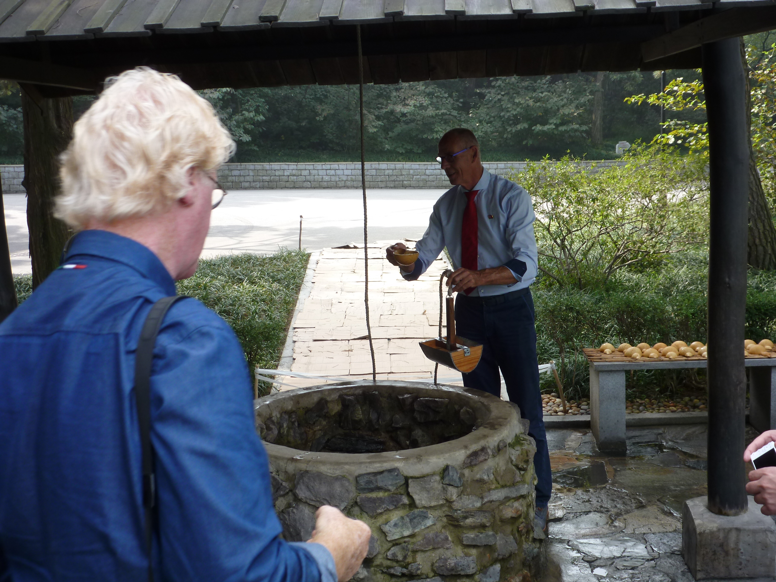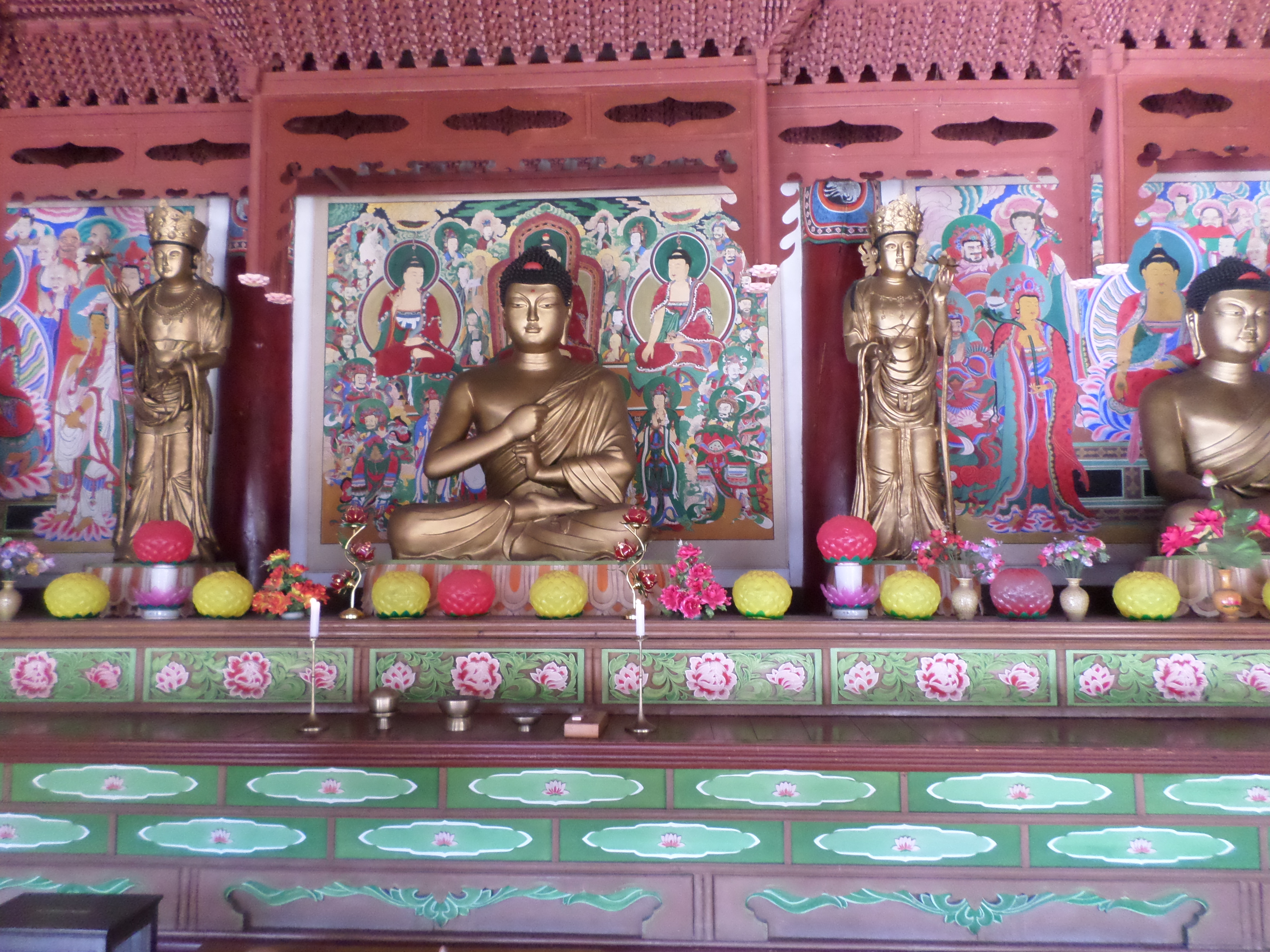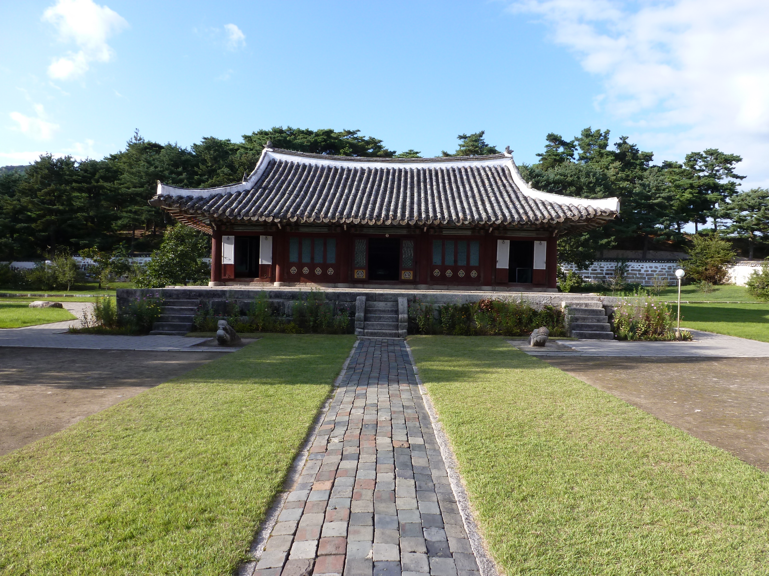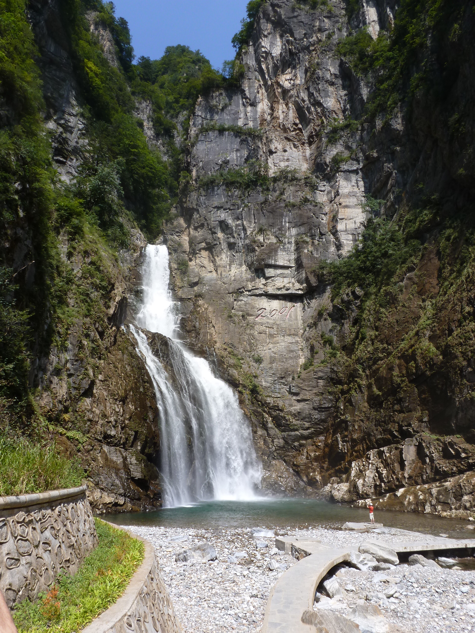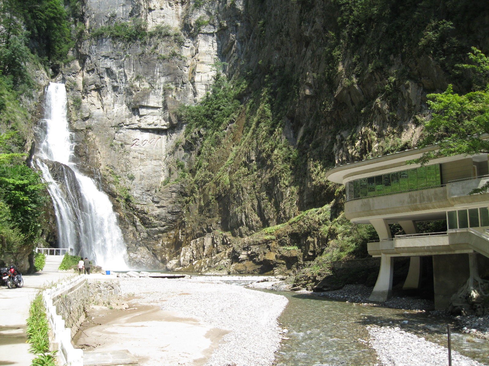 In Peking hebben we enkele uren tijd om ons voor te bereiden op de treinreis richting Noord-Korea. De trein vertrok rond 6u 's avonds. De volgende ochtend komen we aan in Dandong, een Chinese stad die grenst aan Noord-Korea.Het station van PekingDe slaapcabineHet restaurant op de trein. Een deel van het treinpersoneel was er al aan het eten. Ik besloot dan ook maar iets te eten. "Can I have a knife and fork?". "No sowwy". En de chinezen maar lachen.Op dag 3 arriveren we in Dandong, waar we een ontbijt krijgen. De rest van de treinreis wordt verdergezet op een andere trein richting de Noord-Koreaanse hoofdstad Pyongyang.Aankomst in DandongDandongIn de trein over de China-Noord-Korea Vriendschapsbrug. De Yalu rivier die we oversteken maakt een groot deel uit van de grens tussen China en Noord-Korea.Parallel loopt nog een brug, maar deze werd grotendeels vernield tijdens de Koreaanse oorlog.Links: Noord-Korea Rechts: ChinaAl snel verschijnen de portretten van de (overleden) grote leiders Kim Il Sung (links) en Kim Jong Il (rechts). Die zien we overal in Noord-Korea.Langs het platteland zien we vooral rijstvelden.Openbare werkenOnze Nederlandse reisbegeleider Jan is zeer fier op zijn Noord-Koreaanse badge. Deze badges worden door bijna alle Noord-Koreanen gedragen. Als buitenlander kan je deze badge enkel uitgereikt krijgen als je je loyaliteit bewezen hebt.In onze wagon zitten ook enkele Chinese toeristen. De meeste toeristen in Noord-Korea zijn Chinezen.Bij een tussenstop worden we gecontroleerd door Noord-Koreaanse militairen. Alle fototoestellen en telefoons worden geregistreerd, boeken en magazines worden nagekeken. Bagages worden slechts steekproefsgewijs doorgelicht. Onze paspoorten worden ook in beslag genomen. Die krijgen we pas terug op het einde van de reis.De rijstvelden zijn meestal in rechthoekige stukken ingedeeld, met bonenplanten om ze te scheiden.Tegen de avond rijden we Pyongyang binnen. Het volledige treintraject van Peking tot Pyongyang is 1371km lang en deden we ongeveer 24u over.Op dag 4 rijden we met de bus naar de industriestad Hamhung (함흥시). Hier bezoeken we oa. een fabriek van kunstmeststof.Het Yanggakdo International Hotel in Pyongyang waar we deze eerste nacht verbleven. Later keren we hier nog terug.Een tussenstop aan een meer langs het bergachtige landschap.Simon en ikDe bus waar we heel de reis mee rondtrokkenEen fotostop langs het bergachtige landschapDe gidsen vermelden dat zowat driekwart van het land bergen zijn. Omdat de Noord-Koreanen er naar streven om volledig zelfvoorzienend te zijn, wordt bijna alle vlakke grond gebruikt voor landbouw.Aan de linkerkant zie je onze Koreaanse gidsen. Meestal spreken Koreanen elkaar aan met hun volledige naam, maar gemakkelijkheidshalve mochten wij ze aanspreken als miss Kim (links) en miss Ha (rechts).Even dalen we af om een waterval te bezoeken. We picknicken hier in de buurt.De waterval zou in 2001 ontdekt zijn door Kim Jong Il, dankzij zijn fantastisch gehoor.BronwaterDit was een van de weinige maaltijden die ik volledig op kreeg. Op de bus krijgen we dan te horen dat de lunchschotels achtergelaten werden voor kinderen die de overschot zouden eten...De meeste wegen bestaan uit betonplaten.Een propagandabord langs de wegWe komen aan in Hamhung, de tweede grootste stad van Noord-Korea (~ 800.000 inwoners). We rijden hier voorbij een van de talrijke mozaïeken die we te zien zullen krijgen. Links: Kim Il Sung Midden: Kim Jong Il Rechts: Kim Jong Suk (de eerste vrouw van Kim Il Sung)Hamhung is nog maar enkele jaren "open" voor toeristen.Een fabriek van kunstmeststofBij elke bezienswaardigheid krijgen we te horen hoe vaak en wanneer juist de grote leiders die plaats bezocht hebben. Vaak zijn er mozaïeken die hun bezoek afbeelden.Binnen in de fabriekEr zijn maar weinig fabriekswerkers aanwezig, maar ze poseren wel graag voor een foto.'s avonds verblijven we in het Majon Tourist Resort aan de Oost-Koreaanse zee. Hier nemen we een frisse duik in het water.De huisjes waar we verblijven zijn vlak aan het strand.Onze zwembroeken buiten gehangen, maar echt droog werden ze niet door het vochtige klimaat.Het avondmaal. Zoals gewoonlijk werden er nog voortdurend bordjes bij gezet. Als je al vol zit krijg je dan nog een kom rijst en soep.'s middags en 's avonds was er als drank meestal plat water en bier, met de mogelijkheid om "juice" te drinken in plaats van bier. Dat was een soort appel/peren sap (niet op de foto).Onze kamerHier was geen stromend water, en diende het bad als waterreservoir. Wassen moest "op z'n Bangladesh" door een teiltje water over je gieten. In de rode emmer kon water elektrisch verwarmd worden.Op dag 5 bezoeken we nog enkele plaatsen in Hamhung, en vertrekken dan richting Mt. Kumgang. Onderweg bezoeken we oa. nog de kuststad Wonsan.Het huis van de voormalige koning Taejo van Joseon in Hamhung. Hij richtte de Koreaanse Joseondynastie op in 1392, die eindigde in 1897.Een zeer oude boomBuiten het huis stond een groep Koreaanse studenten te wachten.Een aangelegde (niet natuurlijke) heuvel met grote bronzen beelden van de leidersDe lokale gids die ons een woordje uitleg gaf. De plaatselijke gidsen spraken meestal Koreaans, dat dan naar Engels vertaald werd door onze gids miss Kim.Hamhung Grand TheatreWonsanDit verkeersbord leek met de hand geschilderd te zijn.Bezoek aan een de Chonsam coöperatieve boerderijEen persimmon boomOok de grote leiders zijn hier geweest.In het winkeltje van de boerderij kochten we enkele gedroogde persimmons.Naast de boerderij was er een kleuterschool. De kinderen zongen een liedje en wuifden ons dan uit.Iets verderop bezoeken we nog het huis van de boerin die ons begeleidde.Dit huis heeft een soort vloerverwarming die hier vaak toegepast zou worden. Op internet vond ik dit systeem terug als "Ondol".Wat voor een decoder is dat onder de TV? Telenet of Belgacom?Ten slotte bezochten we nog een boeddhistische tempel...Maar bij de tempel zelf mochten we niet komen, omdat er constructi