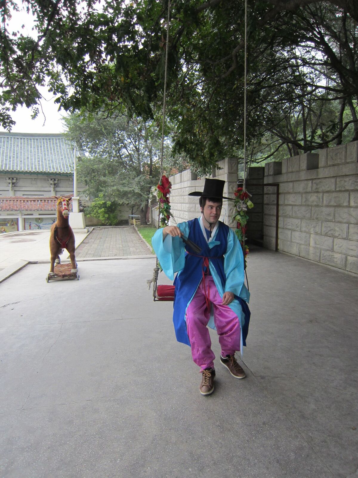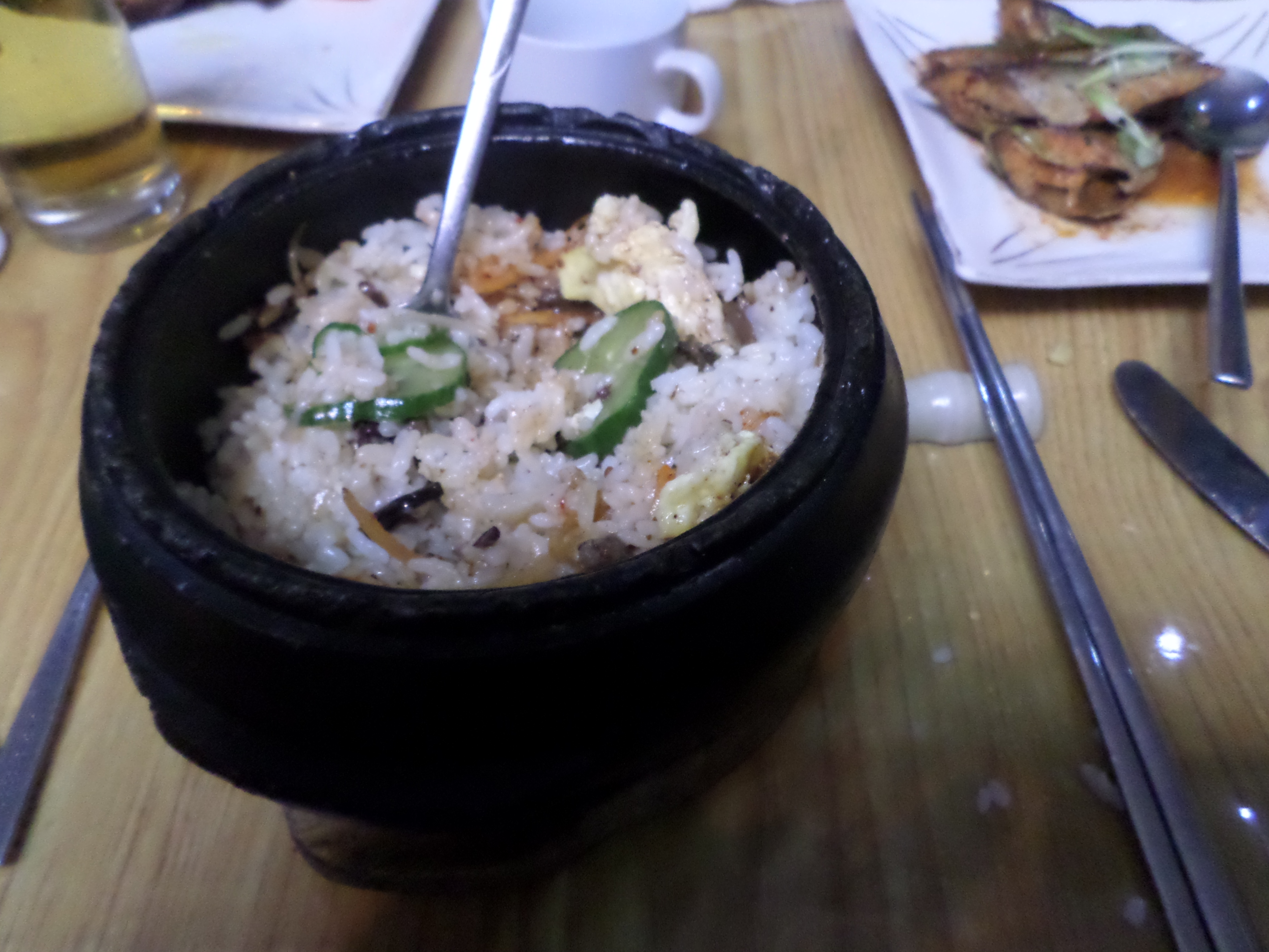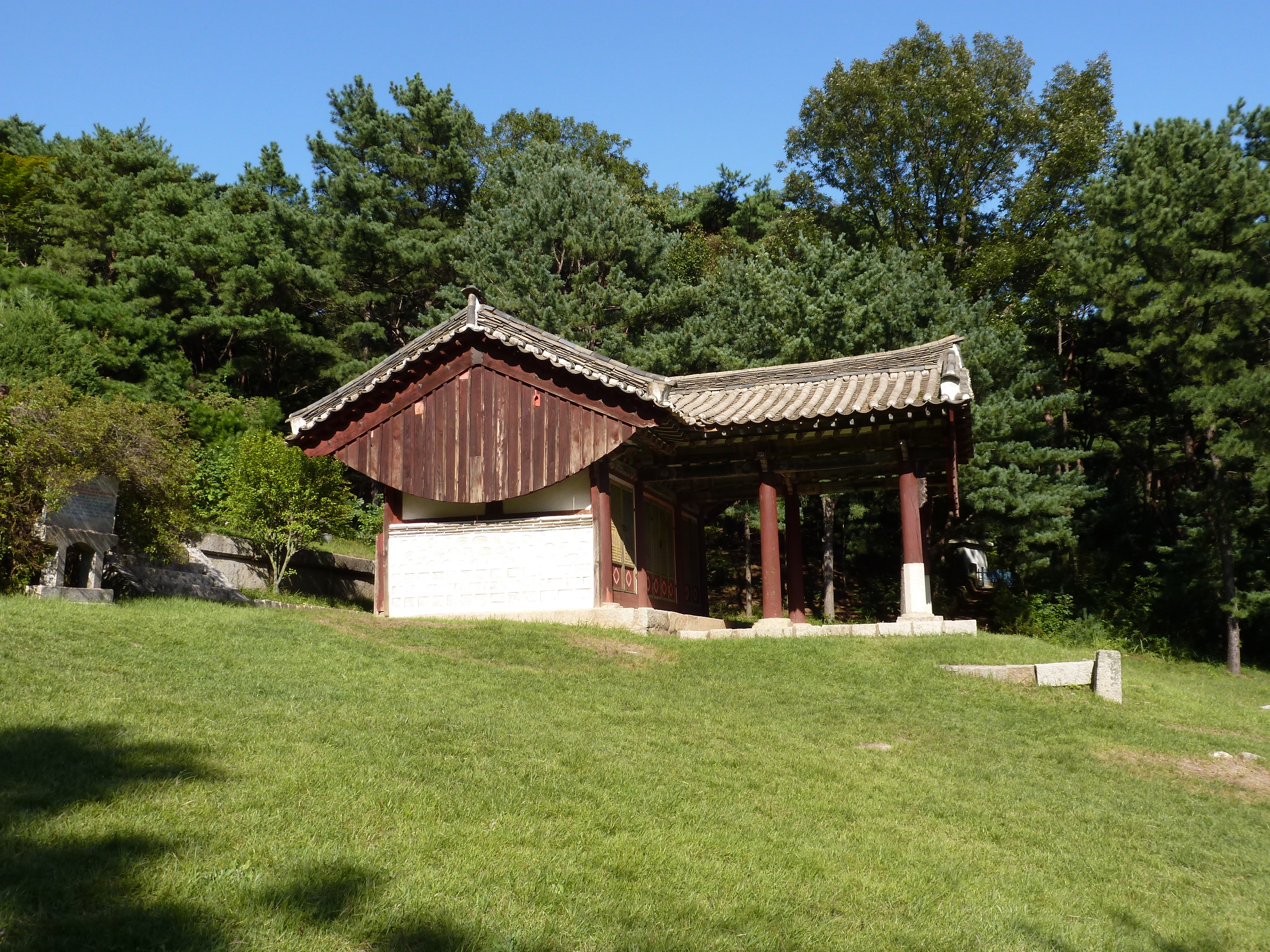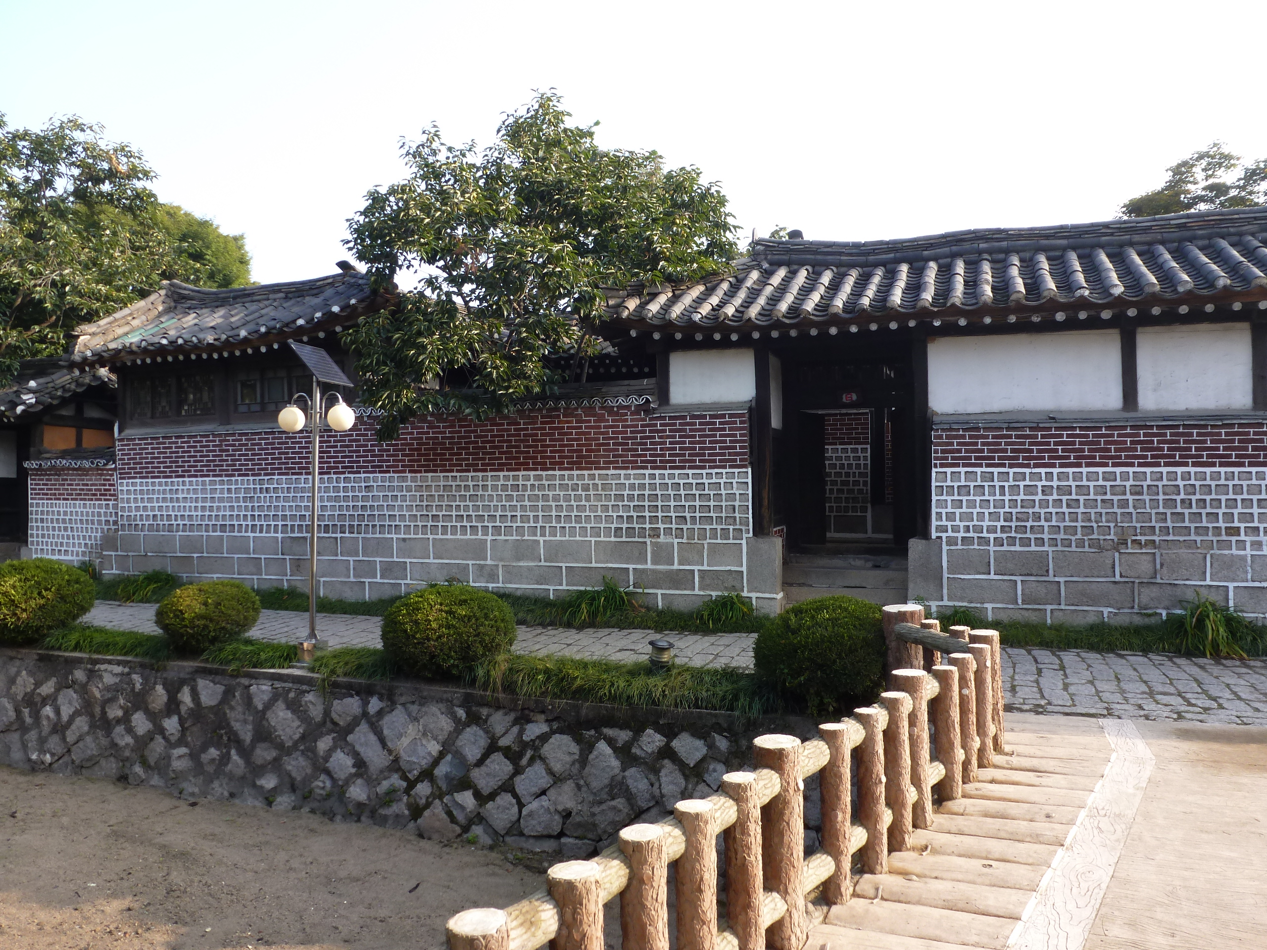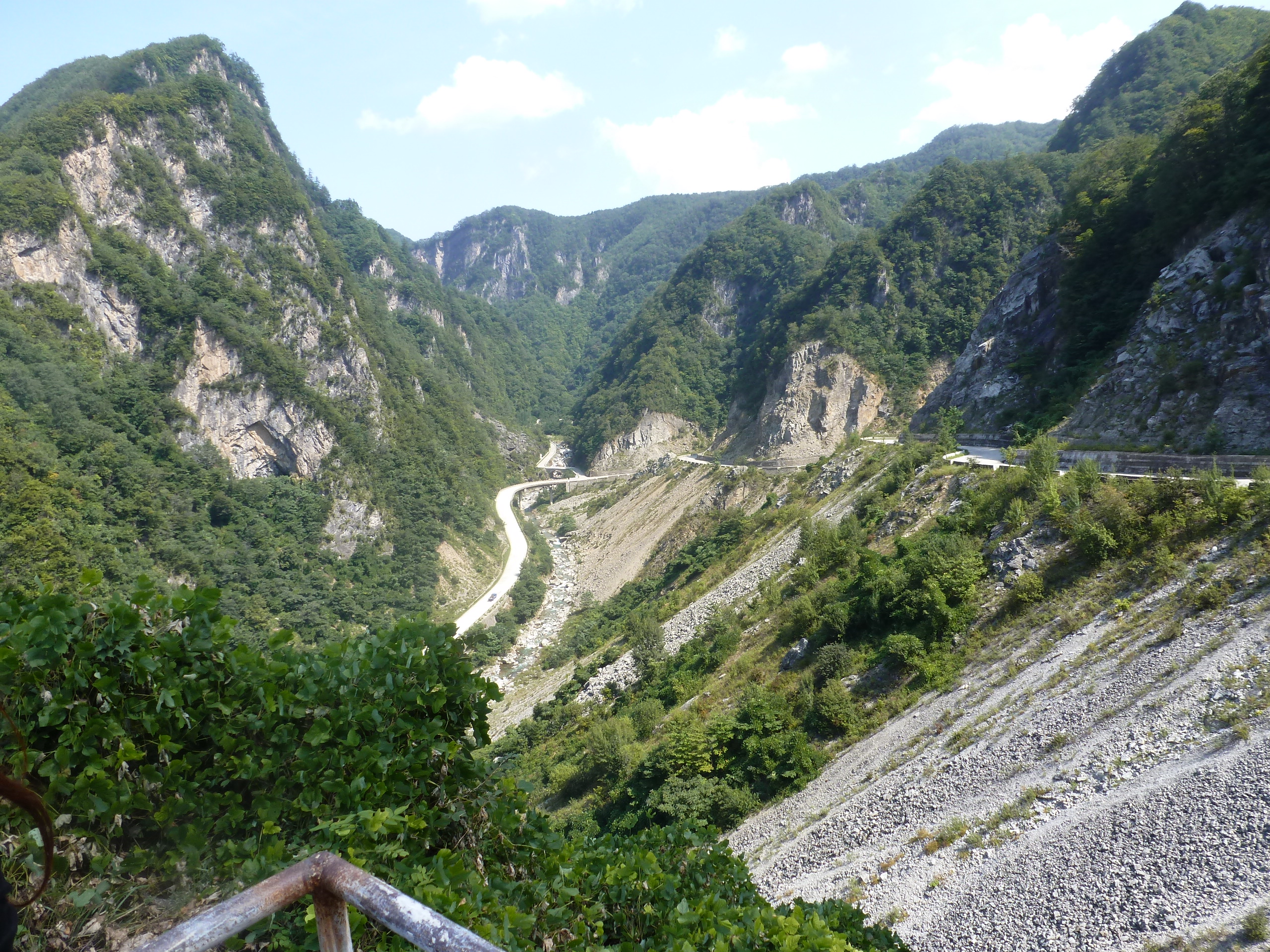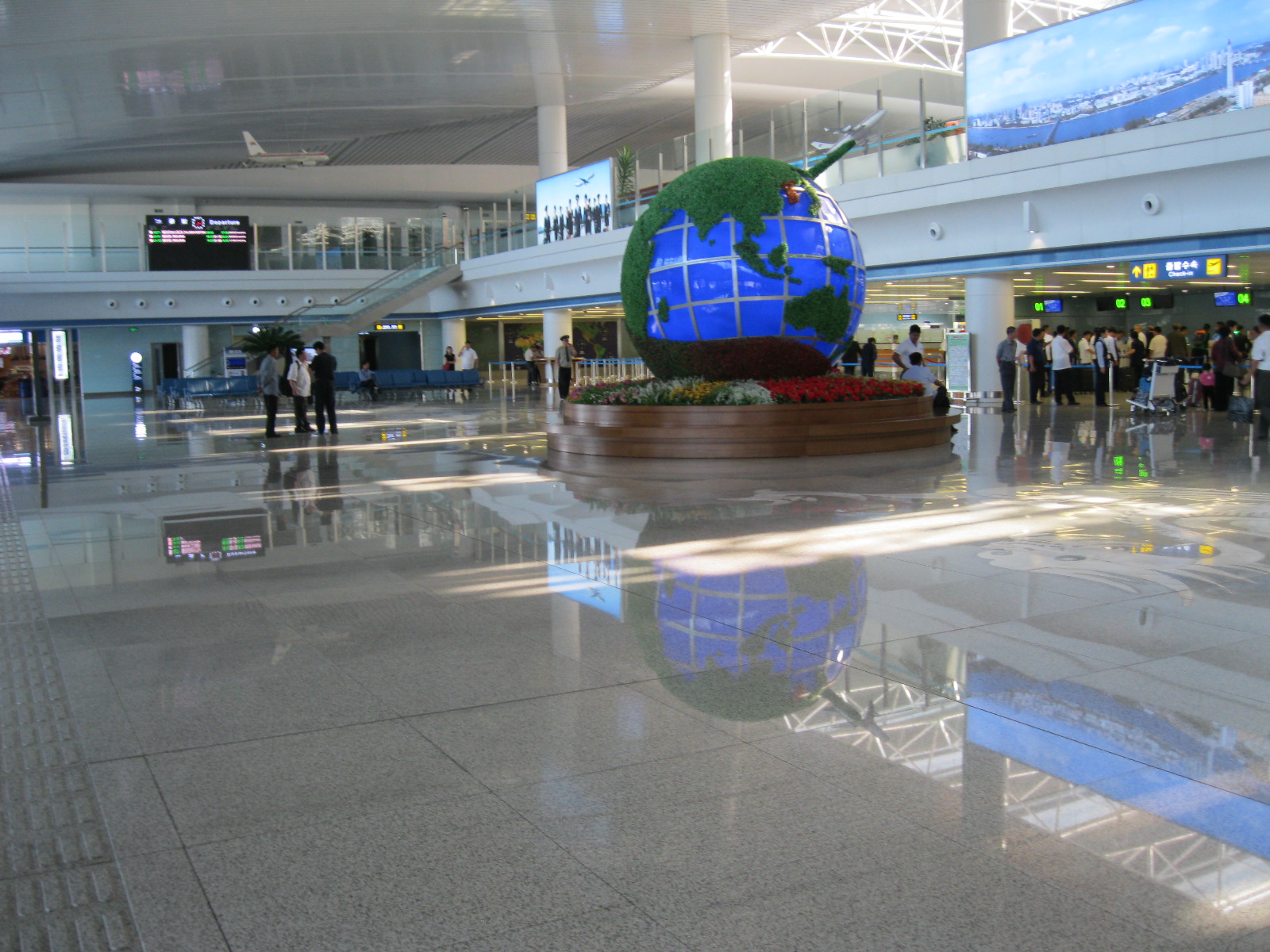 In Peking hebben we enkele uren tijd om ons voor te bereiden op de treinreis richting Noord-Korea. De trein vertrok rond 6u 's avonds. De volgende ochtend komen we aan in Dandong, een Chinese stad die grenst aan Noord-Korea.Het station van PekingDe slaapcabineHet restaurant op de trein. Een deel van het treinpersoneel was er al aan het eten. Ik besloot dan ook maar iets te eten. "Can I have a knife and fork?". "No sowwy". En de chinezen maar lachen.Op dag 3 arriveren we in Dandong, waar we een ontbijt krijgen. De rest van de treinreis wordt verdergezet op een andere trein richting de Noord-Koreaanse hoofdstad Pyongyang.Aankomst in DandongDandongIn de trein over de China-Noord-Korea Vriendschapsbrug. De Yalu rivier die we oversteken maakt een groot deel uit van de grens tussen China en Noord-Korea.Parallel loopt nog een brug, maar deze werd grotendeels vernield tijdens de Koreaanse oorlog.Links: Noord-Korea Rechts: ChinaAl snel verschijnen de portretten van de (overleden) grote leiders Kim Il Sung (links) en Kim Jong Il (rechts). Die zien we overal in Noord-Korea.Langs het platteland zien we vooral rijstvelden.Openbare werkenOnze Nederlandse reisbegeleider Jan is zeer fier op zijn Noord-Koreaanse badge. Deze badges worden door bijna alle Noord-Koreanen gedragen. Als buitenlander kan je deze badge enkel uitgereikt krijgen als je je loyaliteit bewezen hebt.In onze wagon zitten ook enkele Chinese toeristen. De meeste toeristen in Noord-Korea zijn Chinezen.Bij een tussenstop worden we gecontroleerd door Noord-Koreaanse militairen. Alle fototoestellen en telefoons worden geregistreerd, boeken en magazines worden nagekeken. Bagages worden slechts steekproefsgewijs doorgelicht. Onze paspoorten worden ook in beslag genomen. Die krijgen we pas terug op het einde van de reis.De rijstvelden zijn meestal in rechthoekige stukken ingedeeld, met bonenplanten om ze te scheiden.Tegen de avond rijden we Pyongyang binnen. Het volledige treintraject van Peking tot Pyongyang is 1371km lang en deden we ongeveer 24u over.Op dag 4 rijden we met de bus naar de industriestad Hamhung (함흥시). Hier bezoeken we oa. een fabriek van kunstmeststof.Het Yanggakdo International Hotel in Pyongyang waar we deze eerste nacht verbleven. Later keren we hier nog terug.Een tussenstop aan een meer langs het bergachtige landschap.Simon en ikDe bus waar we heel de reis mee rondtrokkenEen fotostop langs het bergachtige landschapDe gidsen vermelden dat zowat driekwart van het land bergen zijn. Omdat de Noord-Koreanen er naar streven om volledig zelfvoorzienend te zijn, wordt bijna alle vlakke grond gebruikt voor landbouw.Aan de linkerkant zie je onze Koreaanse gidsen. Meestal spreken Koreanen elkaar aan met hun volledige naam, maar gemakkelijkheidshalve mochten wij ze aanspreken als miss Kim (links) en miss Ha (rechts).Even dalen we af om een waterval te bezoeken. We picknicken hier in de buurt.De waterval zou in 2001 ontdekt zijn door Kim Jong Il, dankzij zijn fantastisch gehoor.BronwaterDit was een van de weinige maaltijden die ik volledig op kreeg. Op de bus krijgen we dan te horen dat de lunchschotels achtergelaten werden voor kinderen die de overschot zouden eten...De meeste wegen bestaan uit betonplaten.Een propagandabord langs de wegWe komen aan in Hamhung, de tweede grootste stad van Noord-Korea (~ 800.000 inwoners). We rijden hier voorbij een van de talrijke mozaïeken die we te zien zullen krijgen. Links: Kim Il Sung Midden: Kim Jong Il Rechts: Kim Jong Suk (de eerste vrouw van Kim Il Sung)Hamhung is nog maar enkele jaren "open" voor toeristen.Een fabriek van kunstmeststofBij elke bezienswaardigheid krijgen we te horen hoe vaak en wanneer juist de grote leiders die plaats bezocht hebben. Vaak zijn er mozaïeken die hun bezoek afbeelden.Binnen in de fabriekEr zijn maar weinig fabriekswerkers aanwezig, maar ze poseren wel graag voor een foto.'s avonds verblijven we in het Majon Tourist Resort aan de Oost-Koreaanse zee. Hier nemen we een frisse duik in het water.De huisjes waar we verblijven zijn vlak aan het strand.Onze zwembroeken buiten gehangen, maar echt droog werden ze niet door het vochtige klimaat.Het avondmaal. Zoals gewoonlijk werden er nog voortdurend bordjes bij gezet. Als je al vol zit krijg je dan nog een kom rijst en soep.'s middags en 's avonds was er als drank meestal plat water en bier, met de mogelijkheid om "juice" te drinken in plaats van bier. Dat was een soort appel/peren sap (niet op de foto).Onze kamerHier was geen stromend water, en diende het bad als waterreservoir. Wassen moest "op z'n Bangladesh" door een teiltje water over je gieten. In de rode emmer kon water elektrisch verwarmd worden.Op dag 5 bezoeken we nog enkele plaatsen in Hamhung, en vertrekken dan richting Mt. Kumgang. Onderweg bezoeken we oa. nog de kuststad Wonsan.Het huis van de voormalige koning Taejo van Joseon in Hamhung. Hij richtte de Koreaanse Joseondynastie op in 1392, die eindigde in 1897.Een zeer oude boomBuiten het huis stond een groep Koreaanse studenten te wachten.Een aangelegde (niet natuurlijke) heuvel met grote bronzen beelden van de leidersDe lokale gids die ons een woordje uitleg gaf. De plaatselijke gidsen spraken meestal Koreaans, dat dan naar Engels vertaald werd door onze gids miss Kim.Hamhung Grand TheatreWonsanDit verkeersbord leek met de hand geschilderd te zijn.Bezoek aan een de Chonsam coöperatieve boerderijEen persimmon boomOok de grote leiders zijn hier geweest.In het winkeltje van de boerderij kochten we enkele gedroogde persimmons.Naast de boerderij was er een kleuterschool. De kinderen zongen een liedje en wuifden ons dan uit.Iets verderop bezoeken we nog het huis van de boerin die ons begeleidde.Dit huis heeft een soort vloerverwarming die hier vaak toegepast zou worden. Op internet vond ik dit systeem terug als "Ondol".Wat voor een decoder is dat onder de TV? Telenet of Belgacom?Ten slotte bezochten we nog een boeddhistische tempel...Maar bij de tempel zelf mochten we niet komen, omdat er constructi