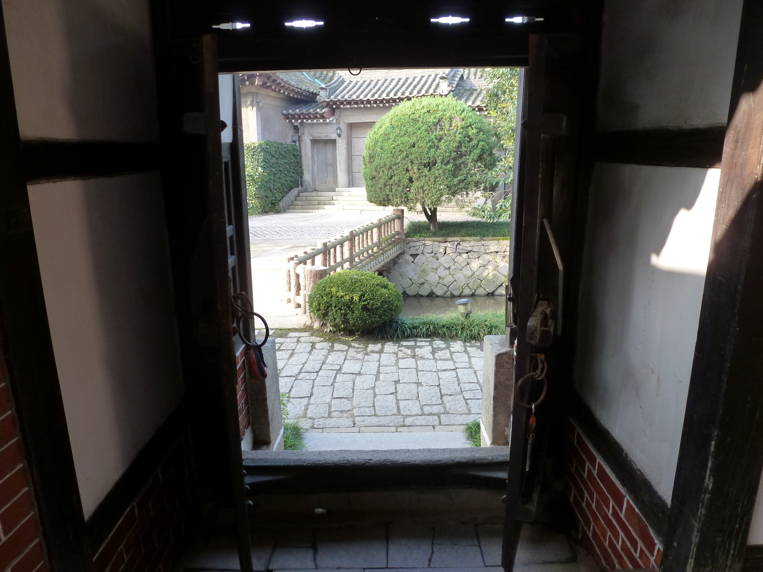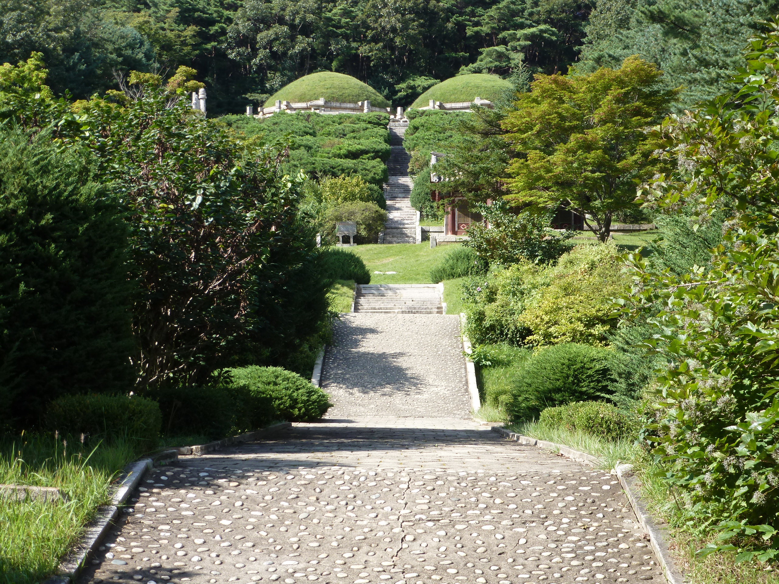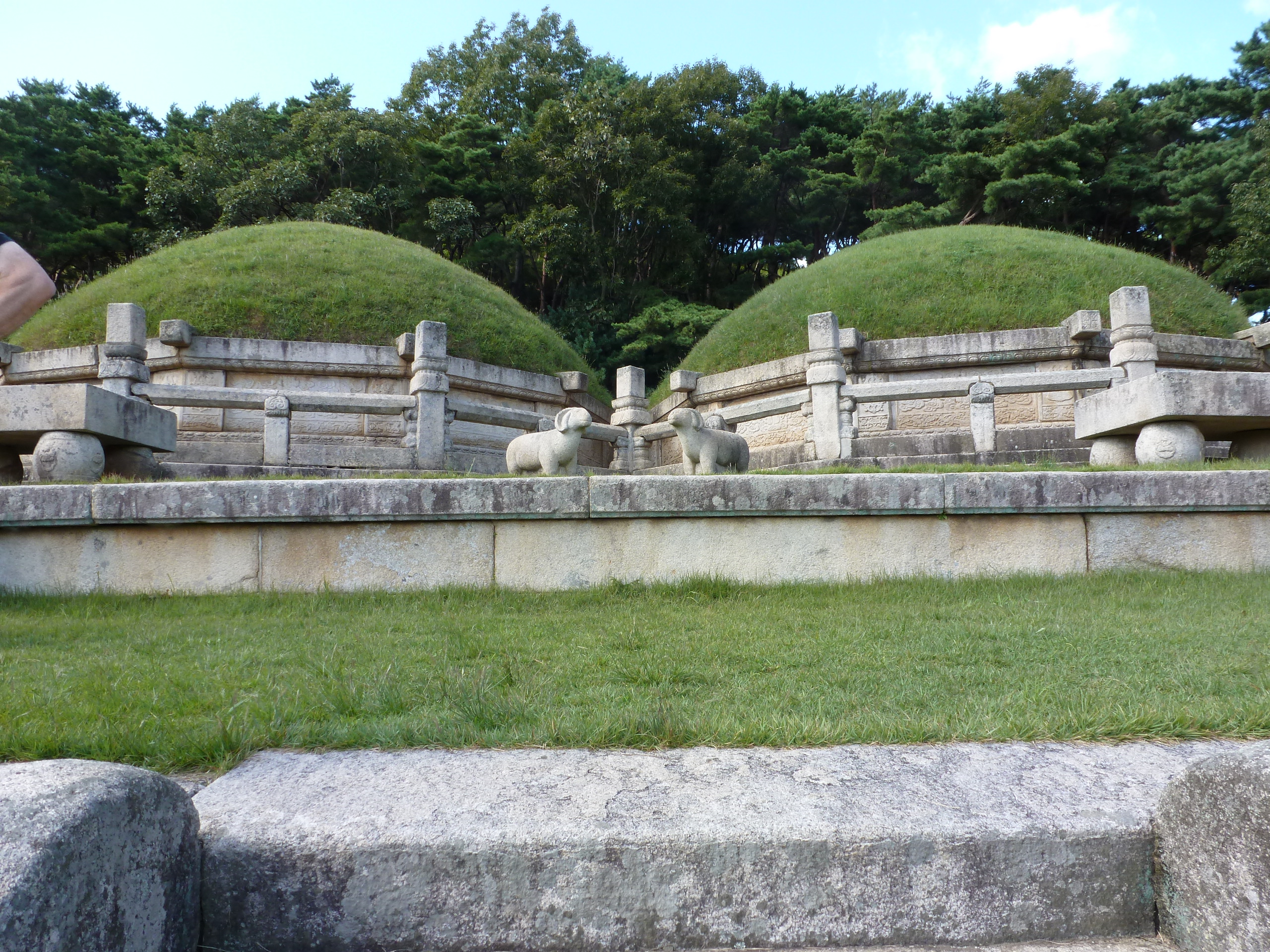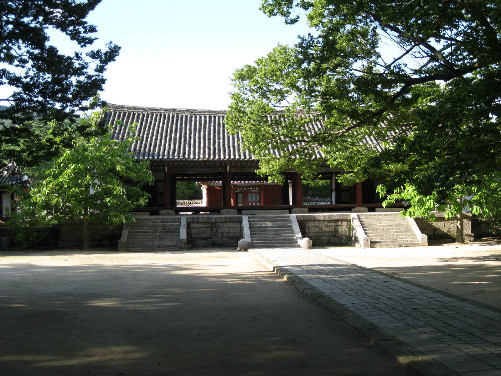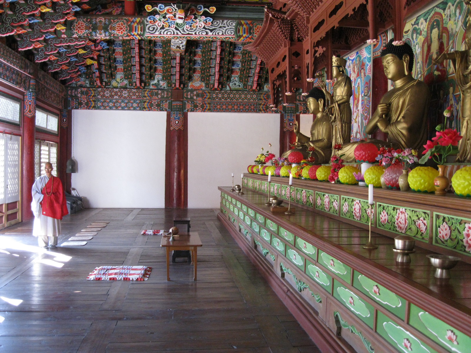 In Peking hebben we enkele uren tijd om ons voor te bereiden op de treinreis richting Noord-Korea. De trein vertrok rond 6u 's avonds. De volgende ochtend komen we aan in Dandong, een Chinese stad die grenst aan Noord-Korea.Het station van PekingDe slaapcabineHet restaurant op de trein. Een deel van het treinpersoneel was er al aan het eten. Ik besloot dan ook maar iets te eten. "Can I have a knife and fork?". "No sowwy". En de chinezen maar lachen.Op dag 3 arriveren we in Dandong, waar we een ontbijt krijgen. De rest van de treinreis wordt verdergezet op een andere trein richting de Noord-Koreaanse hoofdstad Pyongyang.Aankomst in DandongDandongIn de trein over de China-Noord-Korea Vriendschapsbrug. De Yalu rivier die we oversteken maakt een groot deel uit van de grens tussen China en Noord-Korea.Parallel loopt nog een brug, maar deze werd grotendeels vernield tijdens de Koreaanse oorlog.Links: Noord-Korea Rechts: ChinaAl snel verschijnen de portretten van de (overleden) grote leiders Kim Il Sung (links) en Kim Jong Il (rechts). Die zien we overal in Noord-Korea.Langs het platteland zien we vooral rijstvelden.Openbare werkenOnze Nederlandse reisbegeleider Jan is zeer fier op zijn Noord-Koreaanse badge. Deze badges worden door bijna alle Noord-Koreanen gedragen. Als buitenlander kan je deze badge enkel uitgereikt krijgen als je je loyaliteit bewezen hebt.In onze wagon zitten ook enkele Chinese toeristen. De meeste toeristen in Noord-Korea zijn Chinezen.Bij een tussenstop worden we gecontroleerd door Noord-Koreaanse militairen. Alle fototoestellen en telefoons worden geregistreerd, boeken en magazines worden nagekeken. Bagages worden slechts steekproefsgewijs doorgelicht. Onze paspoorten worden ook in beslag genomen. Die krijgen we pas terug op het einde van de reis.De rijstvelden zijn meestal in rechthoekige stukken ingedeeld, met bonenplanten om ze te scheiden.Tegen de avond rijden we Pyongyang binnen. Het volledige treintraject van Peking tot Pyongyang is 1371km lang en deden we ongeveer 24u over.Op dag 4 rijden we met de bus naar de industriestad Hamhung (함흥시). Hier bezoeken we oa. een fabriek van kunstmeststof.Het Yanggakdo International Hotel in Pyongyang waar we deze eerste nacht verbleven. Later keren we hier nog terug.Een tussenstop aan een meer langs het bergachtige landschap.Simon en ikDe bus waar we heel de reis mee rondtrokkenEen fotostop langs het bergachtige landschapDe gidsen vermelden dat zowat driekwart van het land bergen zijn. Omdat de Noord-Koreanen er naar streven om volledig zelfvoorzienend te zijn, wordt bijna alle vlakke grond gebruikt voor landbouw.Aan de linkerkant zie je onze Koreaanse gidsen. Meestal spreken Koreanen elkaar aan met hun volledige naam, maar gemakkelijkheidshalve mochten wij ze aanspreken als miss Kim (links) en miss Ha (rechts).Even dalen we af om een waterval te bezoeken. We picknicken hier in de buurt.De waterval zou in 2001 ontdekt zijn door Kim Jong Il, dankzij zijn fantastisch gehoor.BronwaterDit was een van de weinige maaltijden die ik volledig op kreeg. Op de bus krijgen we dan te horen dat de lunchschotels achtergelaten werden voor kinderen die de overschot zouden eten...De meeste wegen bestaan uit betonplaten.Een propagandabord langs de wegWe komen aan in Hamhung, de tweede grootste stad van Noord-Korea (~ 800.000 inwoners). We rijden hier voorbij een van de talrijke mozaïeken die we te zien zullen krijgen. Links: Kim Il Sung Midden: Kim Jong Il Rechts: Kim Jong Suk (de eerste vrouw van Kim Il Sung)Hamhung is nog maar enkele jaren "open" voor toeristen.Een fabriek van kunstmeststofBij elke bezienswaardigheid krijgen we te horen hoe vaak en wanneer juist de grote leiders die plaats bezocht hebben. Vaak zijn er mozaïeken die hun bezoek afbeelden.Binnen in de fabriekEr zijn maar weinig fabriekswerkers aanwezig, maar ze poseren wel graag voor een foto.'s avonds verblijven we in het Majon Tourist Resort aan de Oost-Koreaanse zee. Hier nemen we een frisse duik in het water.De huisjes waar we verblijven zijn vlak aan het strand.Onze zwembroeken buiten gehangen, maar echt droog werden ze niet door het vochtige klimaat.Het avondmaal. Zoals gewoonlijk werden er nog voortdurend bordjes bij gezet. Als je al vol zit krijg je dan nog een kom rijst en soep.'s middags en 's avonds was er als drank meestal plat water en bier, met de mogelijkheid om "juice" te drinken in plaats van bier. Dat was een soort appel/peren sap (niet op de foto).Onze kamerHier was geen stromend water, en diende het bad als waterreservoir. Wassen moest "op z'n Bangladesh" door een teiltje water over je gieten. In de rode emmer kon water elektrisch verwarmd worden.Op dag 5 bezoeken we nog enkele plaatsen in Hamhung, en vertrekken dan richting Mt. Kumgang. Onderweg bezoeken we oa. nog de kuststad Wonsan.Het huis van de voormalige koning Taejo van Joseon in Hamhung. Hij richtte de Koreaanse Joseondynastie op in 1392, die eindigde in 1897.Een zeer oude boomBuiten het huis stond een groep Koreaanse studenten te wachten.Een aangelegde (niet natuurlijke) heuvel met grote bronzen beelden van de leidersDe lokale gids die ons een woordje uitleg gaf. De plaatselijke gidsen spraken meestal Koreaans, dat dan naar Engels vertaald werd door onze gids miss Kim.Hamhung Grand TheatreWonsanDit verkeersbord leek met de hand geschilderd te zijn.Bezoek aan een de Chonsam coöperatieve boerderijEen persimmon boomOok de grote leiders zijn hier geweest.In het winkeltje van de boerderij kochten we enkele gedroogde persimmons.Naast de boerderij was er een kleuterschool. De kinderen zongen een liedje en wuifden ons dan uit.Iets verderop bezoeken we nog het huis van de boerin die ons begeleidde.Dit huis heeft een soort vloerverwarming die hier vaak toegepast zou worden. Op internet vond ik dit systeem terug als "Ondol".Wat voor een decoder is dat onder de TV? Telenet of Belgacom?Ten slotte bezochten we nog een boeddhistische tempel...Maar bij de tempel zelf mochten we niet komen, omdat er constructi