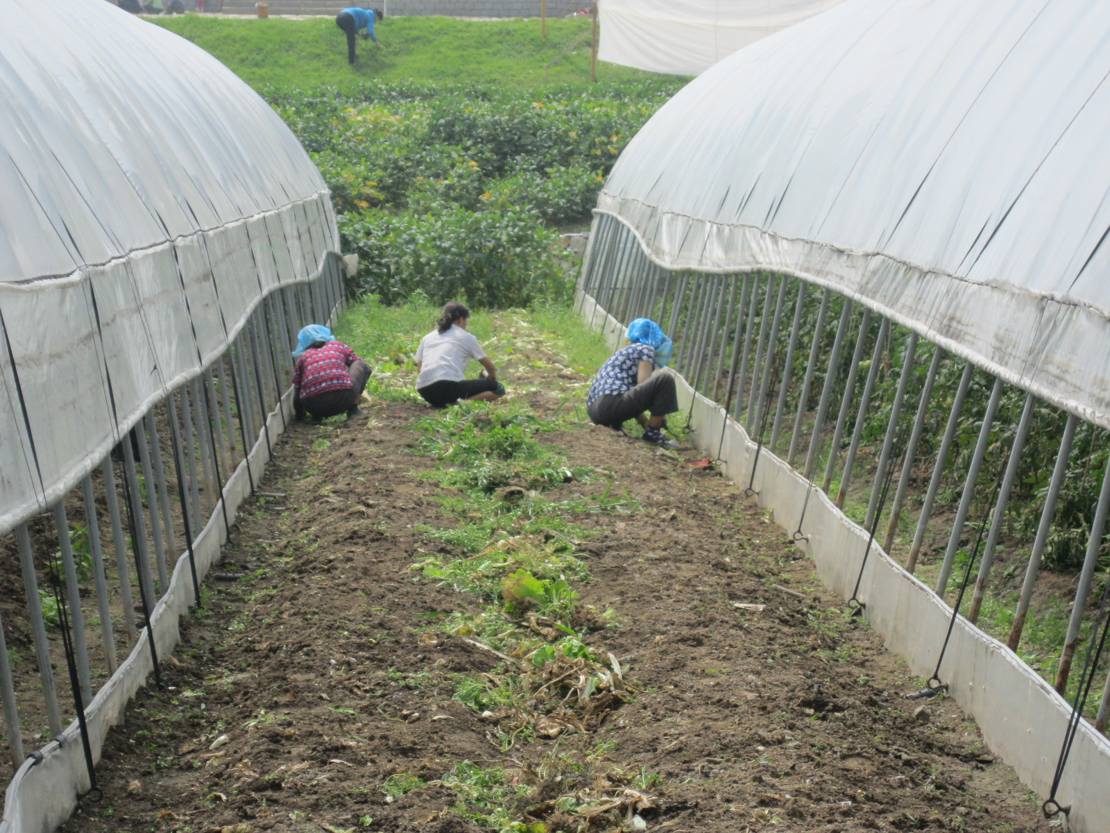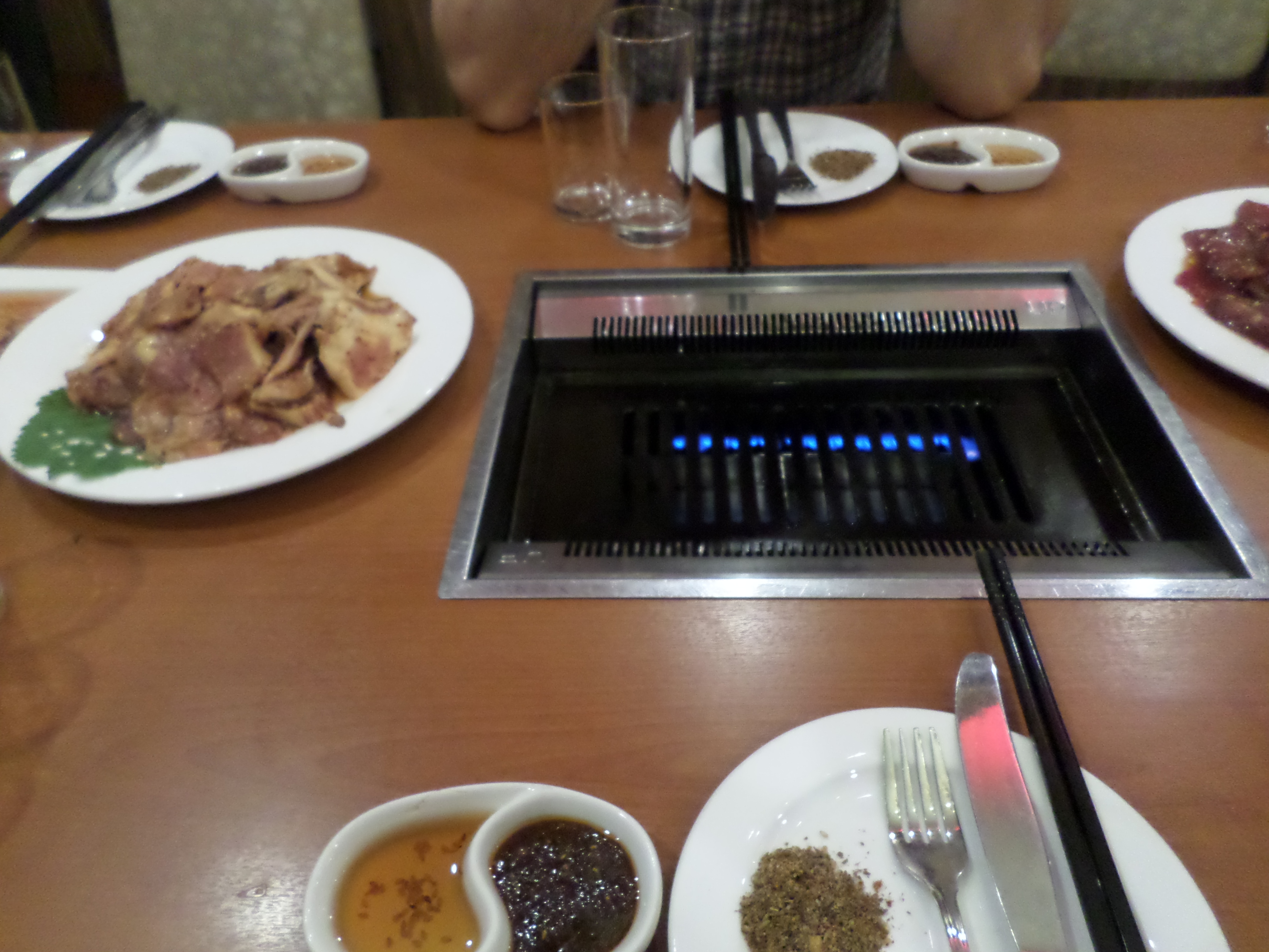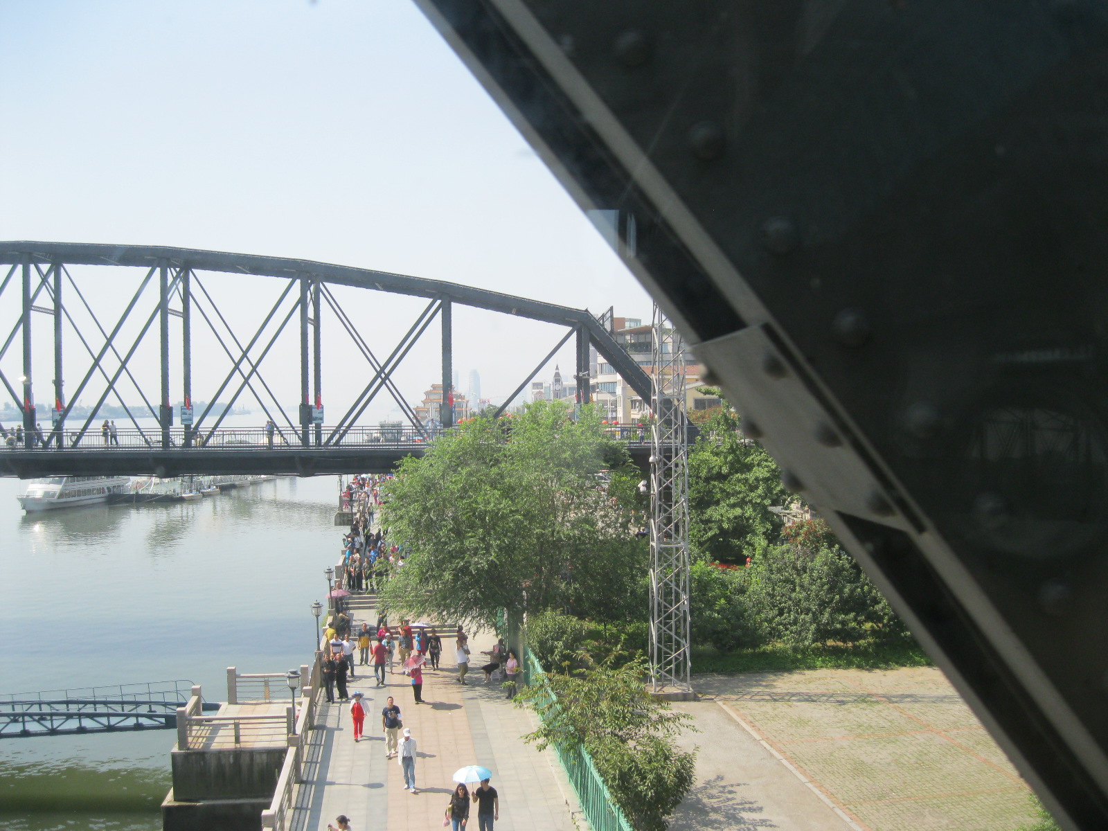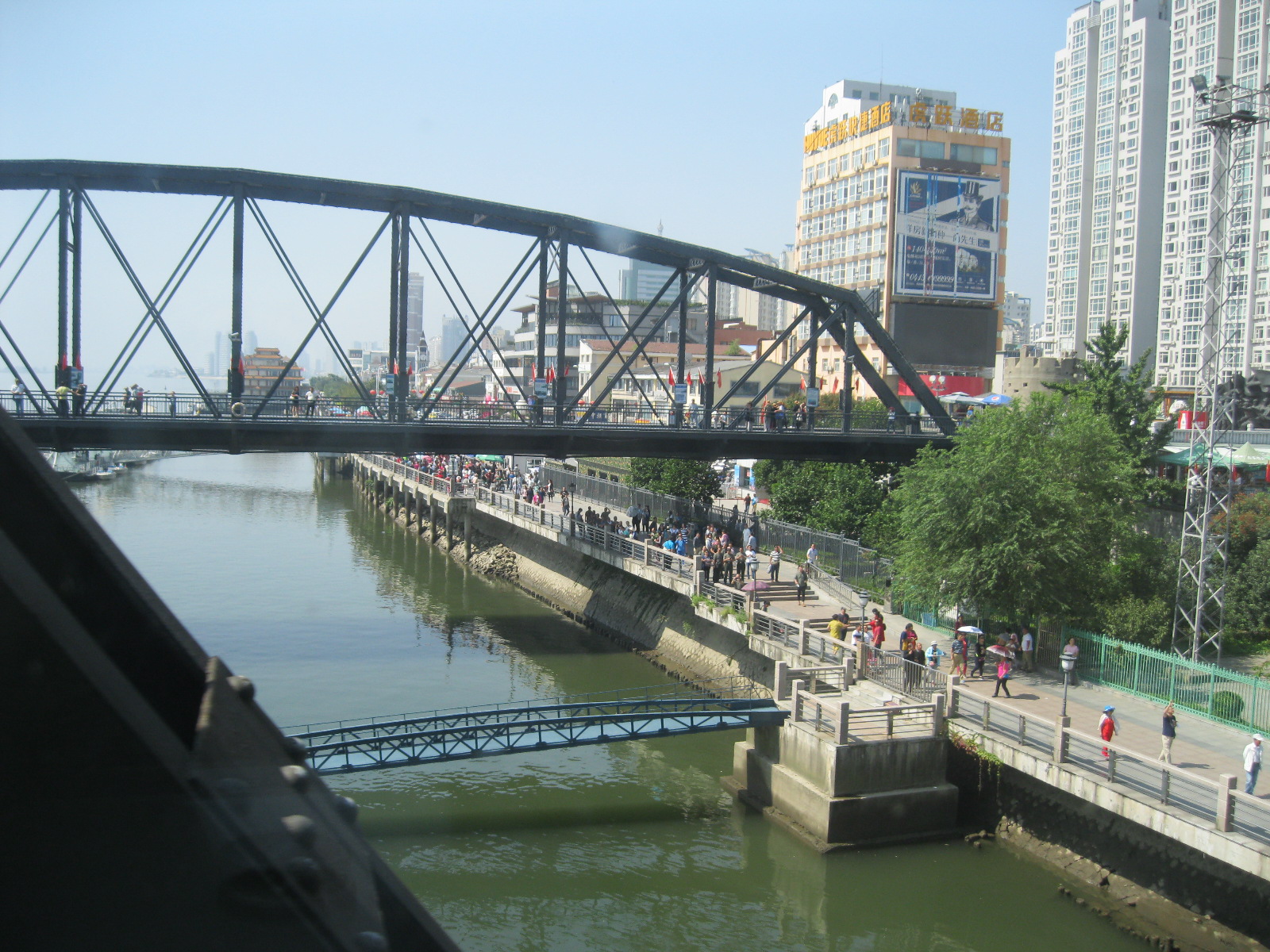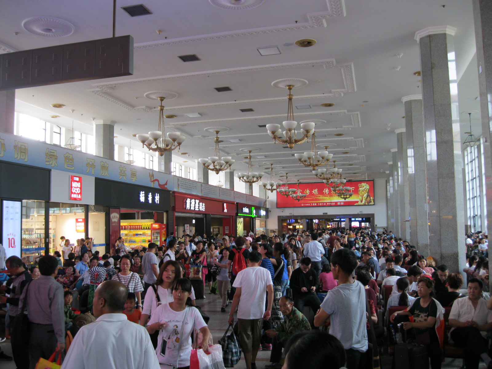 In Peking hebben we enkele uren tijd om ons voor te bereiden op de treinreis richting Noord-Korea. De trein vertrok rond 6u 's avonds. De volgende ochtend komen we aan in Dandong, een Chinese stad die grenst aan Noord-Korea.Het station van PekingDe slaapcabineHet restaurant op de trein. Een deel van het treinpersoneel was er al aan het eten. Ik besloot dan ook maar iets te eten. "Can I have a knife and fork?". "No sowwy". En de chinezen maar lachen.Op dag 3 arriveren we in Dandong, waar we een ontbijt krijgen. De rest van de treinreis wordt verdergezet op een andere trein richting de Noord-Koreaanse hoofdstad Pyongyang.Aankomst in DandongDandongIn de trein over de China-Noord-Korea Vriendschapsbrug. De Yalu rivier die we oversteken maakt een groot deel uit van de grens tussen China en Noord-Korea.Parallel loopt nog een brug, maar deze werd grotendeels vernield tijdens de Koreaanse oorlog.Links: Noord-Korea Rechts: ChinaAl snel verschijnen de portretten van de (overleden) grote leiders Kim Il Sung (links) en Kim Jong Il (rechts). Die zien we overal in Noord-Korea.Langs het platteland zien we vooral rijstvelden.Openbare werkenOnze Nederlandse reisbegeleider Jan is zeer fier op zijn Noord-Koreaanse badge. Deze badges worden door bijna alle Noord-Koreanen gedragen. Als buitenlander kan je deze badge enkel uitgereikt krijgen als je je loyaliteit bewezen hebt.In onze wagon zitten ook enkele Chinese toeristen. De meeste toeristen in Noord-Korea zijn Chinezen.Bij een tussenstop worden we gecontroleerd door Noord-Koreaanse militairen. Alle fototoestellen en telefoons worden geregistreerd, boeken en magazines worden nagekeken. Bagages worden slechts steekproefsgewijs doorgelicht. Onze paspoorten worden ook in beslag genomen. Die krijgen we pas terug op het einde van de reis.De rijstvelden zijn meestal in rechthoekige stukken ingedeeld, met bonenplanten om ze te scheiden.Tegen de avond rijden we Pyongyang binnen. Het volledige treintraject van Peking tot Pyongyang is 1371km lang en deden we ongeveer 24u over.Op dag 4 rijden we met de bus naar de industriestad Hamhung (함흥시). Hier bezoeken we oa. een fabriek van kunstmeststof.Het Yanggakdo International Hotel in Pyongyang waar we deze eerste nacht verbleven. Later keren we hier nog terug.Een tussenstop aan een meer langs het bergachtige landschap.Simon en ikDe bus waar we heel de reis mee rondtrokkenEen fotostop langs het bergachtige landschapDe gidsen vermelden dat zowat driekwart van het land bergen zijn. Omdat de Noord-Koreanen er naar streven om volledig zelfvoorzienend te zijn, wordt bijna alle vlakke grond gebruikt voor landbouw.Aan de linkerkant zie je onze Koreaanse gidsen. Meestal spreken Koreanen elkaar aan met hun volledige naam, maar gemakkelijkheidshalve mochten wij ze aanspreken als miss Kim (links) en miss Ha (rechts).Even dalen we af om een waterval te bezoeken. We picknicken hier in de buurt.De waterval zou in 2001 ontdekt zijn door Kim Jong Il, dankzij zijn fantastisch gehoor.BronwaterDit was een van de weinige maaltijden die ik volledig op kreeg. Op de bus krijgen we dan te horen dat de lunchschotels achtergelaten werden voor kinderen die de overschot zouden eten...De meeste wegen bestaan uit betonplaten.Een propagandabord langs de wegWe komen aan in Hamhung, de tweede grootste stad van Noord-Korea (~ 800.000 inwoners). We rijden hier voorbij een van de talrijke mozaïeken die we te zien zullen krijgen. Links: Kim Il Sung Midden: Kim Jong Il Rechts: Kim Jong Suk (de eerste vrouw van Kim Il Sung)Hamhung is nog maar enkele jaren "open" voor toeristen.Een fabriek van kunstmeststofBij elke bezienswaardigheid krijgen we te horen hoe vaak en wanneer juist de grote leiders die plaats bezocht hebben. Vaak zijn er mozaïeken die hun bezoek afbeelden.Binnen in de fabriekEr zijn maar weinig fabriekswerkers aanwezig, maar ze poseren wel graag voor een foto.'s avonds verblijven we in het Majon Tourist Resort aan de Oost-Koreaanse zee. Hier nemen we een frisse duik in het water.De huisjes waar we verblijven zijn vlak aan het strand.Onze zwembroeken buiten gehangen, maar echt droog werden ze niet door het vochtige klimaat.Het avondmaal. Zoals gewoonlijk werden er nog voortdurend bordjes bij gezet. Als je al vol zit krijg je dan nog een kom rijst en soep.'s middags en 's avonds was er als drank meestal plat water en bier, met de mogelijkheid om "juice" te drinken in plaats van bier. Dat was een soort appel/peren sap (niet op de foto).Onze kamerHier was geen stromend water, en diende het bad als waterreservoir. Wassen moest "op z'n Bangladesh" door een teiltje water over je gieten. In de rode emmer kon water elektrisch verwarmd worden.Op dag 5 bezoeken we nog enkele plaatsen in Hamhung, en vertrekken dan richting Mt. Kumgang. Onderweg bezoeken we oa. nog de kuststad Wonsan.Het huis van de voormalige koning Taejo van Joseon in Hamhung. Hij richtte de Koreaanse Joseondynastie op in 1392, die eindigde in 1897.Een zeer oude boomBuiten het huis stond een groep Koreaanse studenten te wachten.Een aangelegde (niet natuurlijke) heuvel met grote bronzen beelden van de leidersDe lokale gids die ons een woordje uitleg gaf. De plaatselijke gidsen spraken meestal Koreaans, dat dan naar Engels vertaald werd door onze gids miss Kim.Hamhung Grand TheatreWonsanDit verkeersbord leek met de hand geschilderd te zijn.Bezoek aan een de Chonsam coöperatieve boerderijEen persimmon boomOok de grote leiders zijn hier geweest.In het winkeltje van de boerderij kochten we enkele gedroogde persimmons.Naast de boerderij was er een kleuterschool. De kinderen zongen een liedje en wuifden ons dan uit.Iets verderop bezoeken we nog het huis van de boerin die ons begeleidde.Dit huis heeft een soort vloerverwarming die hier vaak toegepast zou worden. Op internet vond ik dit systeem terug als "Ondol".Wat voor een decoder is dat onder de TV? Telenet of Belgacom?Ten slotte bezochten we nog een boeddhistische tempel...Maar bij de tempel zelf mochten we niet komen, omdat er constructi